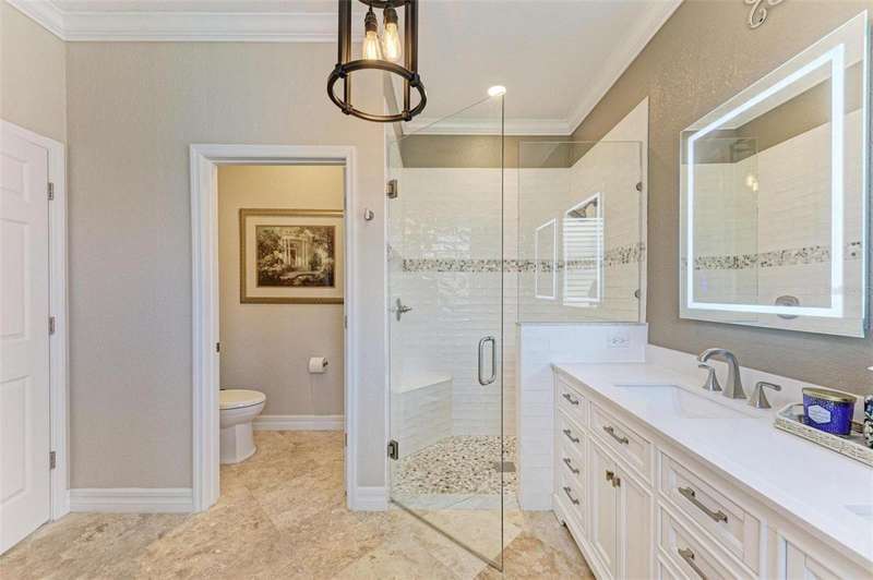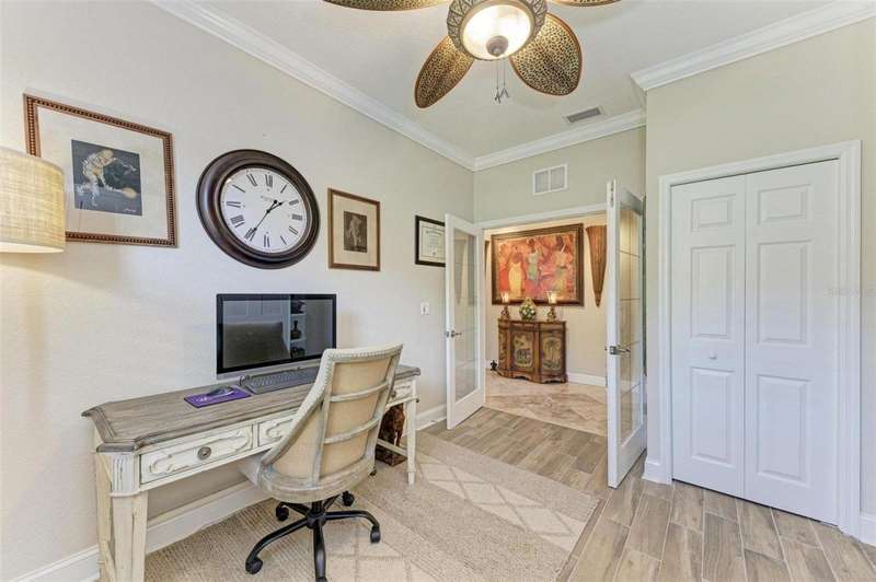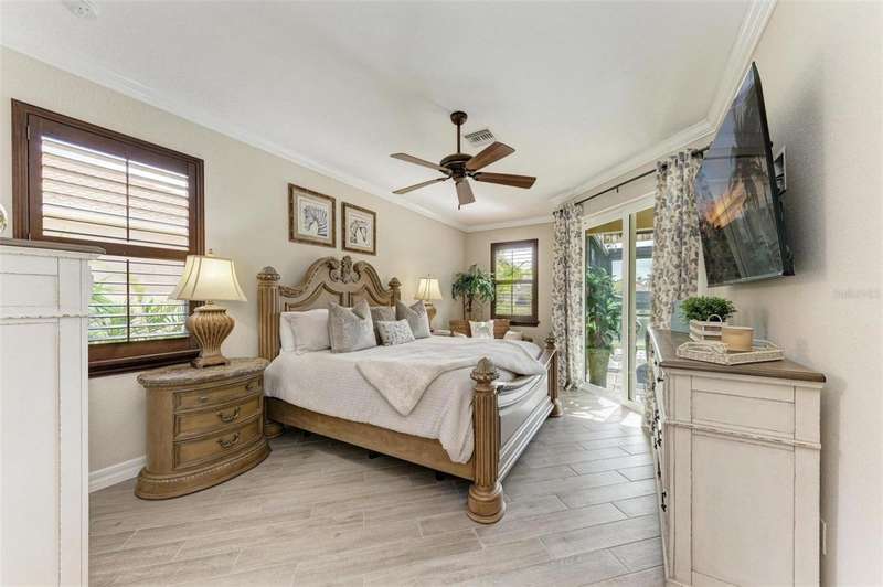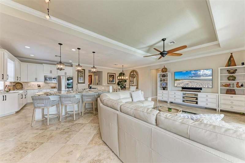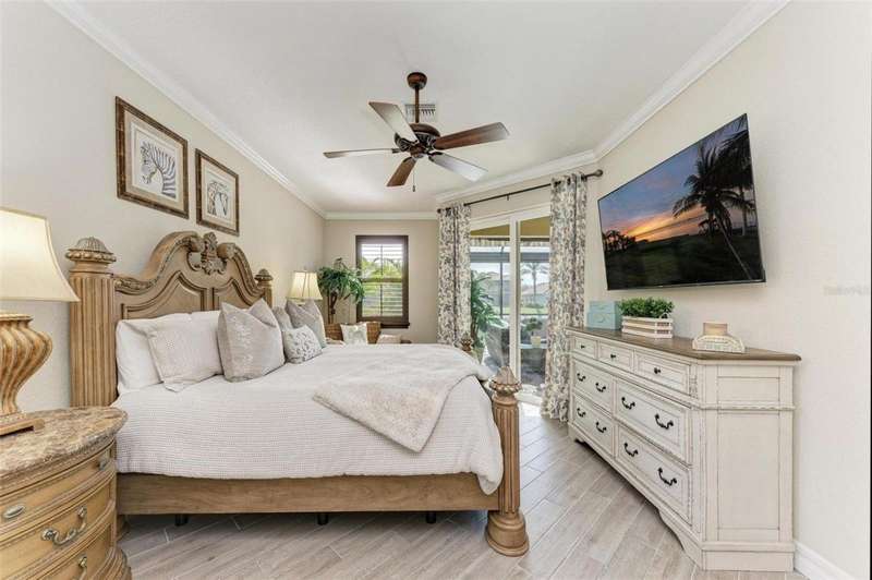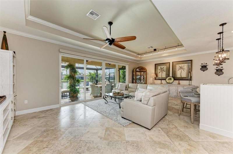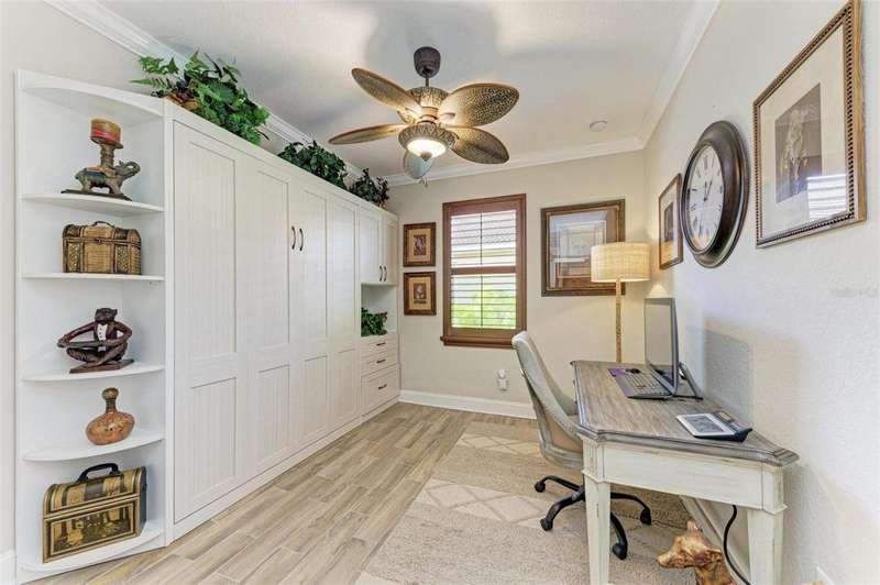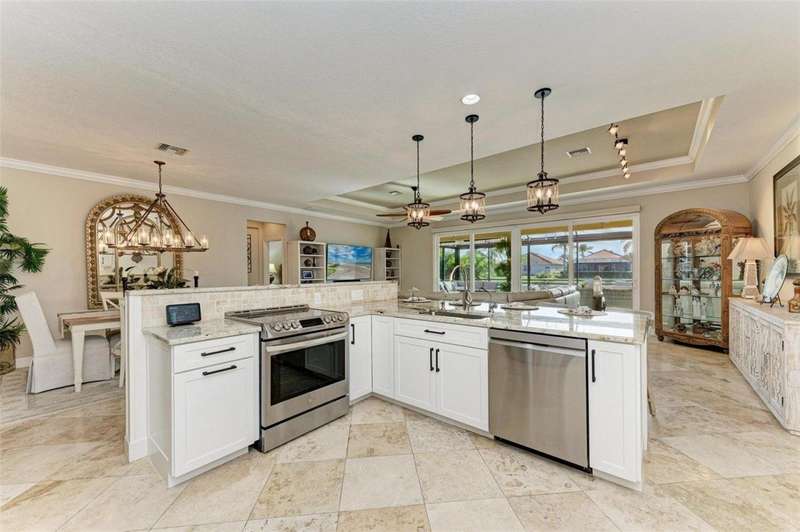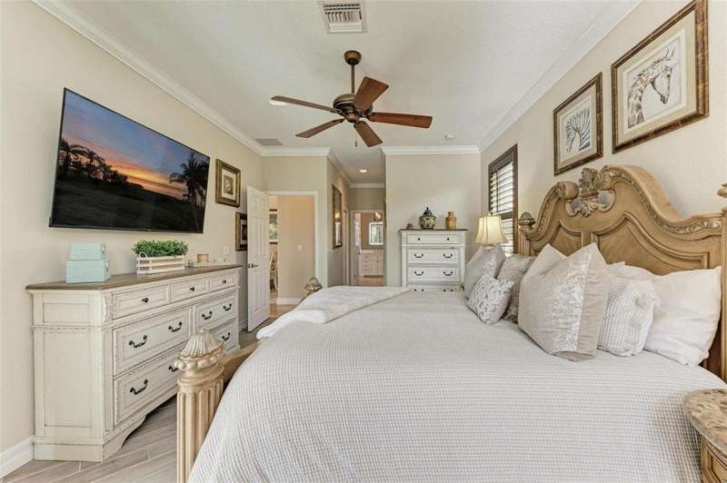 Under contract-accepting backup offers. THIS LUXURY HOME IS WAITING FOR YOU... $180K IN UPDATES...BRING AN OFFER!!! MUST SEE !! This exquisite residence within River Strand Golf and Country Club seamlessly blends luxury, comfort, and sophisticated design. Boasting a deeded golf membership, this meticulously updated home features an open floor plan with captivating water views and over $180,000 in enhancements. The fully remodeled kitchen showcases custom granite countertops, cabinetry, and top-of-the-line appliances, opening onto a spacious lanai with tailored lighting and privacy shades-an ideal space for both relaxation and entertaining. Additional highlights include a versatile bedroom with a Murphy bed, elegantly redesigned bathrooms offering a spa-like ambiance, and premium finishes such as travertine flooring, plantation shutters, and upgraded HVAC systems.The garage is a remarkable extension of the home, offering custom rubber flooring, an insulated door, and an air-conditioned space-perfect for use as a home gym or a pristine area to house your vehicles. The exterior of the property is equally impressive, featuring custom landscaping and nightscaping that accentuate the home's beauty and the surrounding environment.Beyond the home's refined interior, River Strand Golf and Country Club offers an unparalleled lifestyle. Residents enjoy access to a newly redesigned Andrew Green 27-hole championship golf course, Har-Tru tennis courts, pickleball facilities, resort-style swimming pools, fitness centers, and a vibrant clubhouse and restaurant/ tiki bar. Ideally located with easy access to I-75, University Town Center, and the area's pristine beaches, this residence represents the pinnacle of luxury living, offering an extraordinary blend of convenience, elegance, and leisure.