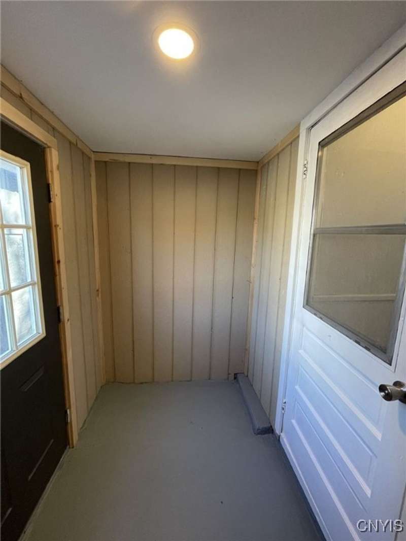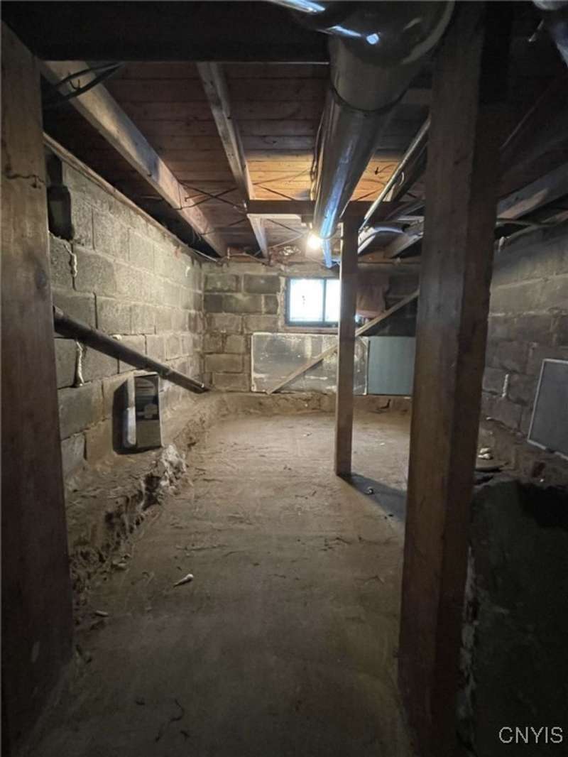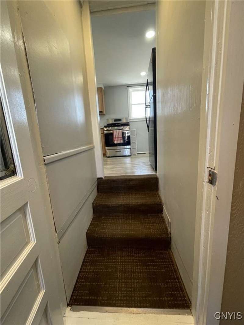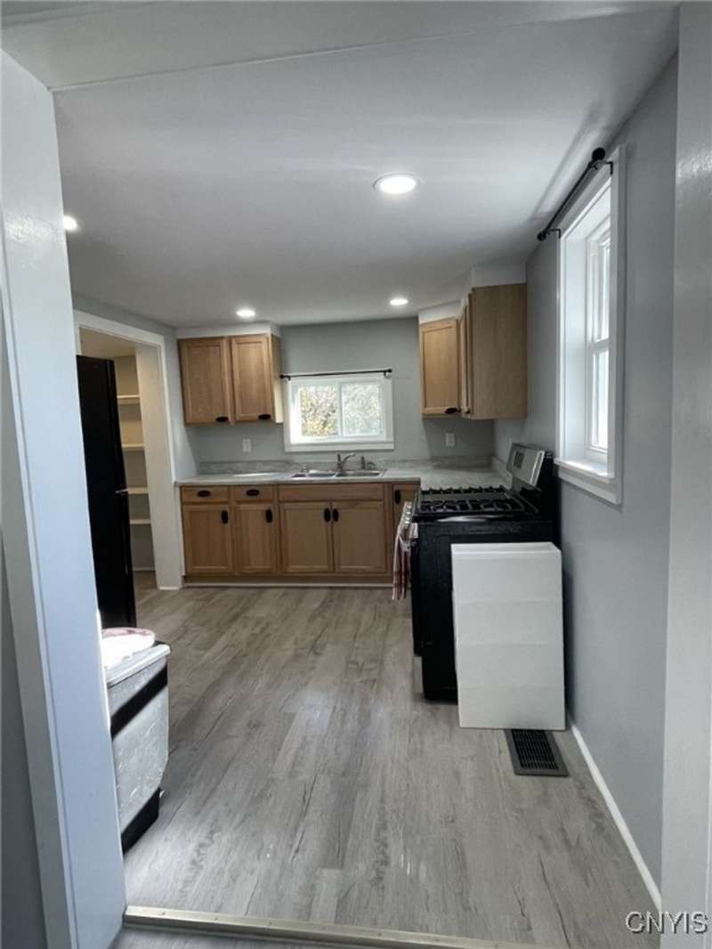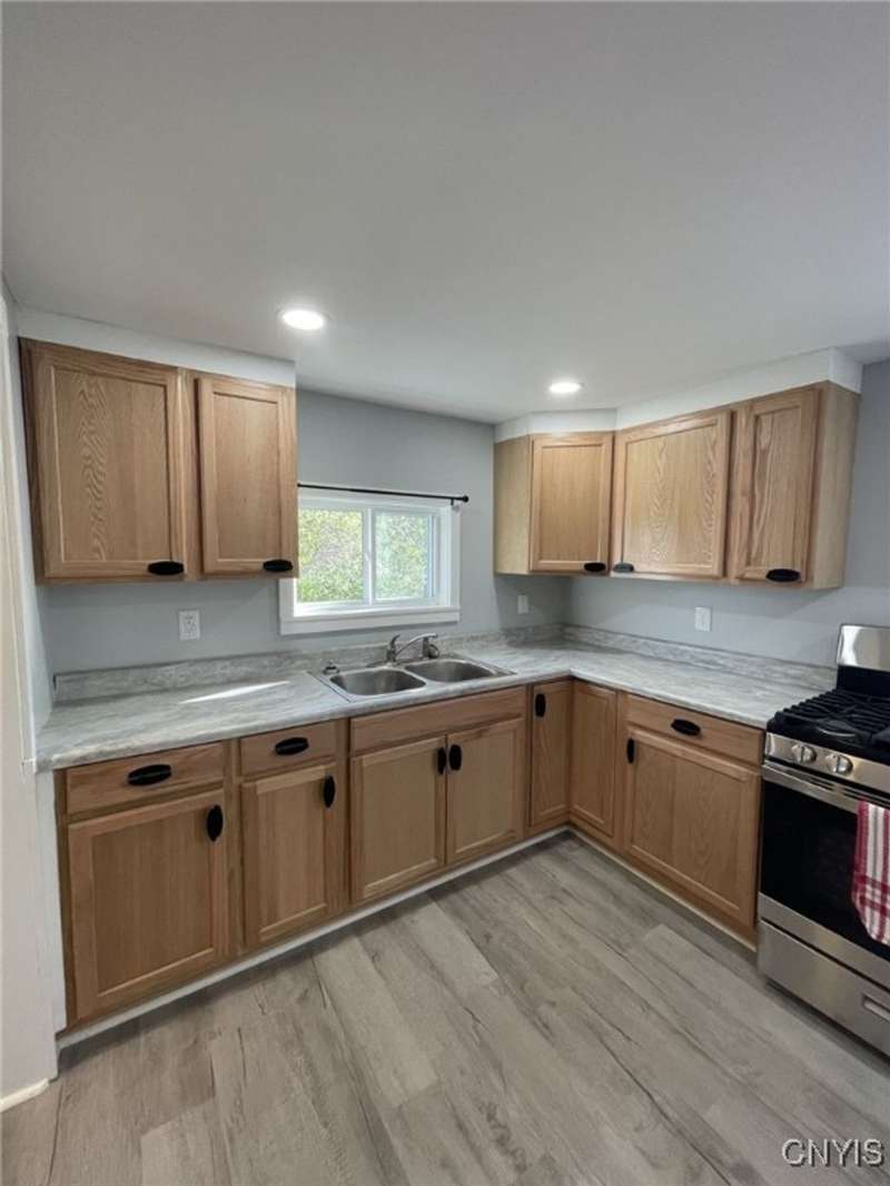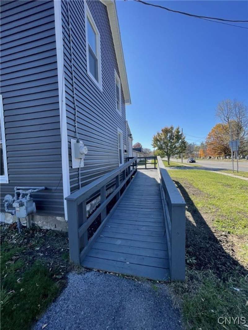 The owners have redone almost the entire inside of the dwelling; along with new siding, windows, and metal roof. The home features a new kitchen & bathroom, new gas furnace, new flooring, fresh paint etc. It is a 1 minute drive to Rt 81When you arrive at the residence, you will find an oversized (8 space) parking area & double access to the street. There are two modern entry doors to the home, both accessing entryway rooms to store things & to keep the weather out. The front access door has a gradual ramp for easy access for those who may have issues with stairs. The front entryway's second door opens to the living room with the dining room close by, along with the central stairway. The living room has ample space for your furnishings, a big tv and ??. The first floor has new LVP throughout; providing a clean, updated look & feel. The good sized dining room has nice natural lighting with ceiling fan & easy access to both the living room & kitchen areas. The kitchen & bathroom/laundry area are brand new & waiting to be used! The bathroom has a new vanity, tub, shower, and toilet. The bath laundry area with a storage closet has been thoughtfully designed with ample room for your washer & dryer. The kitchen is equipped with a new gas range, cabinets and countertop which provide an efficient food prep space. There is a nice feature of a window behind the sink that looks out on the private backyard. The side entryway to the home is adjacent to the garage and provides easy access to the kitchen. There is also a storage/ mud room just inside the entryway door. Up the central stairway you find the hall with built-in storage shelving & easy access to the two bedrooms, freshly carpeted, both with closets. The spacious primary bedroom has two windows & can easily fit a king-size bed. The lot is oversized (over 1/2 acre) with plenty of room to work or play. There is a private space with potential for a patio or?. The garage with a new garage door & lights has a storage room attached on the back of the garage. New Vinyl siding gives the home a clean, updated look. A big backyard offers lots of potential play or workspace.