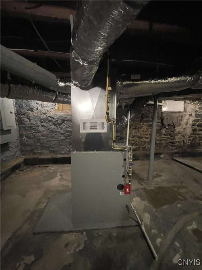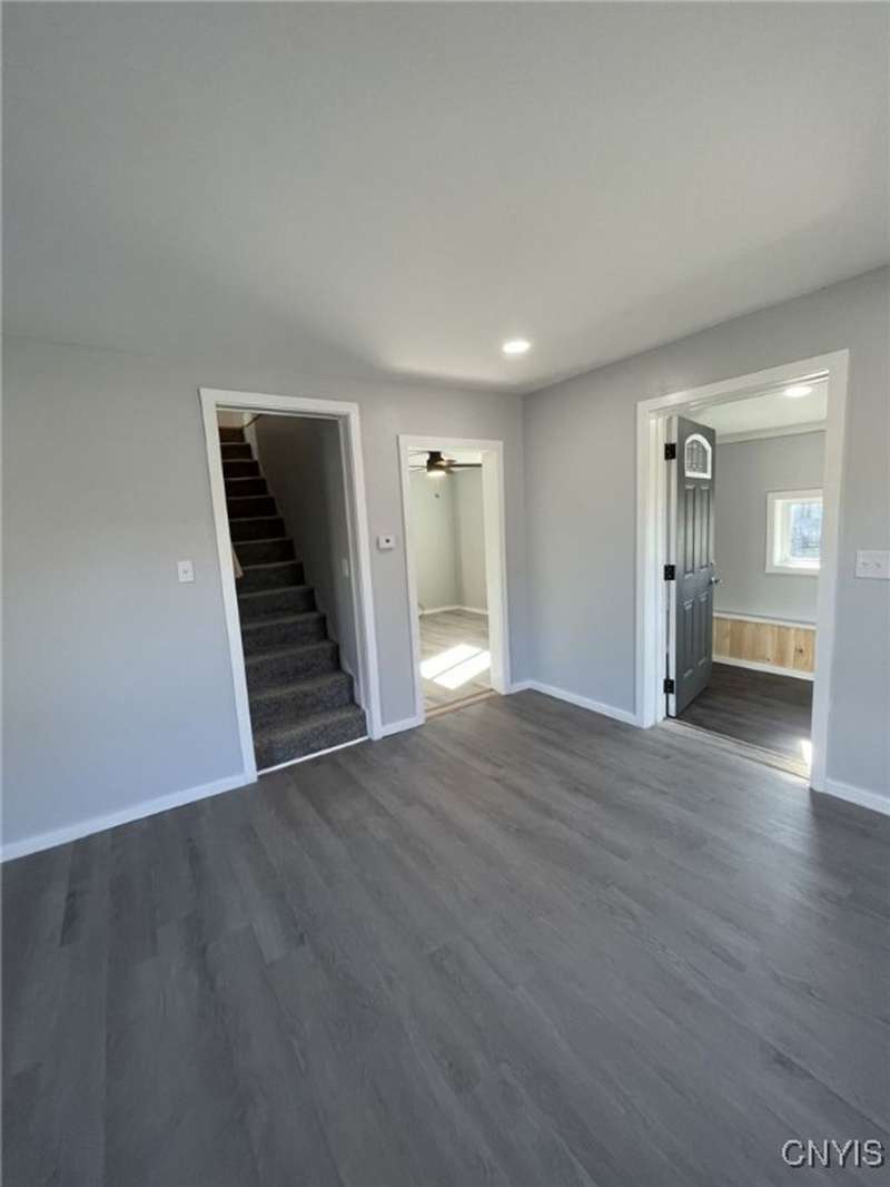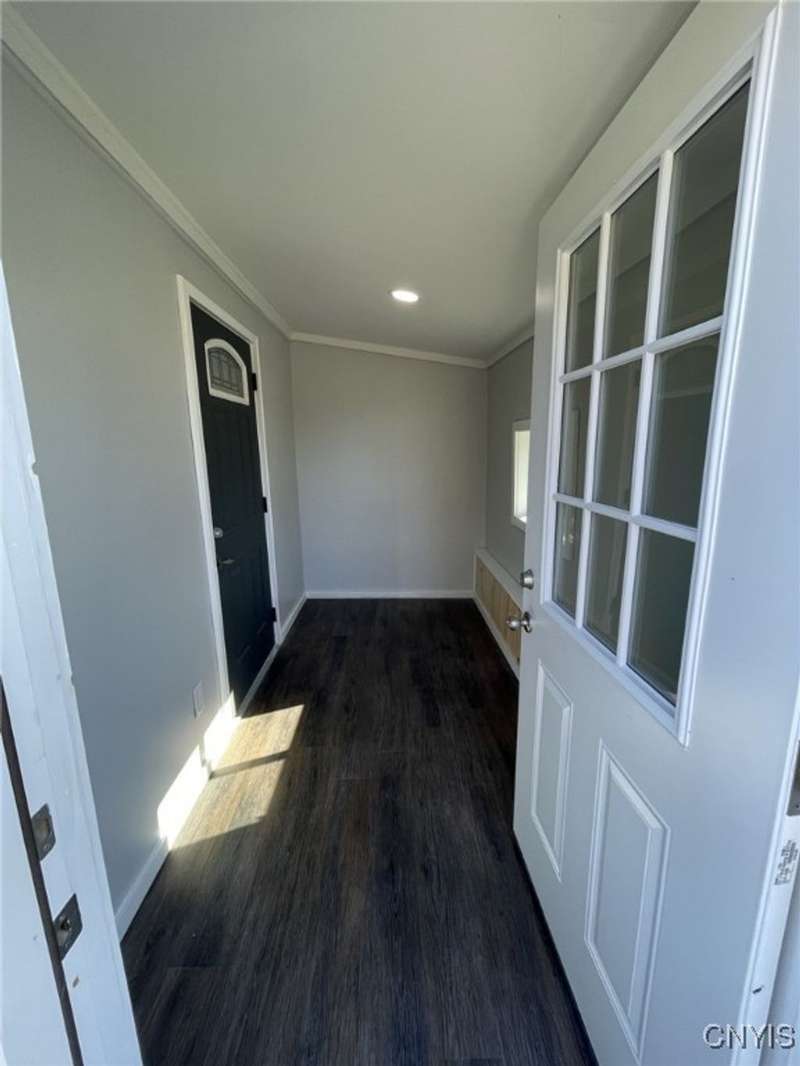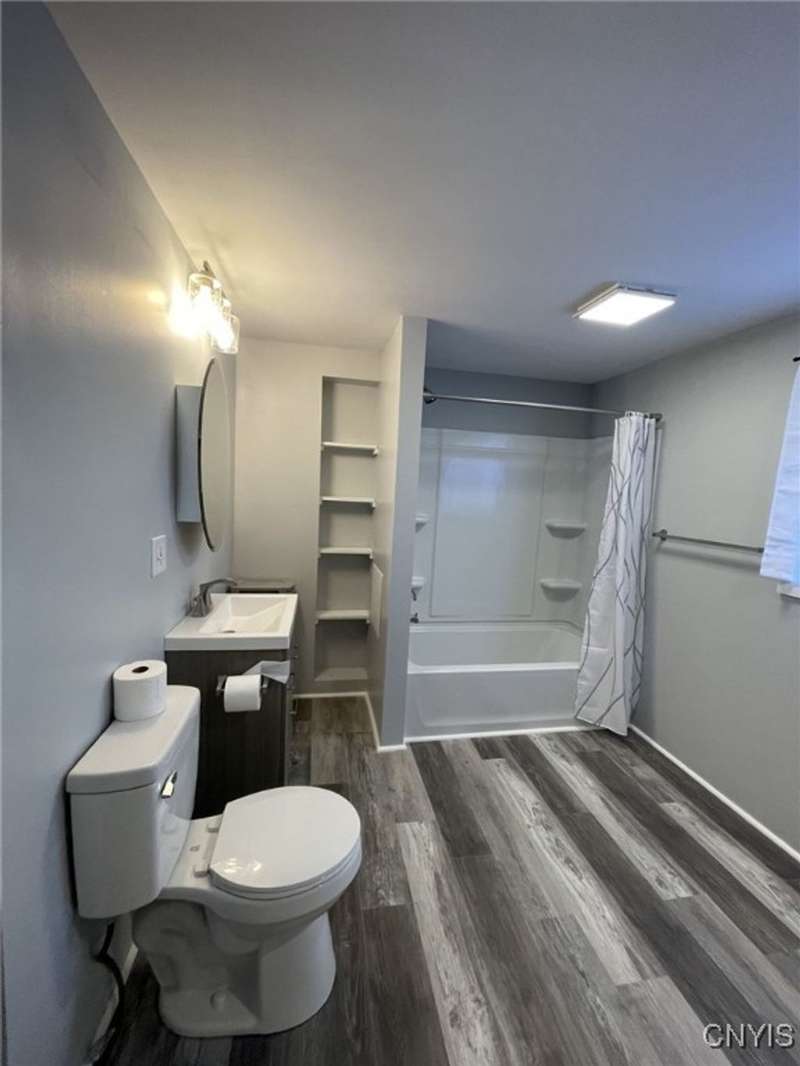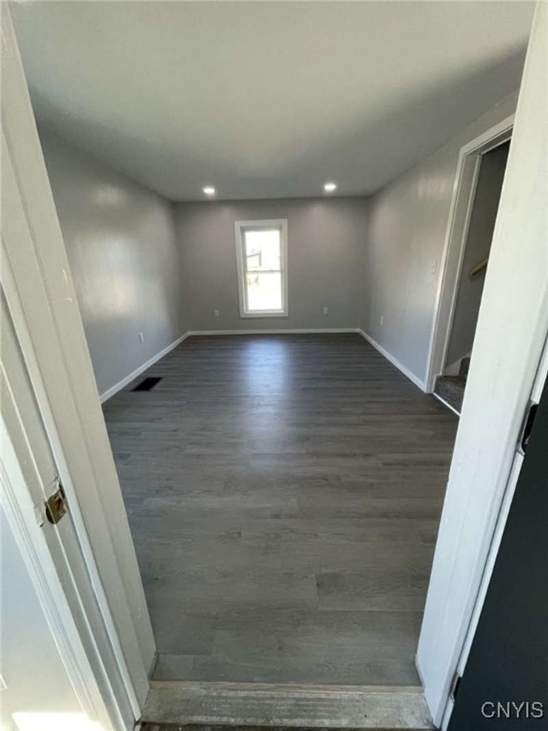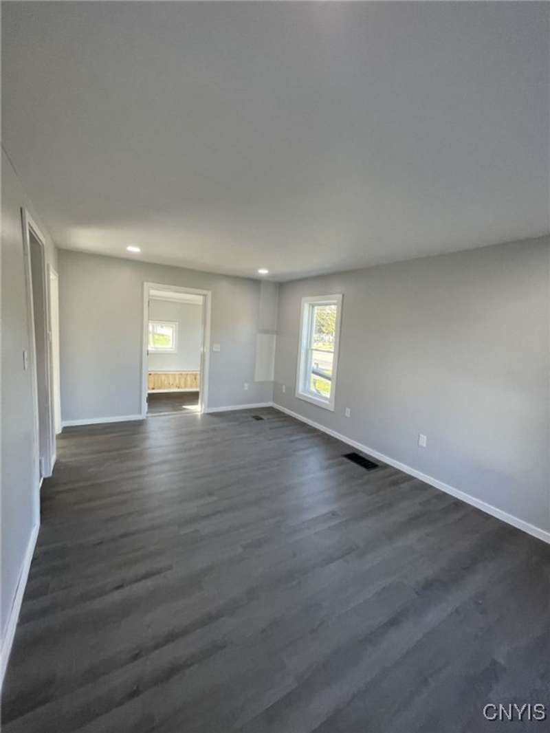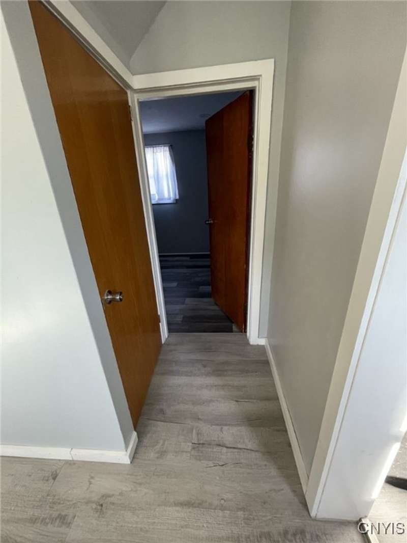 The owners have redone almost the entire inside of the dwelling; along with new siding, windows, and metal roof. The home features a new kitchen & bathroom, new gas furnace, new flooring, fresh paint etc. It is a 1 minute drive to Rt 81When you arrive at the residence, you will find an oversized (8 space) parking area & double access to the street. There are two modern entry doors to the home, both accessing entryway rooms to store things & to keep the weather out. The front access door has a gradual ramp for easy access for those who may have issues with stairs. The front entryway's second door opens to the living room with the dining room close by, along with the central stairway. The living room has ample space for your furnishings, a big tv and ??. The first floor has new LVP throughout; providing a clean, updated look & feel. The good sized dining room has nice natural lighting with ceiling fan & easy access to both the living room & kitchen areas. The kitchen & bathroom/laundry area are brand new & waiting to be used! The bathroom has a new vanity, tub, shower, and toilet. The bath laundry area with a storage closet has been thoughtfully designed with ample room for your washer & dryer. The kitchen is equipped with a new gas range, cabinets and countertop which provide an efficient food prep space. There is a nice feature of a window behind the sink that looks out on the private backyard. The side entryway to the home is adjacent to the garage and provides easy access to the kitchen. There is also a storage/ mud room just inside the entryway door. Up the central stairway you find the hall with built-in storage shelving & easy access to the two bedrooms, freshly carpeted, both with closets. The spacious primary bedroom has two windows & can easily fit a king-size bed. The lot is oversized (over 1/2 acre) with plenty of room to work or play. There is a private space with potential for a patio or?. The garage with a new garage door & lights has a storage room attached on the back of the garage. New Vinyl siding gives the home a clean, updated look. A big backyard offers lots of potential play or workspace.