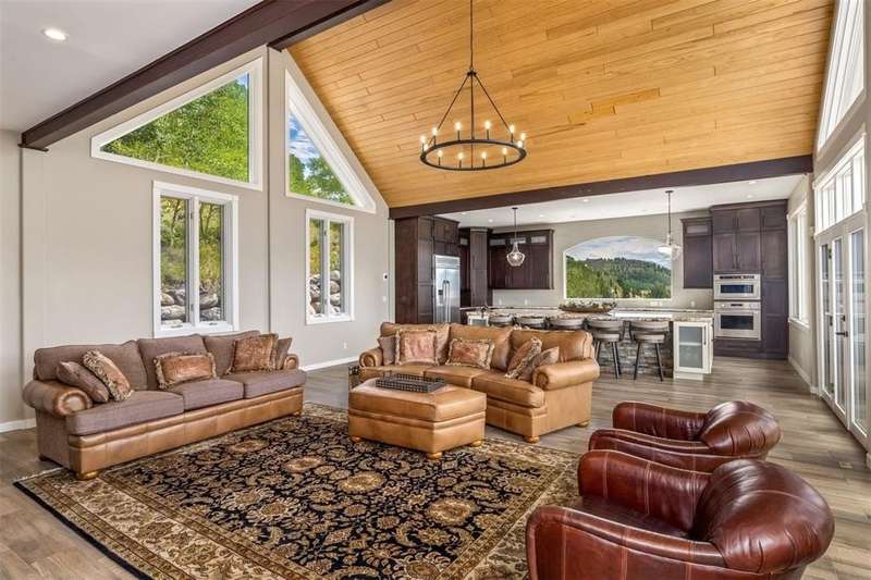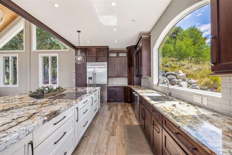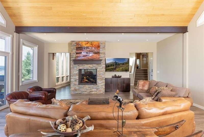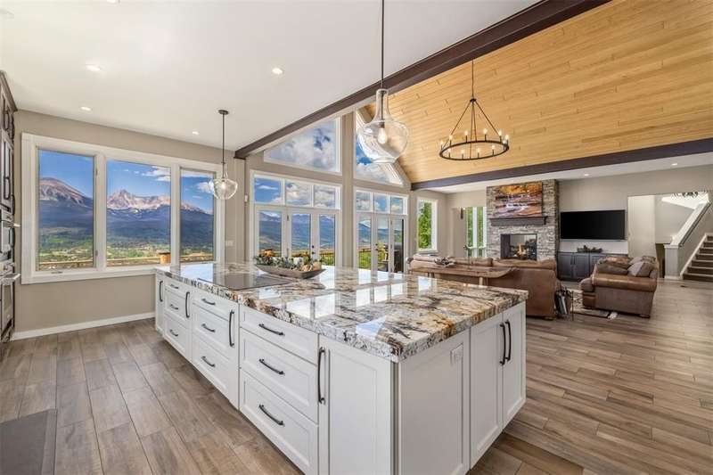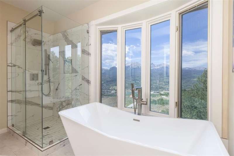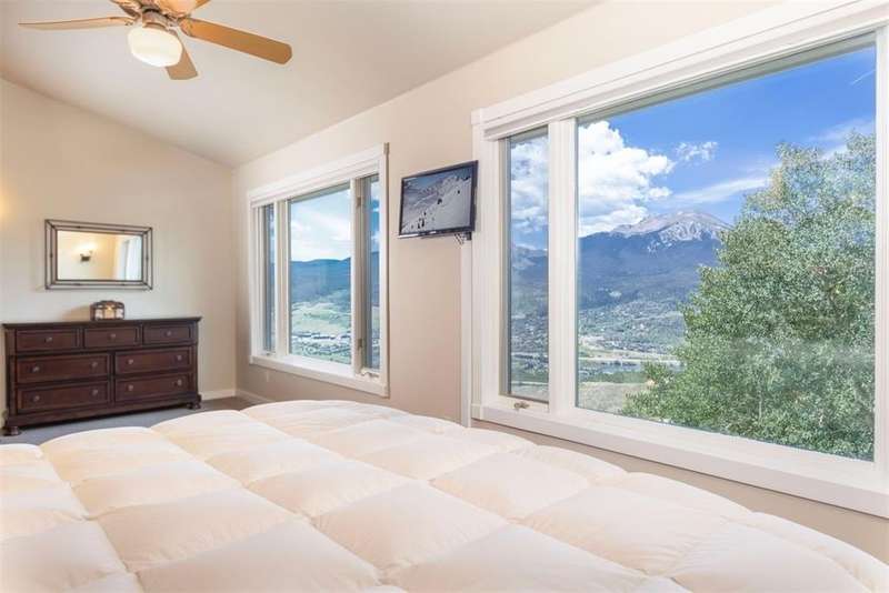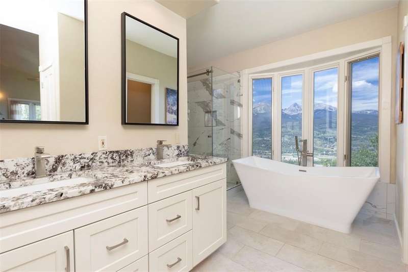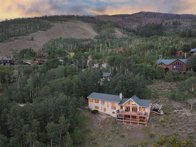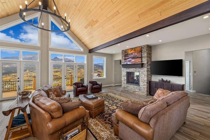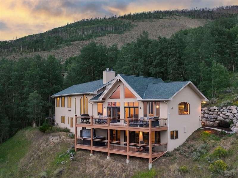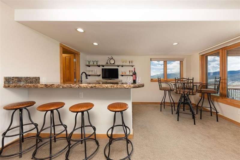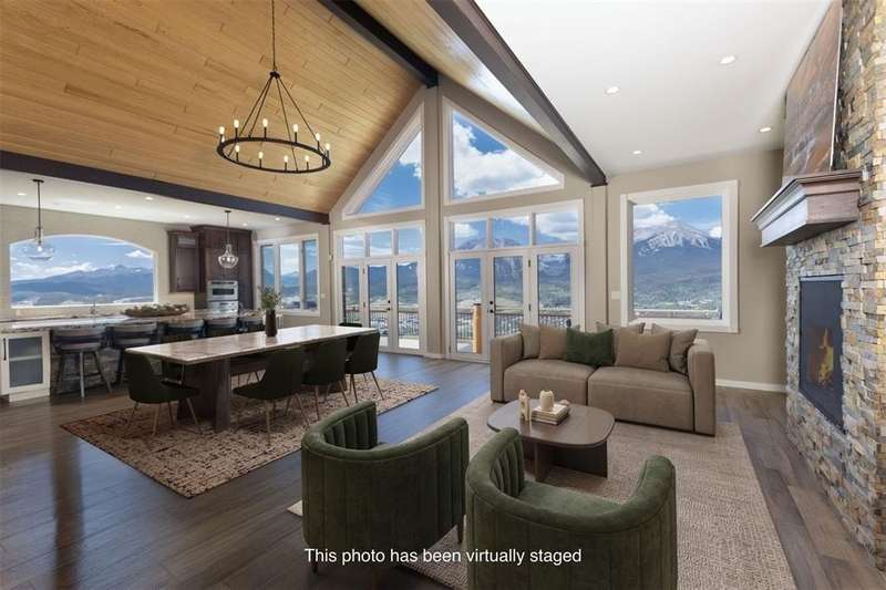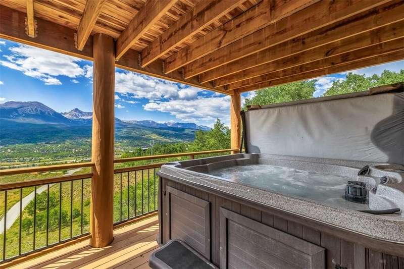 Breathtaking, awe inspiring, stunning…. you have your choice of adjectives. You need to experience these views for yourself. The Osprey fly from their nest up to be at eyelevel with you as you relax on the newly reconstructed upper deck. Close proximity to hiking, biking, fly fishing, boating, and all of Summit, Routt and Eagle county world class ski resorts, for the outdoor enthusiast. And let’s not overlook the entertainment opportunities. The totally reimagined kitchen completed in 2019 including an upgrade to a high end induction cook top. It can sit a small army, while there is plenty of room with two-sided fireplace in the great room to host all your friends and families. Spread your bounty out on the kitchen island and you can feed them all for hours. If sports are your thing, head to the lower level where you will find a professional grade shuffleboard table, a nearly Imax size tv and a gathering area to watch your favorite teams. The lower level boasts a covered deck and hot tub that provides some of the most impactful views available in the County. The rest of the home provides separation from the main events and is a separate wing. There are 4 bedrooms (one non-conforming) and 5 bathrooms. This home has been incredibly well maintained with a new roof, boiler, exterior stucco upgrade, new carpeting, new landscaping at the entryway, new ski cable handrails and a rebuilt main level deck.
