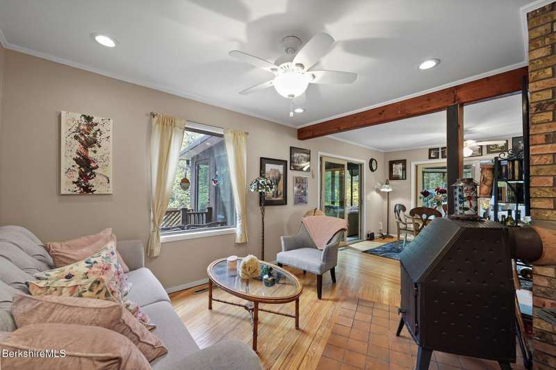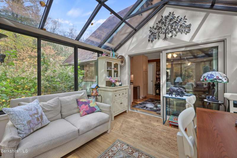 Charming 3BR Cape style home with a beautiful solarium, plus a screened porch located on 11 acres. Sit on a bench and enjoy the babbling brook or listen to it from the gorgeous solarium, the screened porch or the deck. This lovingly cared for home is immaculate with a recently renovated kitchen. The walk-out lower level could easily be finished for additional living space. Nicely located on a quiet road, yet near Jacobs Pillow, Tanglewood and most other popular Berkshire destinations, yet under 3 hrs. to NYC and 2.5 hrs. to Boston. Jeff Wilkinson Jeff@StoneHouseProperties.com 413-269-4500 STONE HOUSE PROPERTIES, LLC