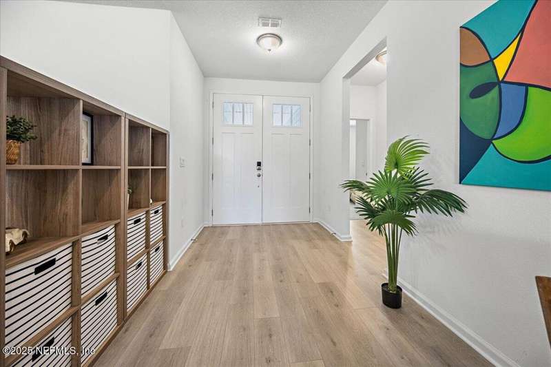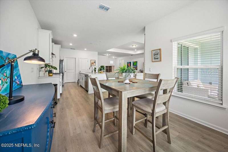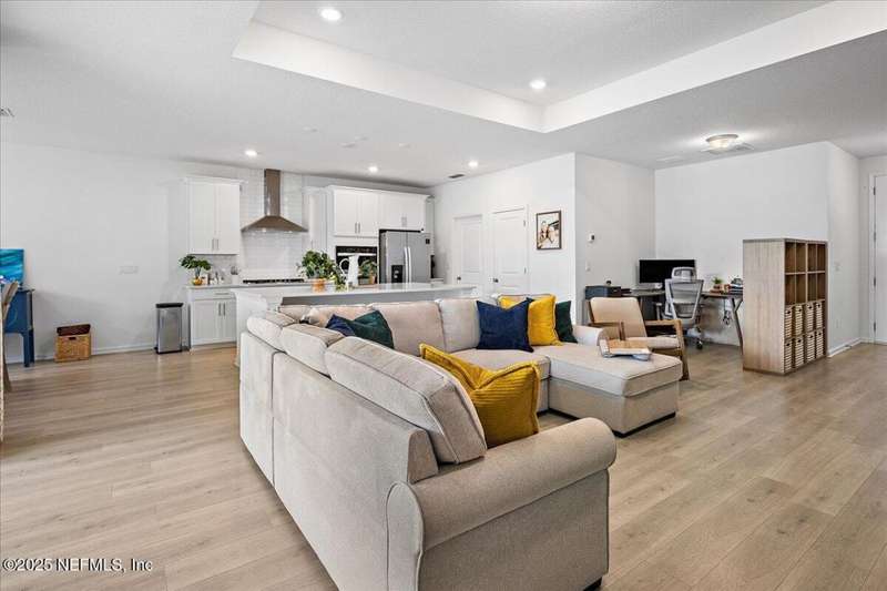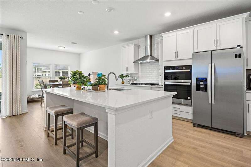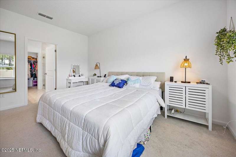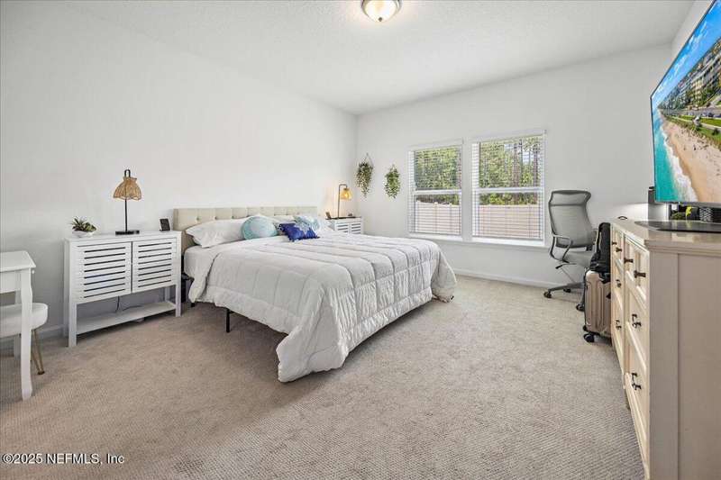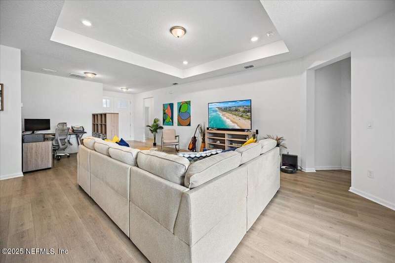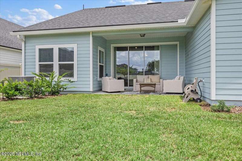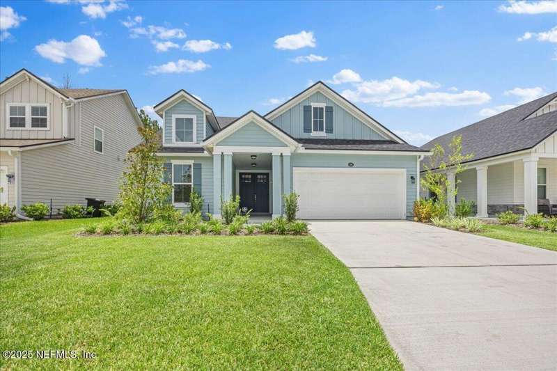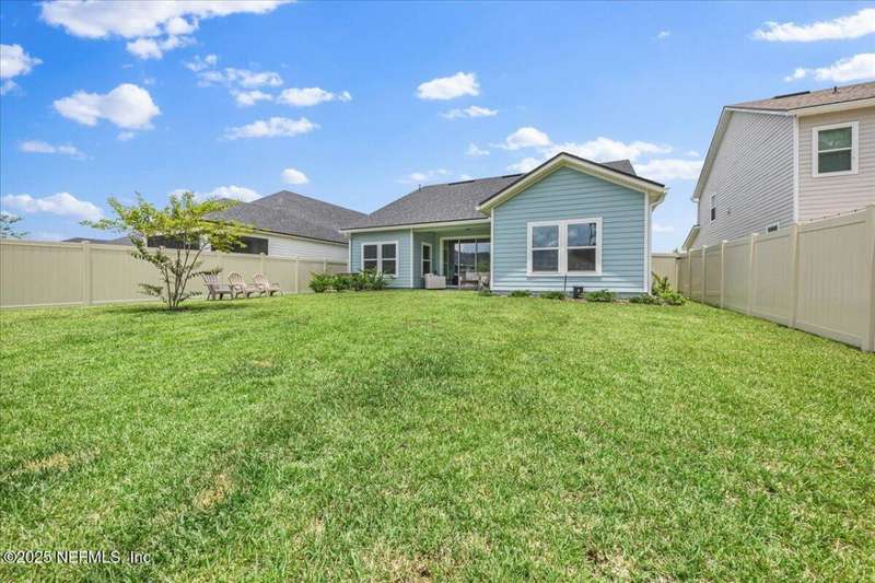 Don't miss this opportunity to own a beautifully upgraded 3-bed, 2-bath single-story home with a 2-car garage in St. Johns County! This home features an open-concept living and elegant, modern finishes throughout. Step inside through double front doors into a bright and airy space featuring luxury vinyl plank flooring, white cabinetry, and quartz countertops. The gourmet kitchen includes a large island, stainless steel natural gas cooktop, wall-mounted hood, built-in oven tower, and a full backsplash extending to the ceiling for a sleek, contemporary look. The family room boasts a tray ceiling, and the layout flows seamlessly to a covered lanai, ideal for outdoor relaxation or entertaining. The fully fenced backyard includes solar lighting and a side gate. Gutters around the entire home for added convenience. Epoxy Garage Floors. This home blends luxury, comfort, and unbeatable location-schedule your private showing today! Move-In Ready! Stunning Camden Plan in Beacon Lake on 53' Lot. Retreat to a luxurious owner's suite with a frameless glass shower, tile extended to the ceiling, seating, transom window, and a spacious walk-in closet. Bathrooms feature quartz vanities, Moen fixtures, and upgraded undermount sinks. Other highlights include: Natural gas tankless water heater. Water softener loop with outlet in garage, Energy Star appliances, 2 eco white blinds throughout, upgraded carpet in bedrooms, Nobleza Astorga tile in baths, laundry, and HVAC closet. Located in a resort-style, natural gas community, Beacon Lake offers world-class amenities including a 43-acre lake, clubhouse, fitness center, pool, splash park, tennis and pickleball courts, playgrounds, and top-rated St. Johns County schools.