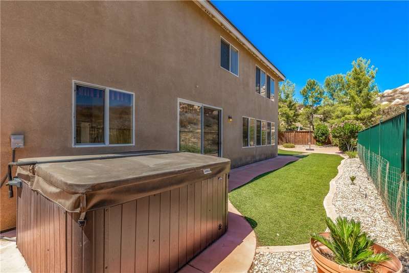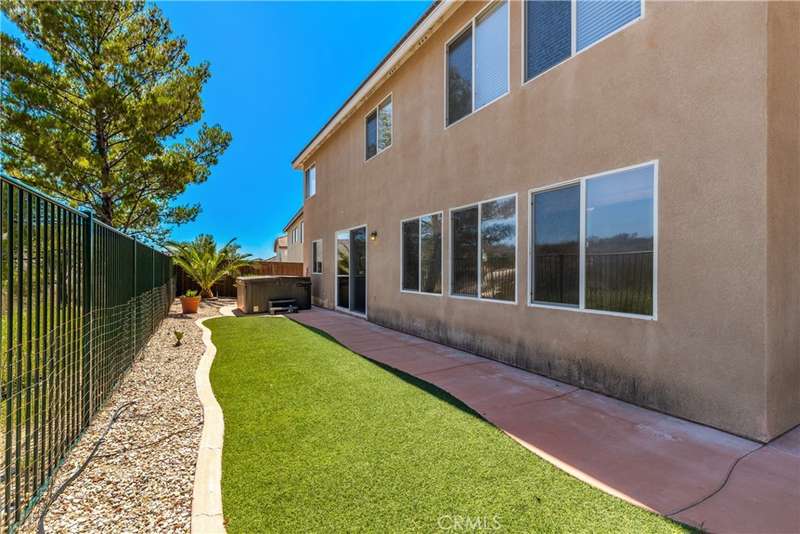 PRICE IMPROVEMENT OF $10K AS OF 09/19!!! Beautiful 2 story top of cul de sac view home located in the highly sought after master planned " Canyon Hills" community in Lake Elsinore. So much attention to detail in this lovely home. No back neighbors- Just beautiful views. Boosting 2117 square feet with 3 large upstairs bedrooms and 2 full baths. The primary bathroom has a sunken tub and stall shower. The secondary bathroom has a tub/shower combo. Downstairs has a powder room. Upstairs loft/bonus room. can easily be converted to an additional 4th bedroom. Also boosting a separate family and dining room. Rich wood floors and classy tile throughout this home. Central heat and air. Cozy gas fireplace, cool ceiling fans. Custom window coverings, mirrored wardrobe doors. Upstairs dedicated laundry room with storage. Cooks kitchen with stainless steel appliances, center island. Fridge will remain. Entertainers backyard complete with high end astro turf and plants powered by a low water drip system with timer. Large, flat useable pool size backyard approximately 6098 square feet. Newer 9/30/2023 above ground 5 person spa manufactured by Cal Spas. Lots of jets. Spacious 3 car garage with a garage door opener.