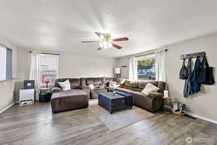 Charming 3-bedroom, 1-bath home in a great Bremerton location! This move-in ready gem features a fully fenced yard, 3-car detached garage, and cozy wood-burning stove. Enjoy peace of mind with a new roof, furnace, and fresh paint (2023), new water heater (2024), and new flooring (2025). The sprinkler system keeps the yard lush and low-maintenance. A perfect blend of comfort, updates, and functionality—ready to welcome you home!