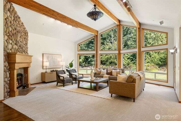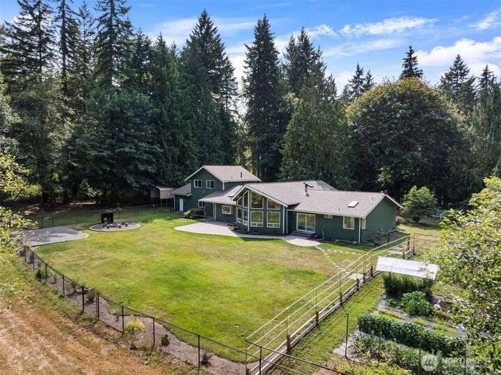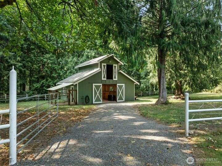 Bucolic. Peaceful. Private. Welcome home to Cottage Lake Farm! This classic home seamlessly balances interior comforts w/perfectly appointed exterior amenities. An entertainer’s dream come true; filled w/natural light the sunny great room has soaring floor-to-ceiling windows. Perfectly appointed Primary Suite offers a spa-like atmosphere & walk-in closet. The garden is a dream come true; the owner’s pride & joy. Picturesque 2 stall barn w/chicken coop, hay loft plus fully fenced pasture is perfect for your horses or other farm animals. Completely level lot w/charming walking trails plus a story-book tree house & outdoor firepit. Generator hook up & RV/boat parking. Mins to Redmond/Duvall for shopping, dining & an easy commute! Northshore SD