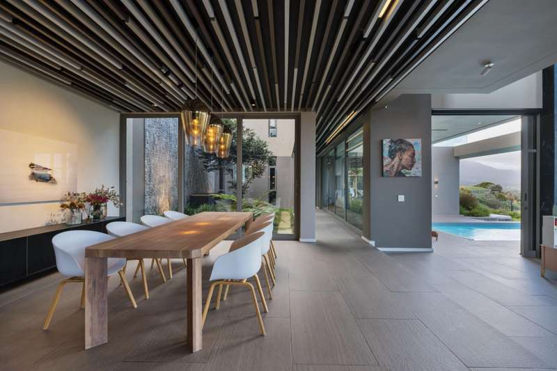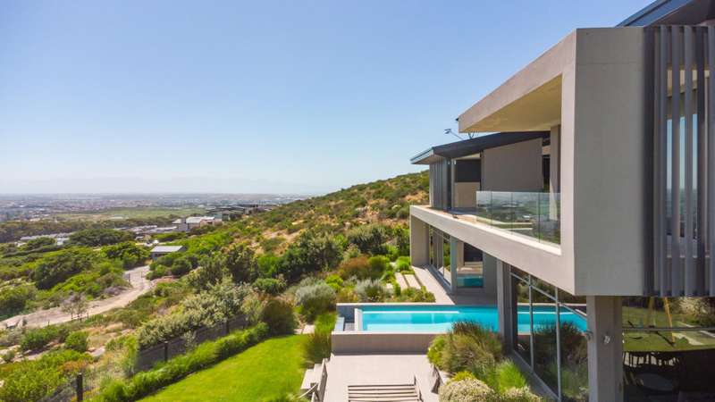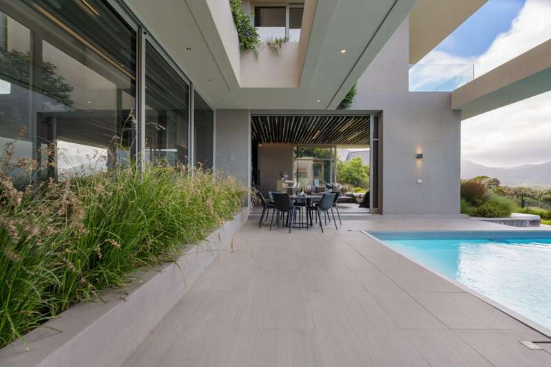 A Masterpiece of Modern Luxury in Stonehurst Estate Wake up to the golden hues of sunrise streaming through floor-to-ceiling glass, with the iconic Table Mountain unfolding before you like a living masterpiece. More than just a home, this architectural gem is a private sanctuary offering breathtaking views, unparalleled privacy, and a prime location within the prestigious Stonehurst Estate. Designed for Sophisticated Living Crafted by the renowned Stefan Antoni of SAOTA, this residence harmoniously blends contemporary elegance with natural serenity. Nestled within a secure estate, it offers a tranquil retreat just minutes from the vibrant energy of Cape Town. From the moment you step through the oversized wooden sliding door, a sense of grandeur envelops you. The double-volume entrance, flooded with natural light, is a statement of design excellence. A floating oak staircase with sleek black balustrades ascends gracefully, complemented by sculptural Tom Dixon pendant lights?Çöan artistic focal point that sets the tone for the entire home. An Entertainer?ÇÖs Dream At the heart of the home lies the designer kitchen?Çöa striking balance of form and function. A bold matte black island with a built-in gas hob and seating for four anchors the space, while seamlessly integrated appliances, a sommelier?ÇÖs fridge, and floor-to-ceiling cabinetry enhance its sleek aesthetic. A hidden coffee bar adds a cozy, indulgent touch to your morning ritual. The open-plan living areas flow effortlessly, redefining modern luxury. The dining space extends onto a landscaped courtyard through sliding glass doors, merging indoor comfort with outdoor tranquility. The lounge, warmed by a gas fireplace and adorned with wall-mounted designer lights, invites relaxation while framing uninterrupted views of Table Mountain and the city lights beyond. Seamless Indoor-Outdoor Harmony Step outside to an entertainer?ÇÖs paradise, where the rim-flow infinity pool becomes a breathtaking focal point. Perfectly positioned, it offers panoramic views of the mountain and sky, creating a seamless connection between water, land, and air. The level garden, complete with a pizza oven and wooden jungle gym, balances stylish functionality with family-friendly living. For those who love to host, the indoor braai area?Çöset against a striking black marble wall?Çöpaired with a mirrored bar creates the ultimate gathering spot. Sliding doors open onto the garden and firepit, setting the scene for sundowners, alfresco dining, and cozy evenings under the stars. A Tranquil Retreat The master suite is a private oasis, designed for ultimate serenity. Expansive glass windows frame breathtaking views, while the open-plan en-suite bathroom evokes spa-like luxury. A sculptural oval slipper bath, glossy black tiles, and custom timber cabinetry create a bold yet soothing ambiance. The walk-in dressing room is as stylish as it is functional, offering ample storage space. Exceptional Features & Thoughtful Details Every detail of this home is a testament to refined craftsmanship and meticulous attention to detail: Integrated surround sound system for immersive entertainment High ceilings and expansive spaces that maximize light and flow Seamless indoor-outdoor living, connecting the home to nature Heated infinity pool with an electric cover for added convenience Smart home features, including automated blinds and solar power Additional luxuries such as a wine cellar and a firepit Unrivaled Location & Lifestyle Set within the sought-after Stonehurst Estate, this home offers the perfect blend of security, exclusivity, and natural beauty. Enjoy scenic walking trails, tranquil water features, and easy access to Cape Town?ÇÖs top attractions. This isn?ÇÖt just a home?Çöit?ÇÖs a lifestyle. With its modern architecture, breathtaking views, and unparalleled privacy, this property represents the pinnacle of luxury living.