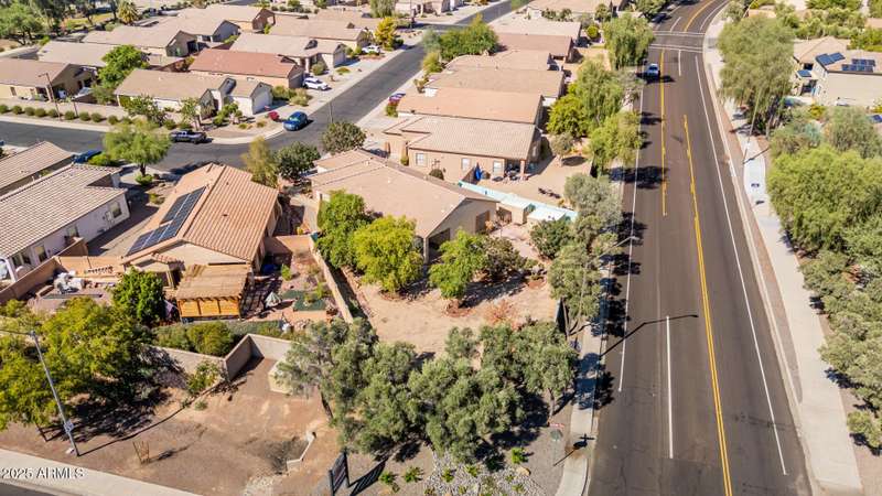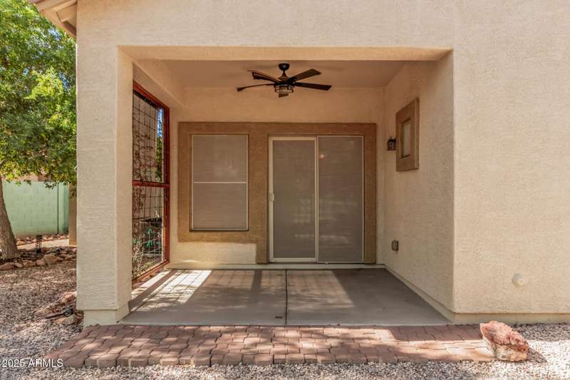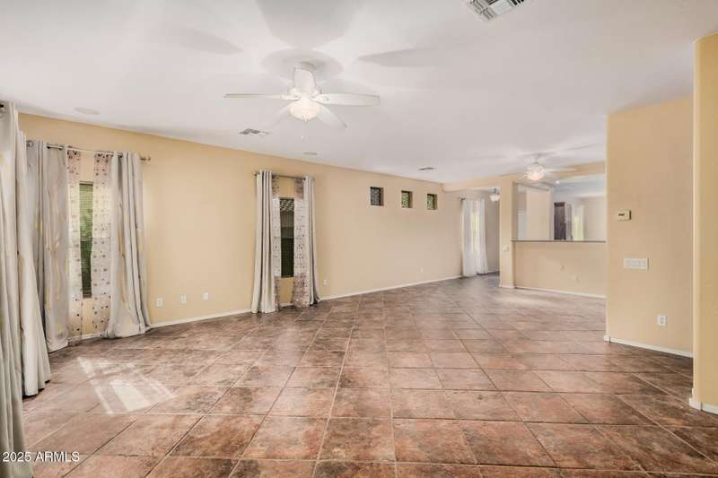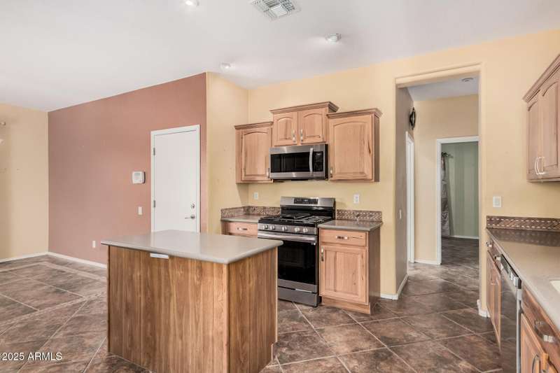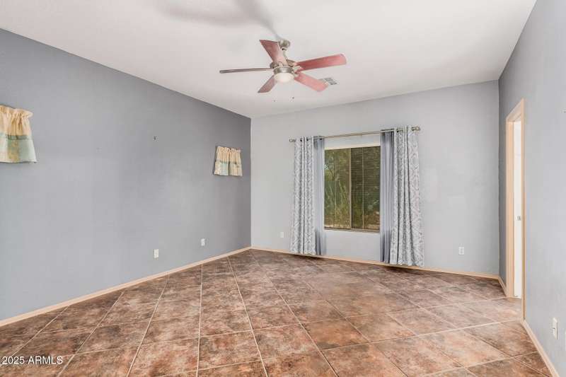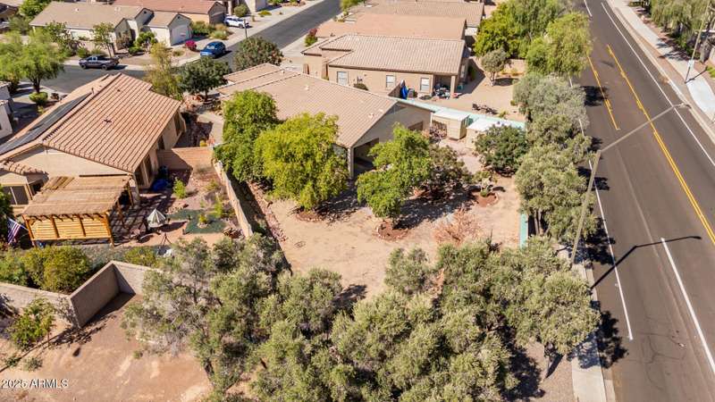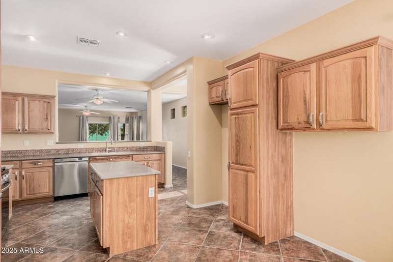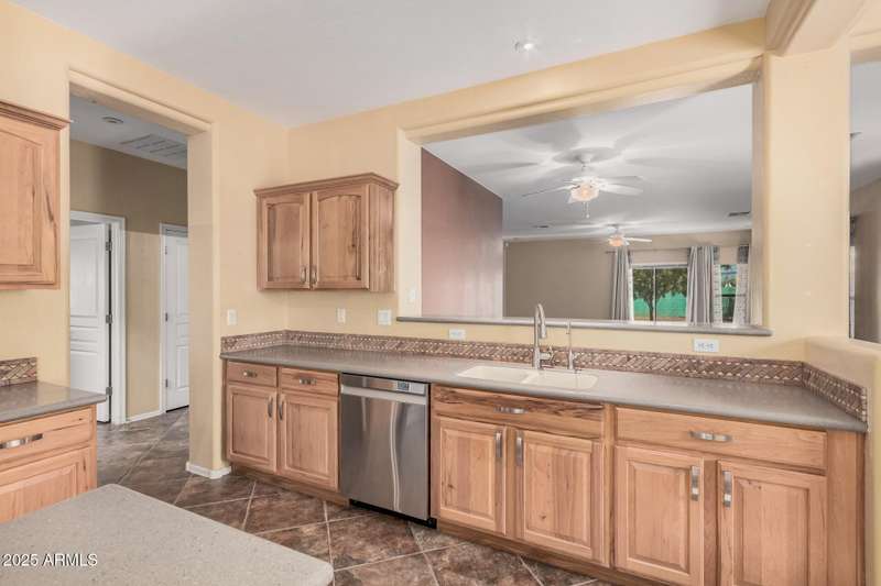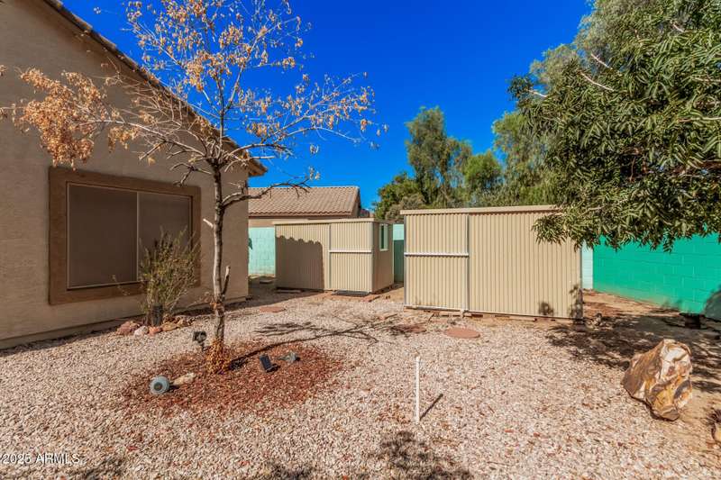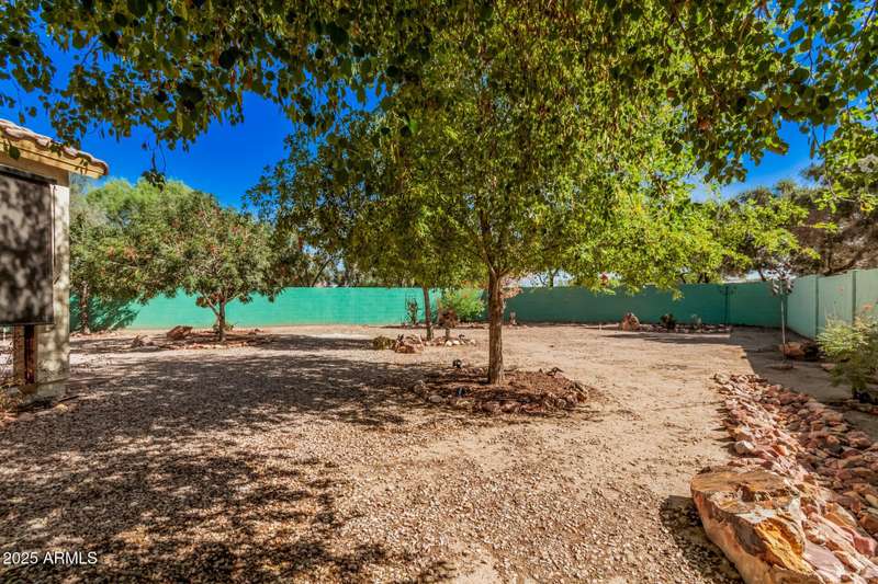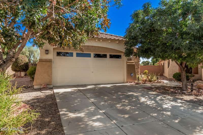 Home, sweet home! This charming 2-bedroom home in Surprise Farms welcomes you with a 2-car garage, tasteful stone accents, and mature trees for natural shade. The spacious living room features high ceilings, a warm palette, blinds, and durable tile flooring. Cook delicious meals in the eat-in kitchen, equipped with granite counters, ample wood cabinetry with crown moulding, recessed lighting, stainless steel appliances, a pantry, a center island, and a practical pass-through with a breakfast bar. The main bedroom has an ensuite with dual sinks and a walk-in closet. You'll also find a cozy den that provides a versatile space for an office or lounge. Spend tranquil evenings in the sizeable backyard, showcasing a covered patio and a couple of sheds for additional storage. Don't miss out!