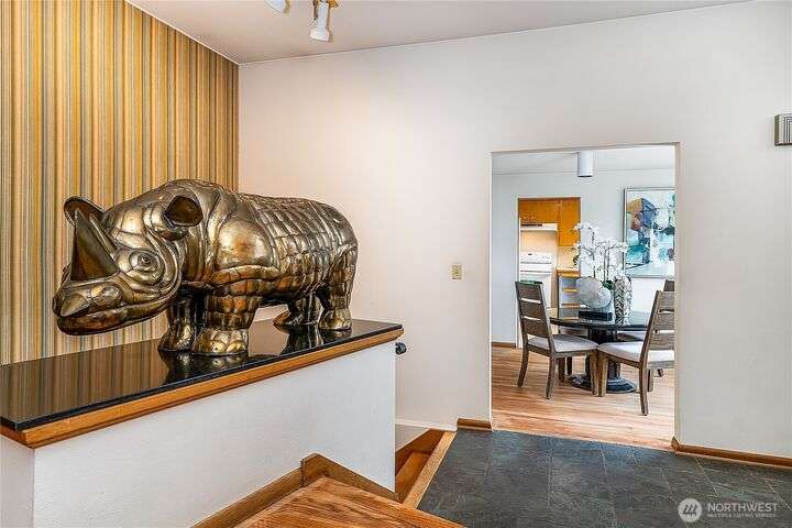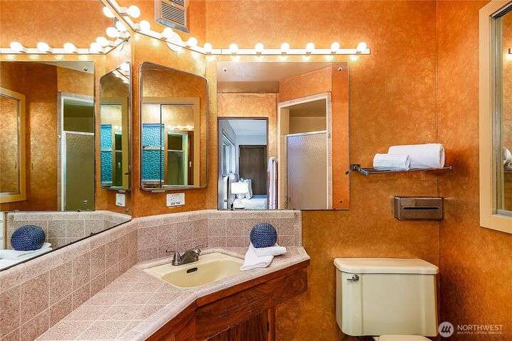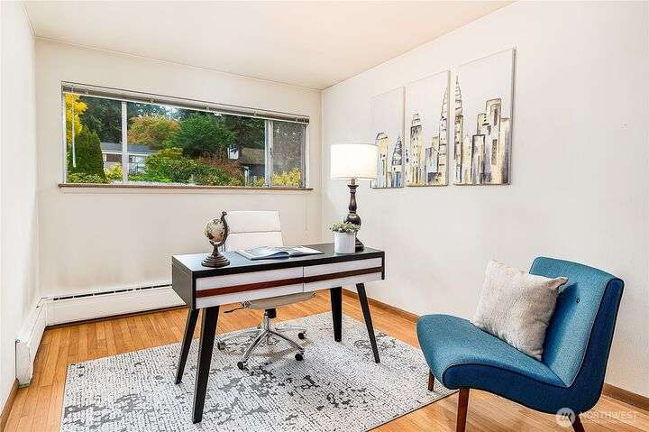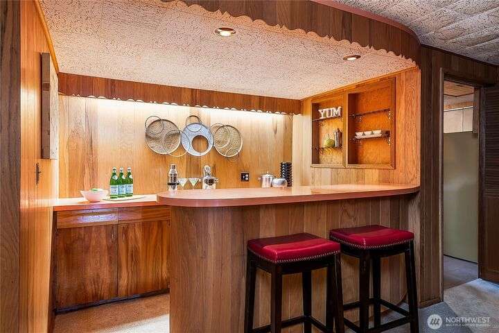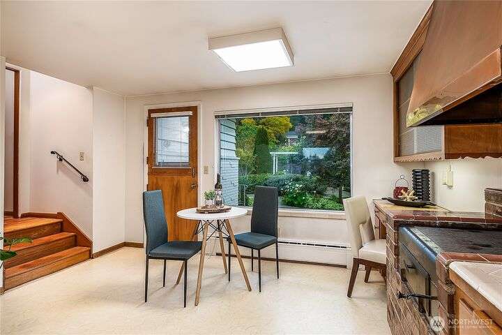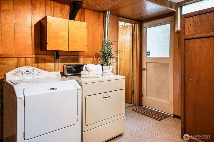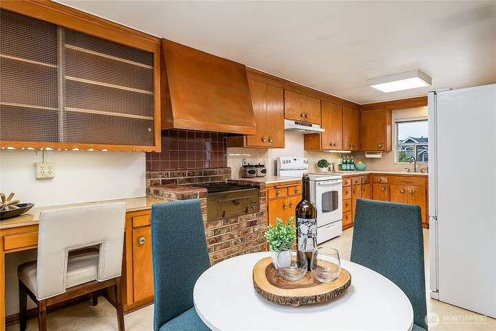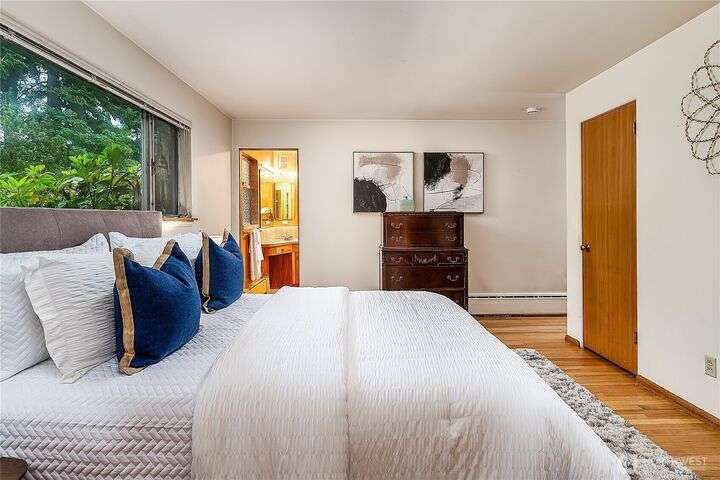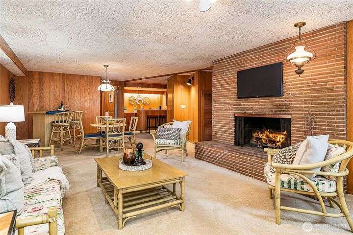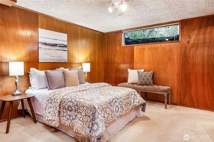 Fall in love with this stunning, custom-built mid-century modern gem in sought-after Broadview, perfectly positioned to capture sweeping views of Puget Sound, the Olympic Mountains, and unforgettable sunsets. Timeless design shines with 4 beds, 3 baths, rich hardwood floors, brick fireplaces, and iconic architectural details. Ideal for entertaining with generous living spaces and a vintage bar. Outside, your professionally designed parterre patio awaits, surrounded by vibrant lavender and mature NW landscaping. It’s the perfect setting for indoor-outdoor living and quiet moments in nature. Fully fenced backyard. Enjoy tree-lined streets, a welcoming community, and quick access to city amenities—all within this charming enclave of Seattle.