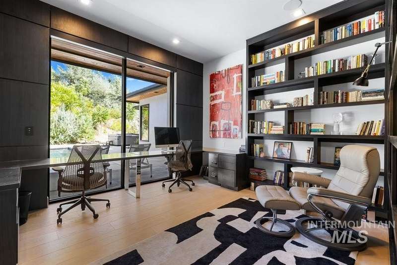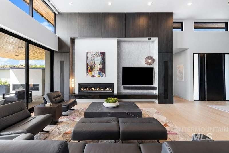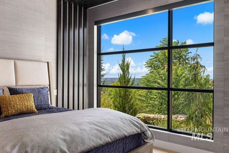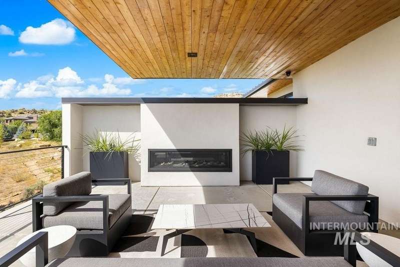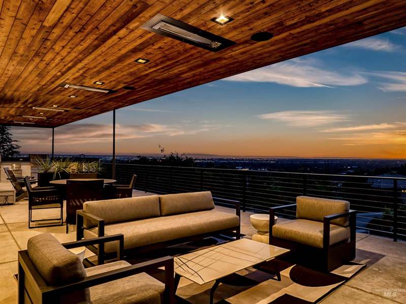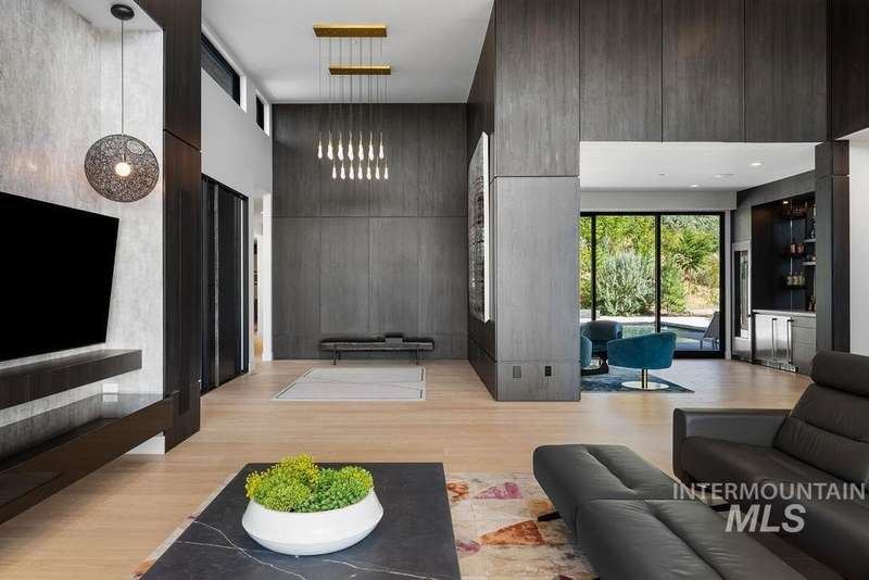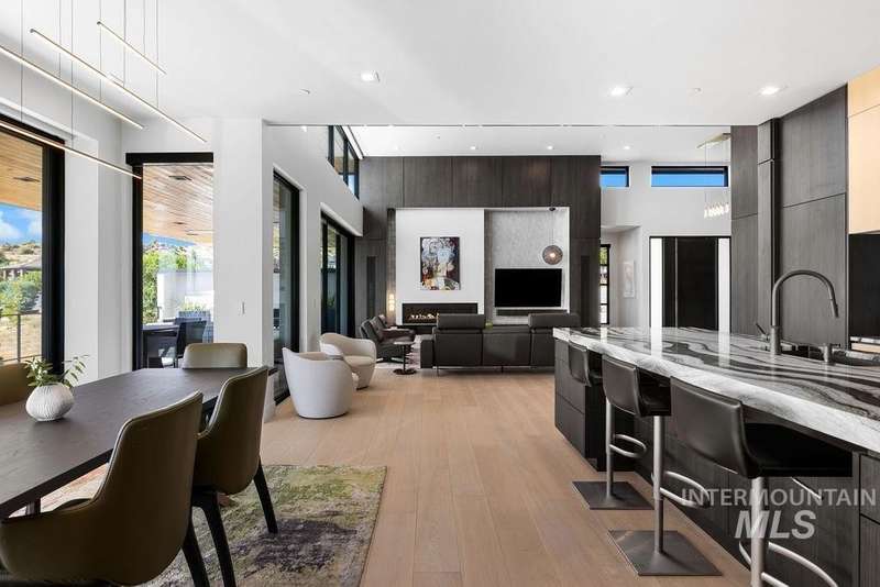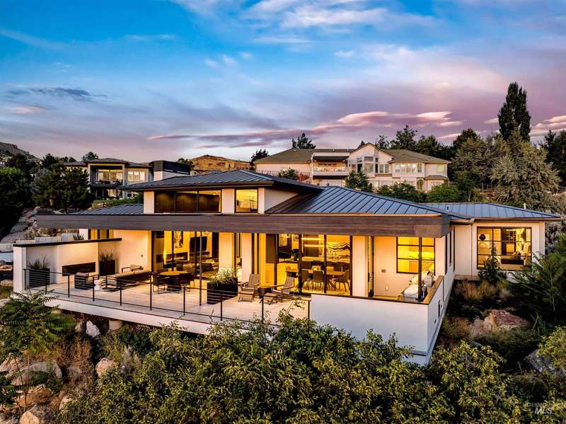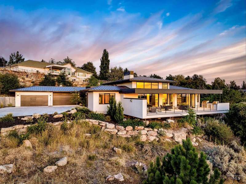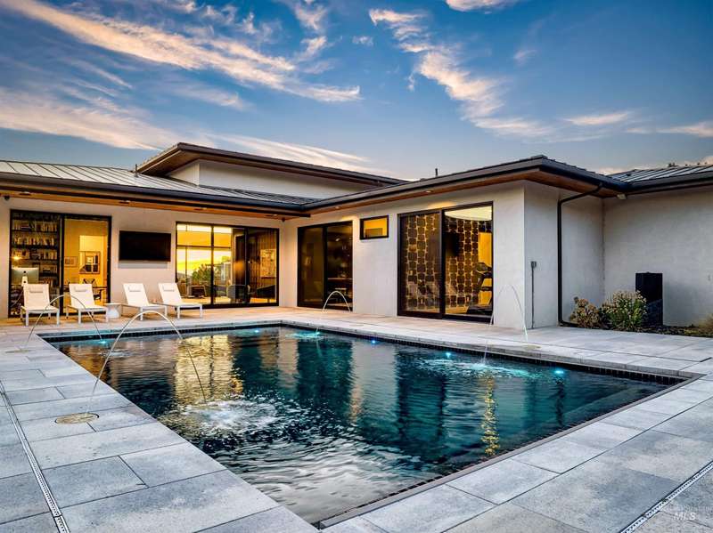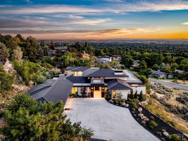 Refined Luxury. Sprawling single-level estate on ~1.25 acres in the East Boise Foothills with stunning panoramic city & sunset views. A perfect blend of comfort & sophistication, this contemporary home boasts soaring ceilings, rift-sawn oak floors, marble/porcelain surfaces, custom paneling, curated lighting, power shades, sound system, & thoughtful built-ins. The chef’s kitchen is both beautiful & functional, equipped with top-tier Gaggenau & Thermador appliances including an induction cooktop, teppanyaki grill, wall & steam ovens, espresso machine, plus a generous marble island & butler’s pantry. The serene primary suite offers a spa-like bath, dressing closet & direct patio access. Relax in the lounge with bar, wine fridge & ice maker or step outside to enjoy the gorgeous pool & hot tub. A west-facing terrace offers year-round enjoyment w/ fireplace, built-in heaters, & an outdoor kitchen–ideal for elegant entertaining or quiet evenings at home. 4-car garage; No HOA, zoned for possible ADU or add’l garage.
