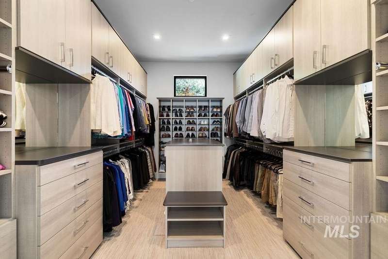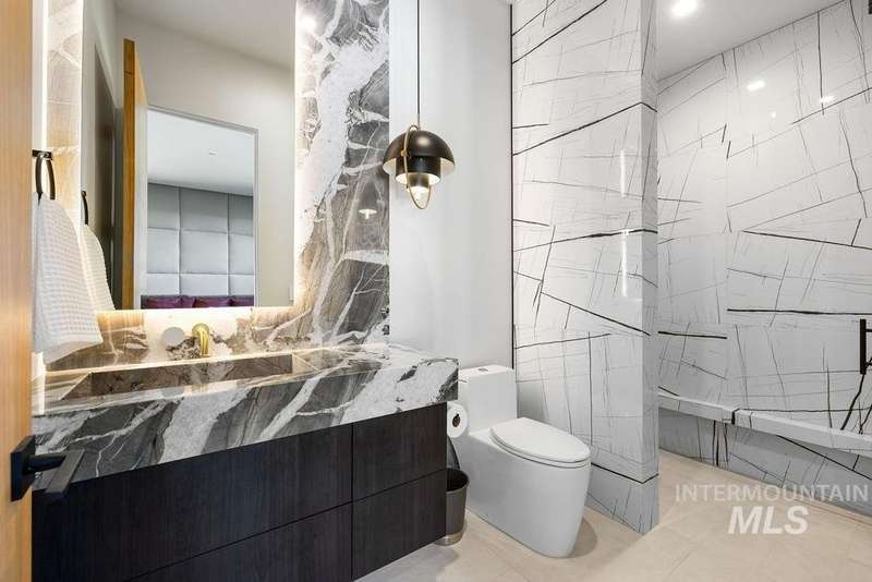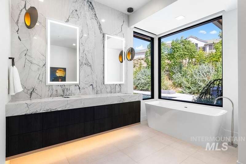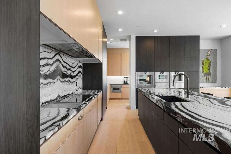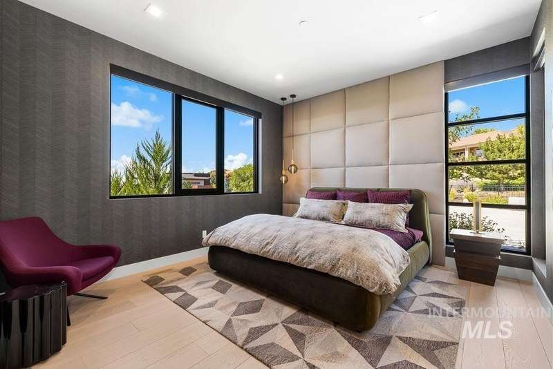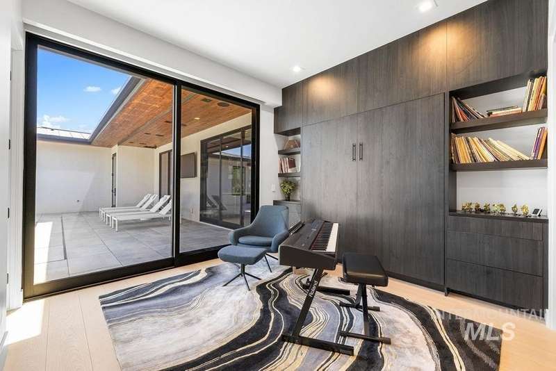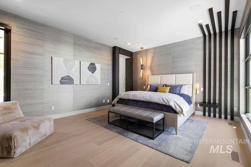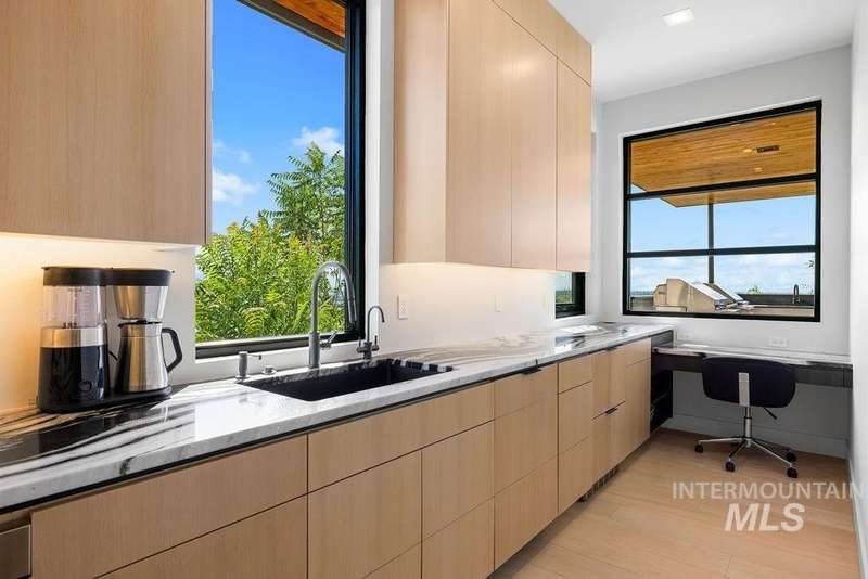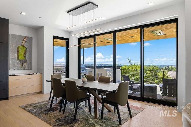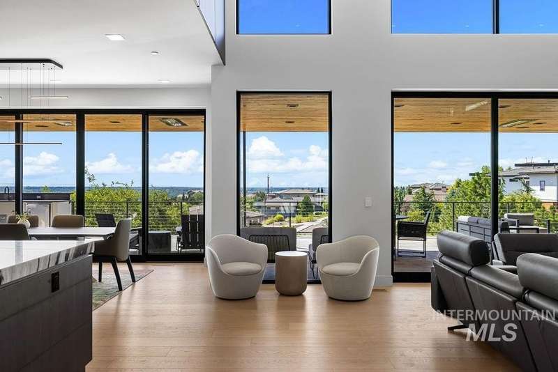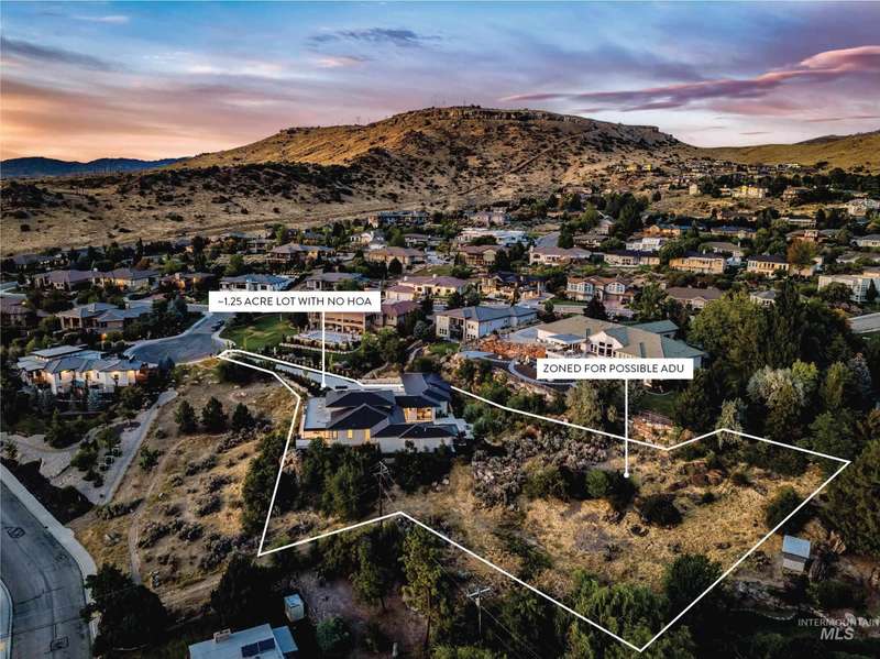 Refined Luxury. Sprawling single-level estate on ~1.25 acres in the East Boise Foothills with stunning panoramic city & sunset views. A perfect blend of comfort & sophistication, this contemporary home boasts soaring ceilings, rift-sawn oak floors, marble/porcelain surfaces, custom paneling, curated lighting, power shades, sound system, & thoughtful built-ins. The chef’s kitchen is both beautiful & functional, equipped with top-tier Gaggenau & Thermador appliances including an induction cooktop, teppanyaki grill, wall & steam ovens, espresso machine, plus a generous marble island & butler’s pantry. The serene primary suite offers a spa-like bath, dressing closet & direct patio access. Relax in the lounge with bar, wine fridge & ice maker or step outside to enjoy the gorgeous pool & hot tub. A west-facing terrace offers year-round enjoyment w/ fireplace, built-in heaters, & an outdoor kitchen–ideal for elegant entertaining or quiet evenings at home. 4-car garage; No HOA, zoned for possible ADU or add’l garage.