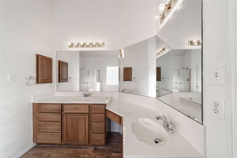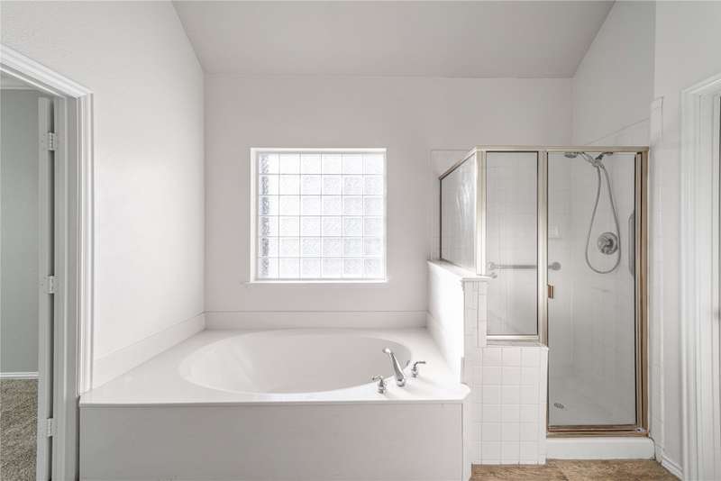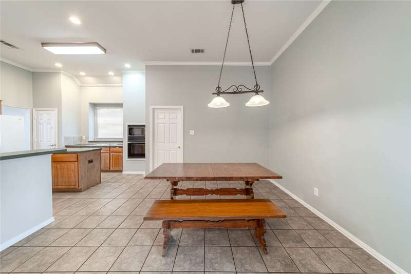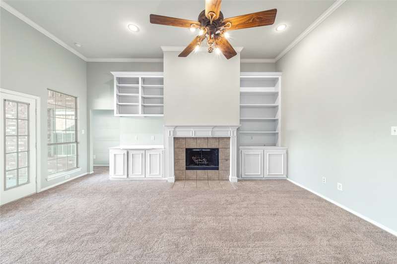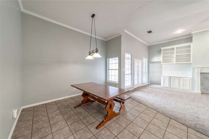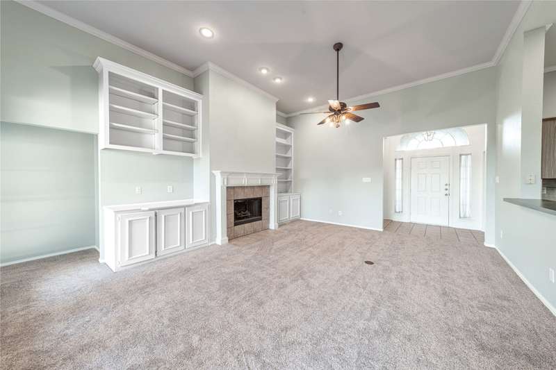 Beautiful one-story home in a lovely Plano community featuring high ceilings with fans, spacious main living area with built-in bookcases and a wood-burning fireplace. Bright island kitchen with ceramic tile, formal dining, and split bedroom layout for privacy. The flexible fourth bedroom works perfectly as a study or office. Primary suite boasts a walk-in closet, separate shower, and relaxing garden tub. French doors lead to the backyard. Move-in ready with great flow and inviting details throughout!