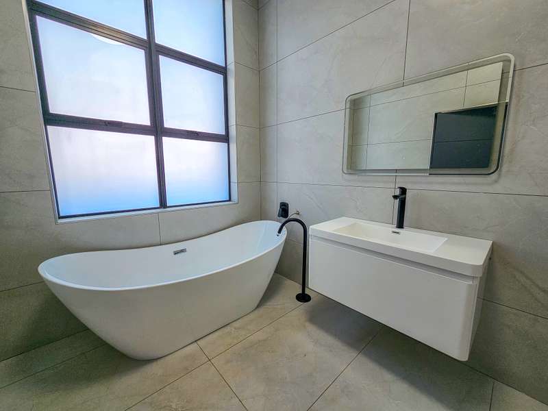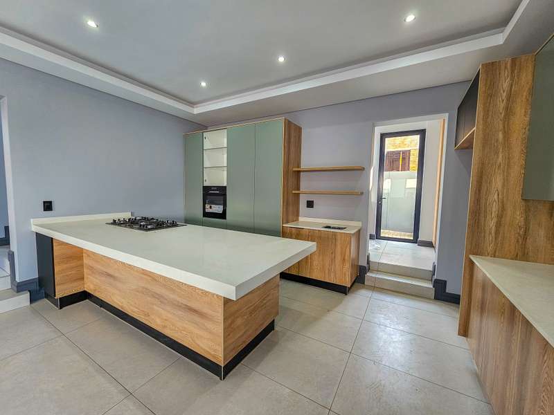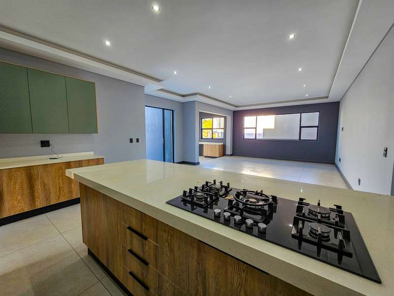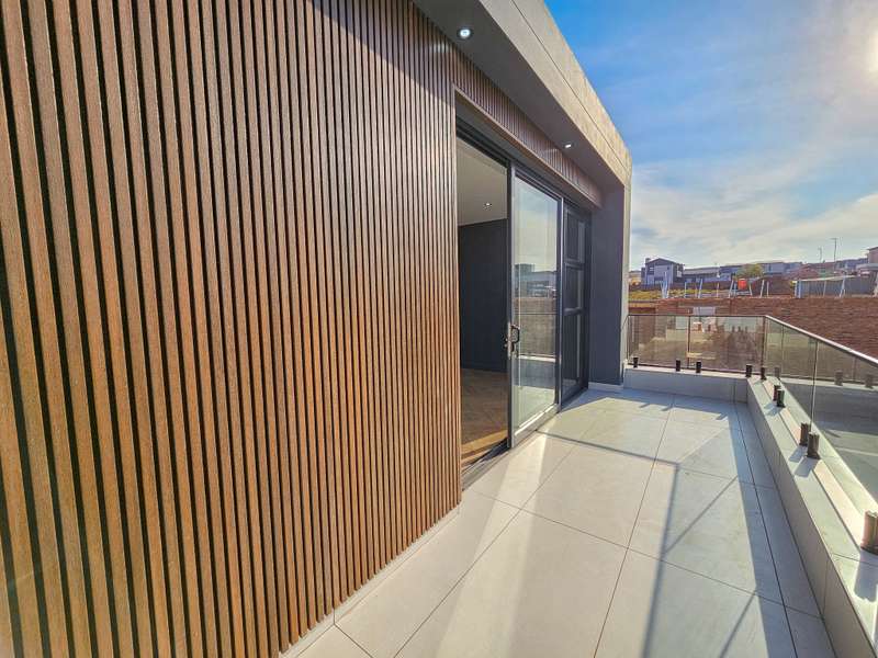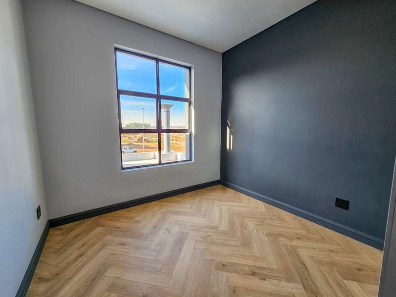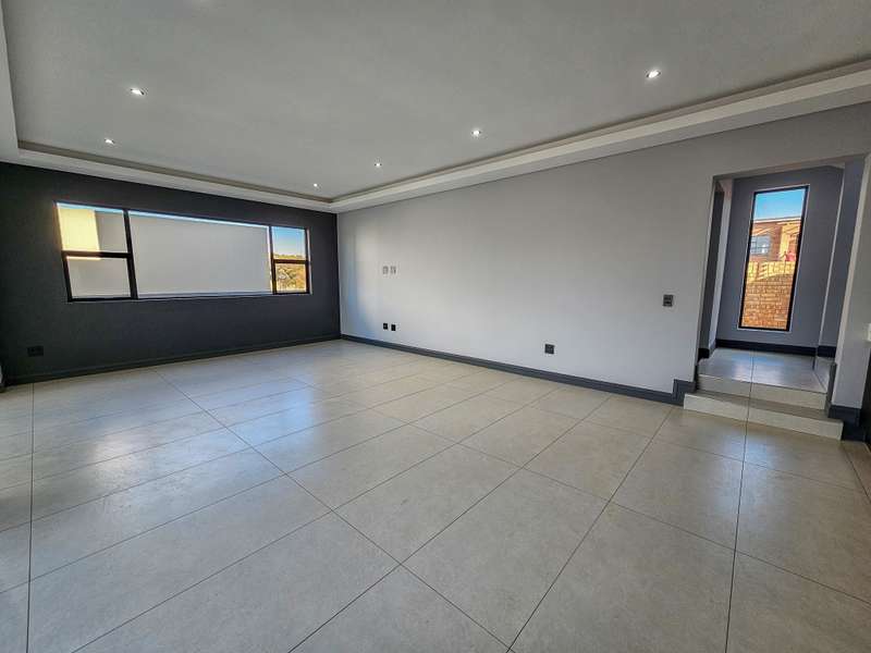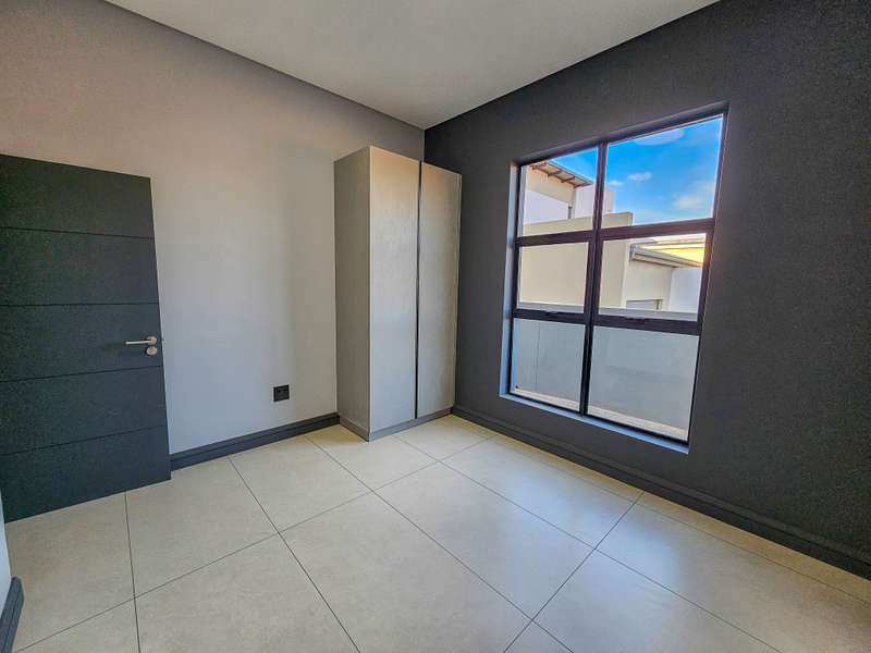 NO TRANSFER DUTIES ON SHOW: Viewings by Appointment Welcome to this brand-new, beautifully crafted home in the heart of the highly sought-after Fountainbrook Estate. Set on a spacious stand with an inviting driveway, this home offers a perfect blend of modern design, comfort, and lifestyle convenience. Upon entry, you’re welcomed into a light-filled open-plan layout that effortlessly connects the designer kitchen (with a private scullery), dining area, and elegant lounge. The enclosed patio, featuring a built-in braai and cabinetry, extends your entertainment space and opens onto a lush garden with a sparkling swimming pool — perfect for hosting or relaxing with family. Downstairs Features: - A versatile guest bedroom with a separate full bathroom - Next to -staircase storage conveniently tucked away - Seamless flow from kitchen to living and outdoor areas Upstairs Offers: - Two well-sized family bedrooms with a shared full bathroom - A practical linen cupboard for added storage - A luxurious main suite with a walk-in closet, full en-suite bathroom, and a private balcony – your personal sanctuary after a long day - This home is ideal for families looking for secure estate living without compromising on space or style. Why Choose Fountainbrook Estate? - 24/7 manned security and access control - Family-friendly clubhouse and communal pool - Landscaped parks and braai areas - Walking distance to The Red Barn for weekend markets, cycling trails, and creative workshops (Once bridge opens) - Convenient location near top schools and an upcoming shopping centre Estimated Rates & Levies Pet-Friendly: 2 dogs or 2 cats (subject to HOA approval - Dogs 30cm of Height on Maturity) Your dream home awaits – secure this lifestyle opportunity today in Fountainbrook Estate.
