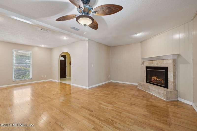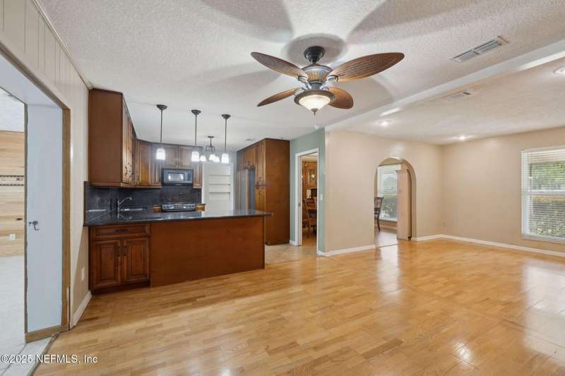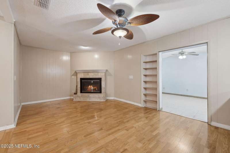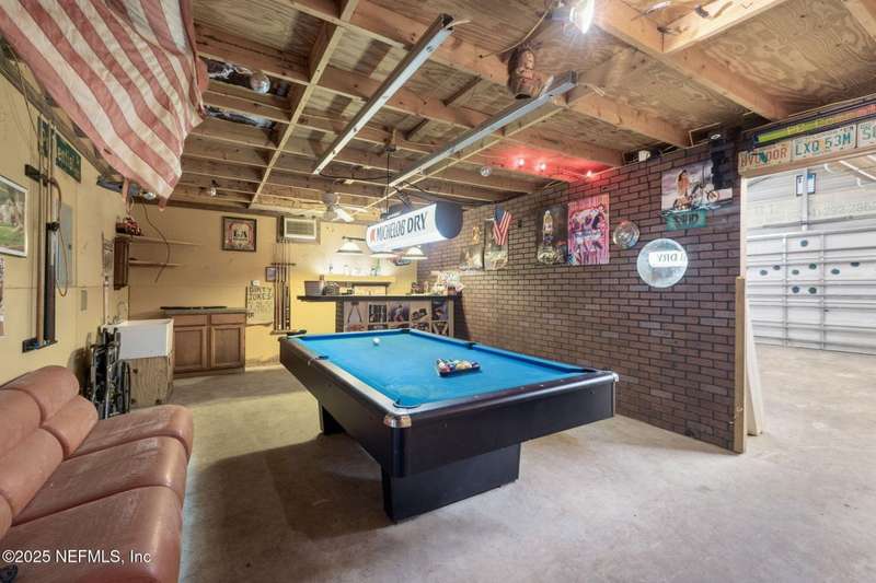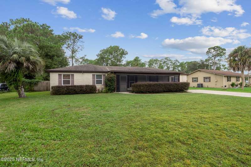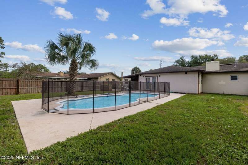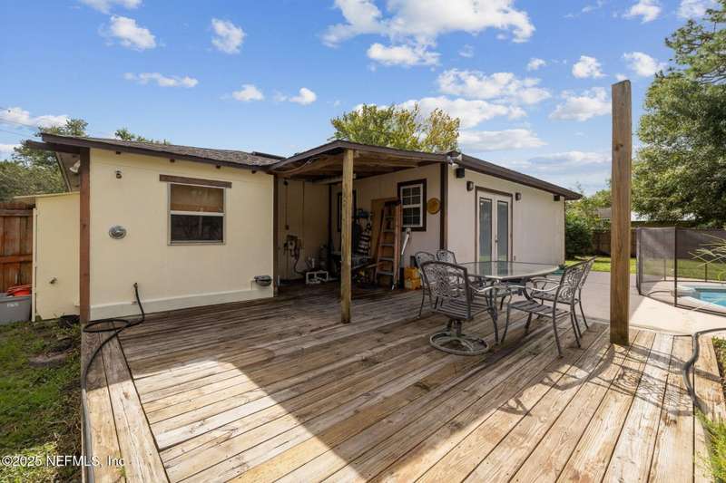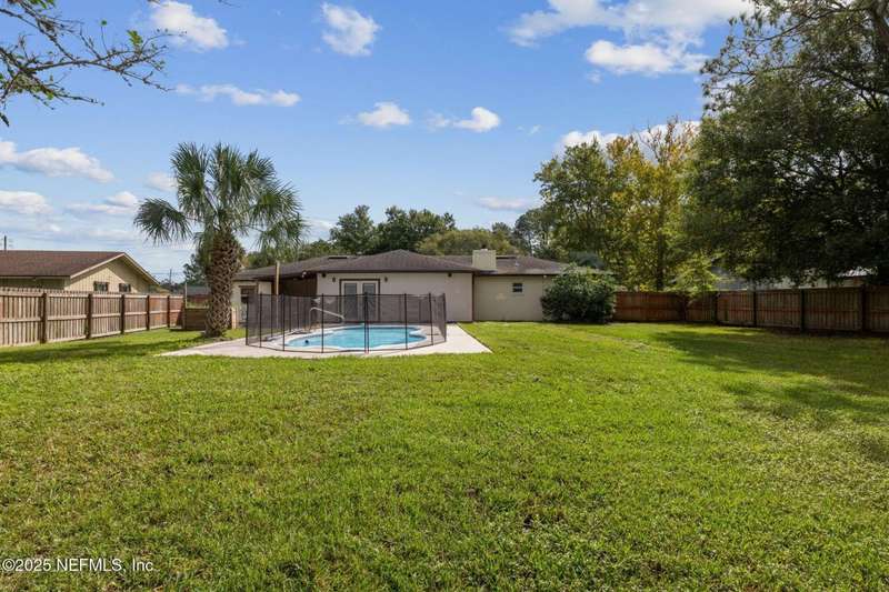Rare find in sought-after Mandarin area! Concrete block construction, pool home on 1-acre lot with 4 bedrooms, 2.5 baths, which includes a private in-law suite, sunroom, AND a separate 1,050 sqft amazing workshop/garage/man cave out back. The home features a screened front porch, foyer, large family room with fireplace, flex room/office, and a separate dining area. Custom, updated, and fully equipped kitchen (dishwasher & refrigerator, both 1 year old), smooth-top range, microwave, glass cabinetry, pantry, and breakfast bar. A 25' x12' ''all-weather'' room with French doors to pool & backyard. The primary en-suite features a walk-in shower, Bluetooth lighting, and a wall-to-wall closet. Extras: chicken coop, citrus trees, double gate, AC (2014), prewired for alarm, laundry area, RV pad w/ power & water. Walk to the elementary & middle school. Perfect for those seeking acreage, a pool, and a workshop with city conveniences. The owner says that you can have a horse!