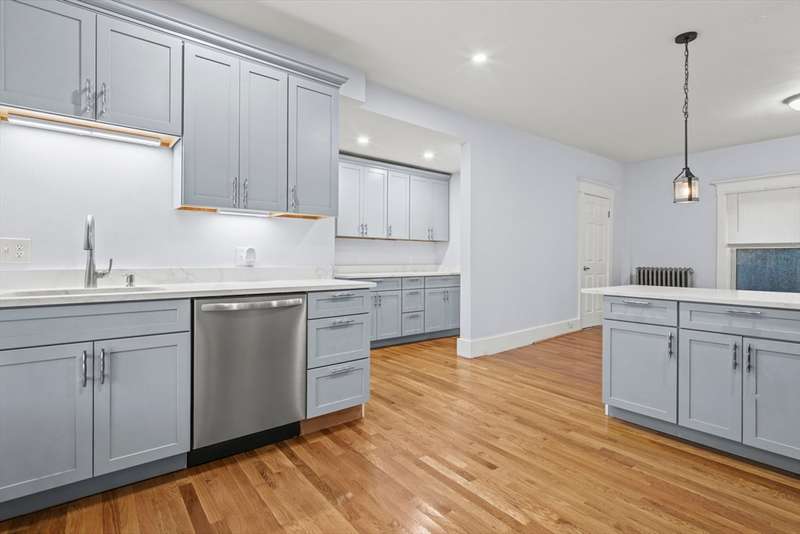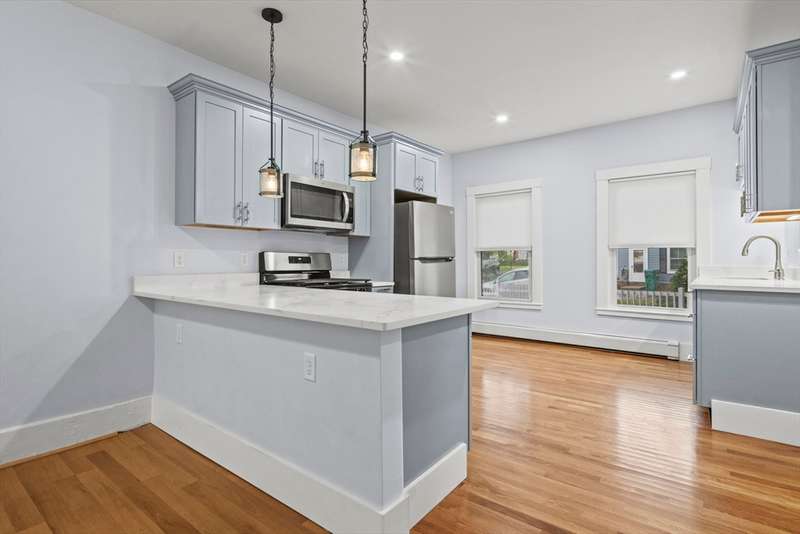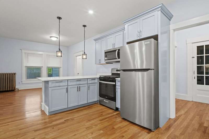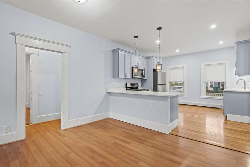 This well-maintained two-family home offers an excellent opportunity for owner-occupancy or investment. The first-floor unit has been extensively updated with a stunning kitchen featuring quartz countertops, new cabinetry, stainless steel sink, gas stove, and a breakfast bar that opens to a bright living area. Additional upgrades include spray foam insulation throughout, a new water heater, and a refreshed bath with new toilet, lighting, and exhaust fan. Laundry hookups are located in the basement. The second-floor unit features a spacious living room with custom built-ins, an eat-in kitchen, new boiler, laundry hookups with basement access, and a bedroom with new insulation, ceiling, and recessed lights. Rear siding was completely redone two years ago, and two smaller roofs were replaced within the last three. Outside offers a private patio and a two-car driveway for off-street parking.