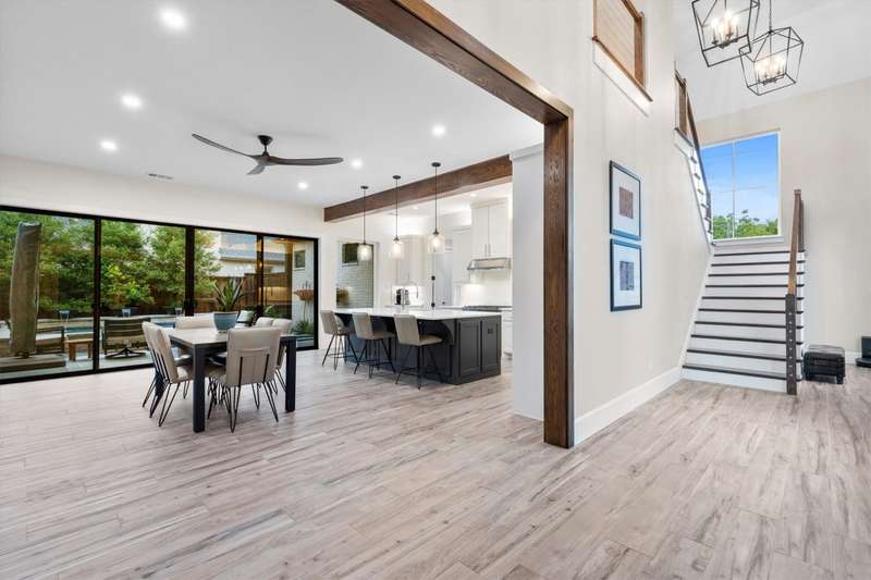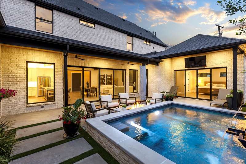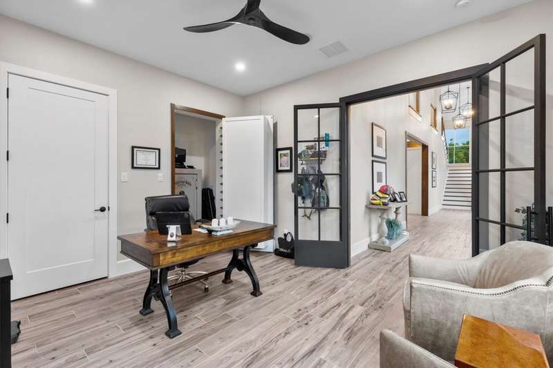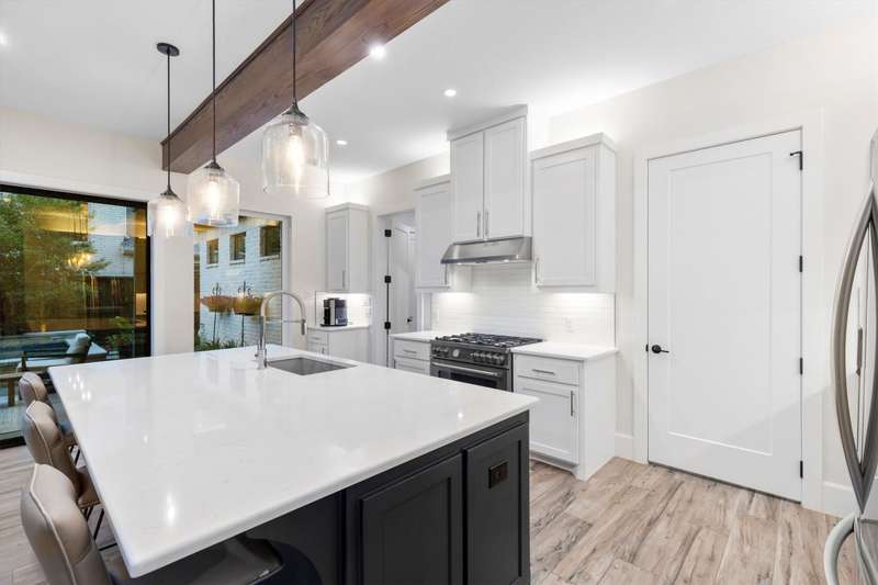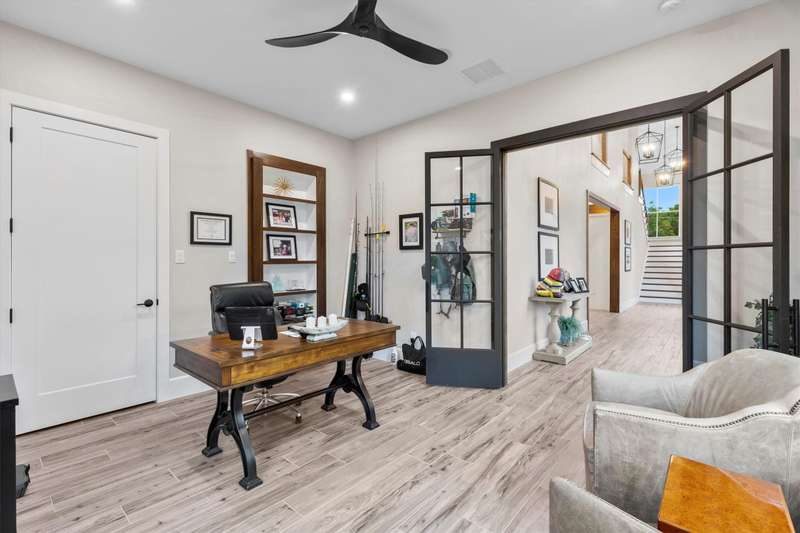 This exceptional Tudor Custom Home is a true showstopper. Thoughtfully designed and beautifully finished, it features three spacious bedrooms with en suite bathrooms, a dedicated office with and a versatile flex space perfect for your lifestyle needs. The elegant living room and primary suite have oversized sliders (16x8 in the living room and 12x8 in the primary), creating a seamless indoor-outdoor flow. The gourmet kitchen boasts a Bertazzoni Italia gas range, soft-close drawers, and an enormous walk-in pantry perfect for culinary enthusiasts.Luxury extends throughout the home:No carpet on the first floor, Sonos system wired in the courtyard, primary bedroom, living room, and kitchen and hidden closet with a safe behind office shelving. Home is wired for a generator. The primary bathroom is spacious and the walk in shower is huge!Outdoor living is just as impressive: enjoy a sparkling pool, fire pit and take advantage of two thoughtfully designed side yardsone enclosed with wrought iron fencing for added safety, and the other ideal for a playset or outdoor games enclosed with board on board fence.Location, location, location! You're just a short walk to the park and the vibrant Rail District, home to restaurants, entertainment, and shopping.This home is a rare gemdont miss your chance to make it yours!