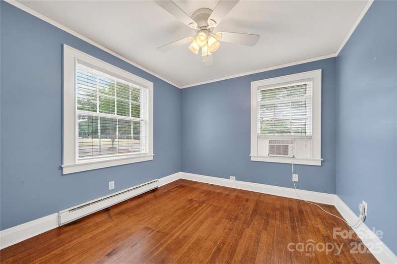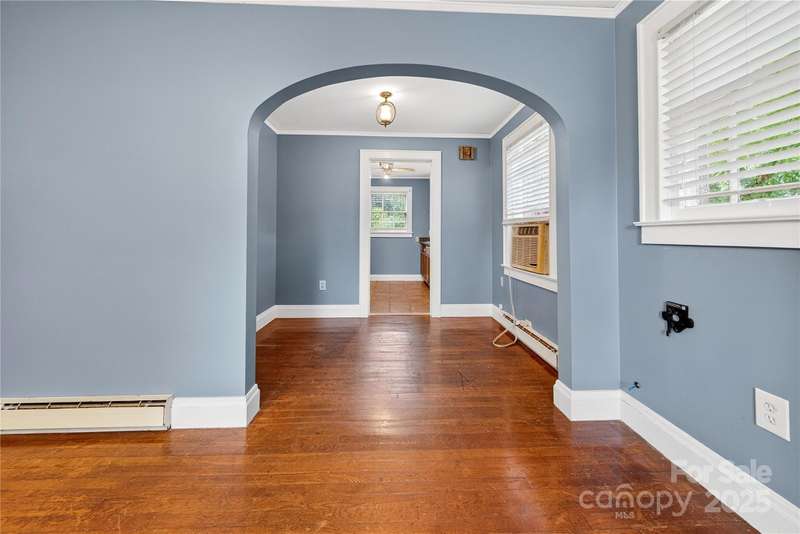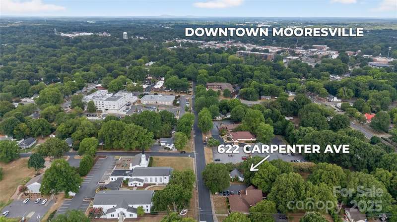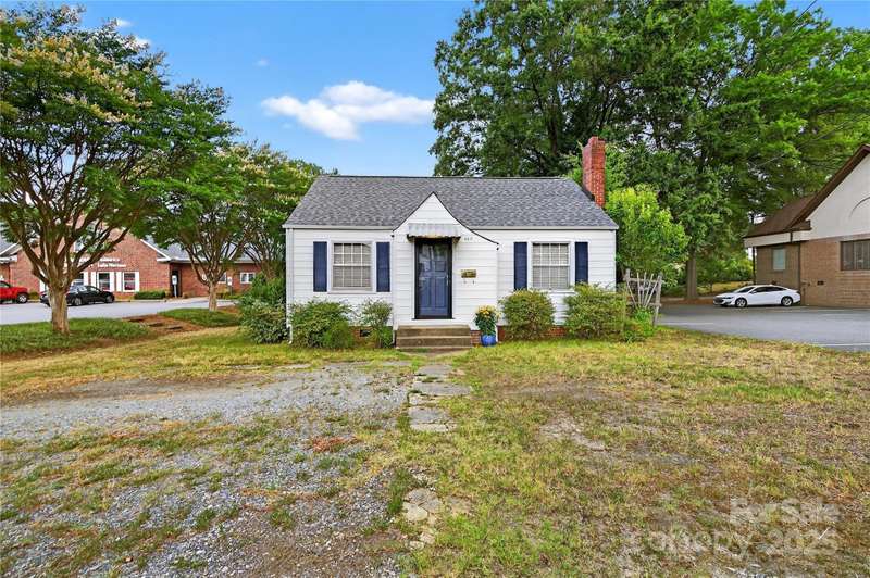 Charming 2 Bedroom, 1 Bath Home - Just steps from Downtown Mooresville! Discover the perfect blend of convenience & character in this cottage-style home, ideally situated within easy walking distance of Mooresville's vibrant downtown. This home boasts some beautiful architectural details such as hardwood floors throughout, plaster walls with picture-rail molding, an arched doorway, original glass & brass doorknob hardware on solid wood doors and a beautiful mantlepiece in the Living Room! This home would make a great starter home at just under 1,000 SF of living space. Or it may tickle the fancy of a savvy Investor looking to build their investment portfolio! Downtown Extension zoning allows for both multi-family and commercial uses with zero side setbacks!! Large, narrow, flat lot that has no restrictions. Don't miss this Opportunity to in Mooresville!