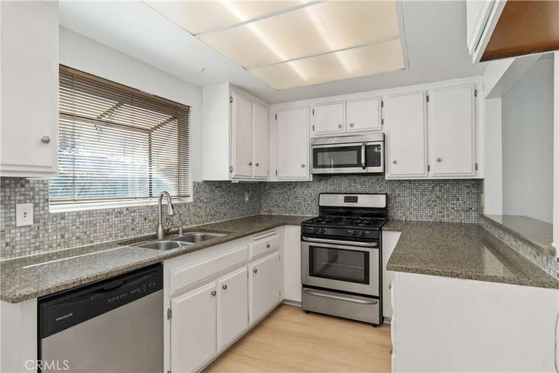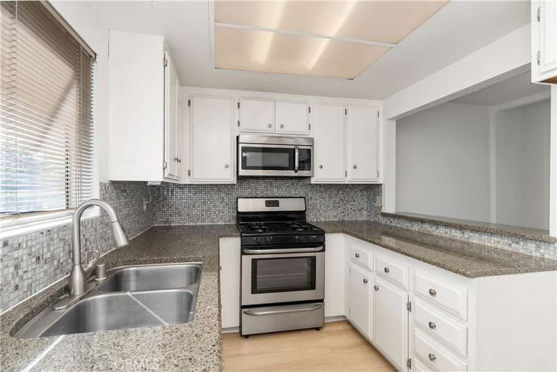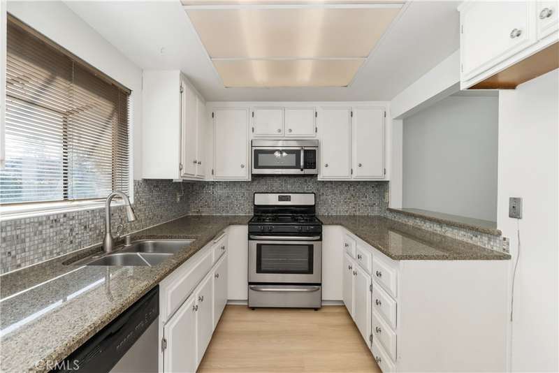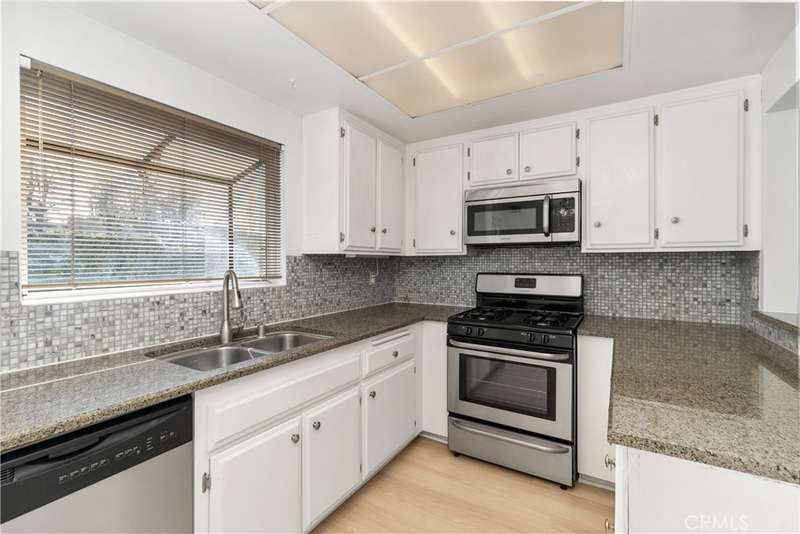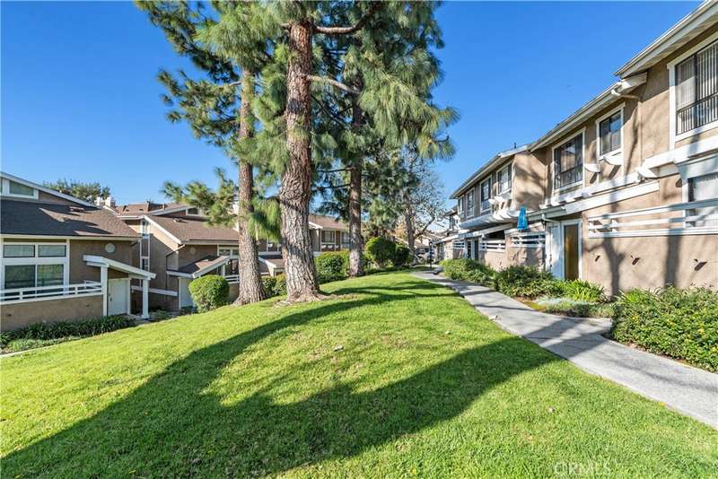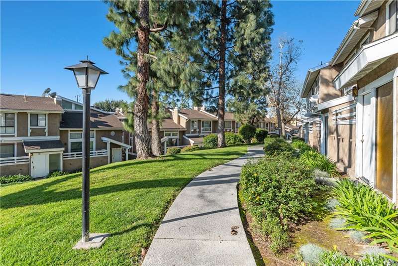 It's true! This is an end unit condo with a large 2 car attached garage and private laundry, located in a quiet interior location and overlooking a beautiful green belt! At almost 900 square feet, this one bedroom home is larger than many two and even three bedroom units. The patio is off the living area and makes for a light and bright space with room for furniture and BBQ. Open the front door to a sea of green and trees. New windows and doors, flooring and interior paint! Just move in!! Major renovations are underway at the neighboring green belt and will be completed shortly. The pool and tennis courts are being remodeled as well. The association has large reserves that will be used to upgrade exterior and complete termite work, making this an even more desirable complex. New and completely remodeled commercial and retail nearby for easy access to dining, shopping and transportation. A great stepping stone if you're starting out with your first purchase, buying down, or investing. This is an amazing and affordable way to get into the bustling SoCal real estate market!