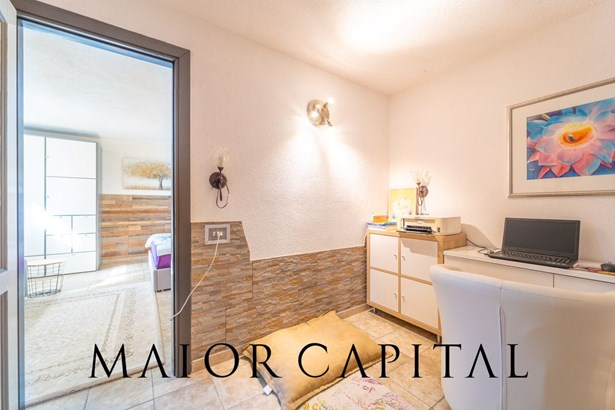 The sleeping area is divided between the main floor and the lower floor, offering greater practicality and functionality. On the main floor, there is a large and bright double bedroom, as well as a bathroom complete with all amenities. On the lower floor, accessible via a convenient internal staircase, there is a second double bedroom, a study and an additional bathroom, ideal for large families or those who need additional space for offices or personal activities.