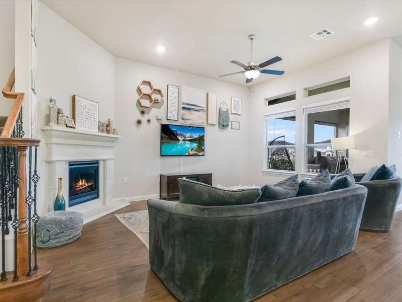 Welcome to Rough Hollow and Canyon Pass! This gorgeous Grand Haven home is ideally located in the highly desirable front section of Rough Hollow. Enjoy the views from your fully screened in patio that backs to green space and your fully fenced yard. Open concept floor-plan with soaring ceilings, trendy lighting, large game-room upstairs + media room with owners retreat down + home office. Sellers are offering a flooring allowance.