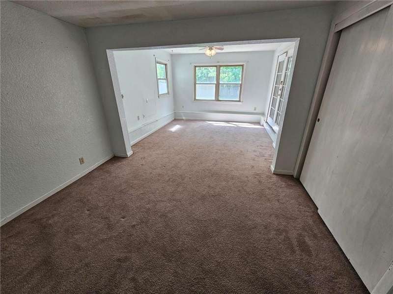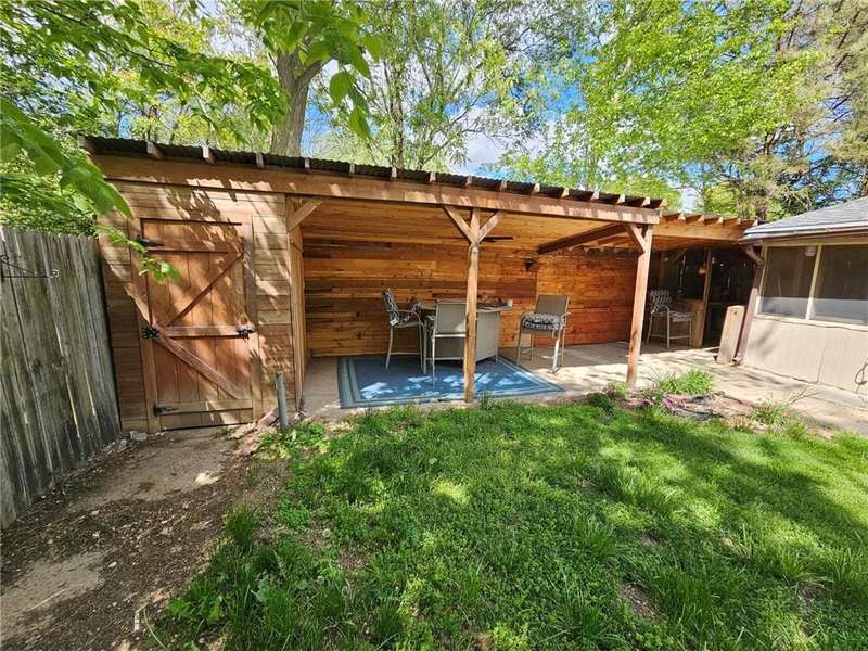 This unique multi-level home sits on a 1.73-acre lot surrounded by mature trees in a quiet neighborhood setting that is outside city limits. Inside, you'll find three main bedrooms, plus one to two additional non-conforming bedrooms in the lower levelperfect for guests, an office, or hobby space, all freshly painted.The kitchen is equipped with a stove, refrigerator and dishwasher.The floor plan is truly one-of-a-kind, featuring two upper-level bedrooms, each with its own staircase, connected by a spacious bathroom in between. The third bedroom offers access through French doors to a charming enclosed porch/patio and a privacy-fenced backyard.Out back, enjoy the covered BBQ area, perfect for your patio furniture.