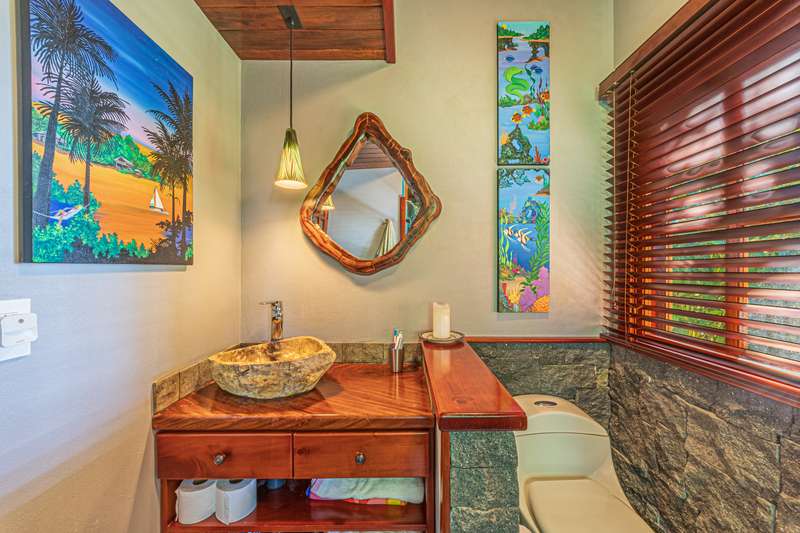 A separate 800-square-foot guest house offers a private one-bedroom suite with its own kitchen, living area, office, and patio with partial ocean views — ideal for guests or income-generating rental use.