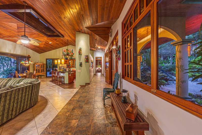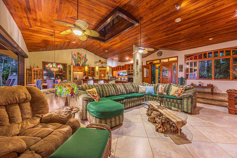 Designed by an award-winning landscape architect, the gardens integrate seamlessly with the rainforest, home to monkeys, sloths, toucans, and coatis. At night, garden lighting transforms the property into a magical retreat, with a seasonal waterfall adding to the sense of serenity.
