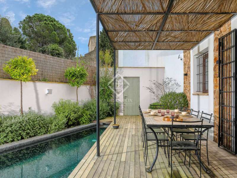 This magnificent house, built in 2021, stands out for its extraordinary location, just a two-minute walk from the centre of Begur. It is designed with exquisite taste, using top-quality materials such as ceramics, wood, metal, and exposed concrete. The property is spread over three floors and features four spacious double bedrooms, one with an ensuite bathroom, two complete bathrooms, a modern designer kitchen, a bright living-dining room with a fireplace , and access to a charming exterior patio with a private pool. It also includes a loft area with a sun terrace, offering panoramic views of the picturesque town of Begur and the majestic Pyrenees. Highlights include handmade ceramic floors, micro-cement walls in the bathrooms, wood-effect PVC windows with double glazing, and a Santos kitchen equipped with high-end appliances from brands such as Neff, Bora, and Liebherr. The house is equipped with air conditioning, an air recirculation system, underfloor heating using aerothermics, solar panels, a water softener, home automation, and a garage with an electric car charger. This property is ideal for those looking to enjoy one of the most charming towns on the Costa Brava, with its vibrant atmosphere and excellent restaurants year-round. Don't hesitate to contact us if you'd like more information about this exclusive property.
