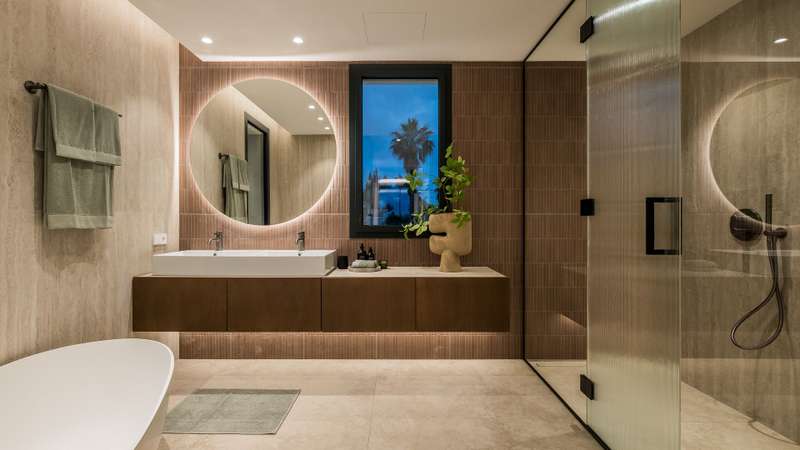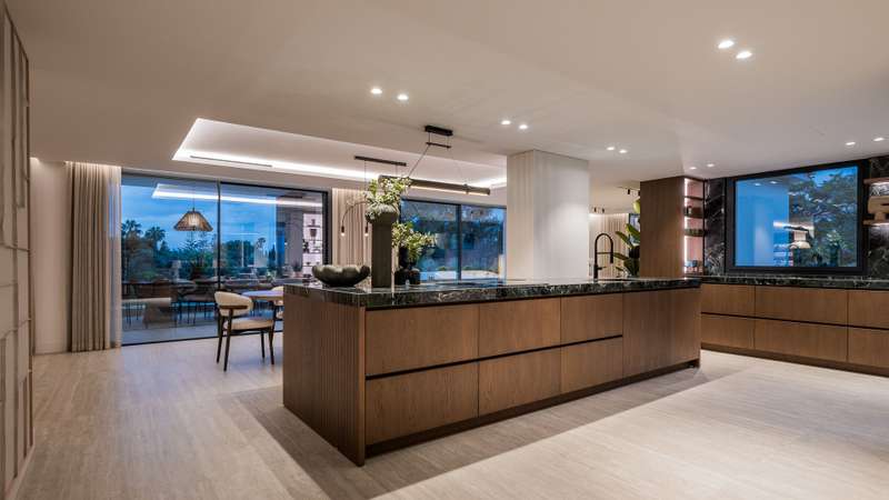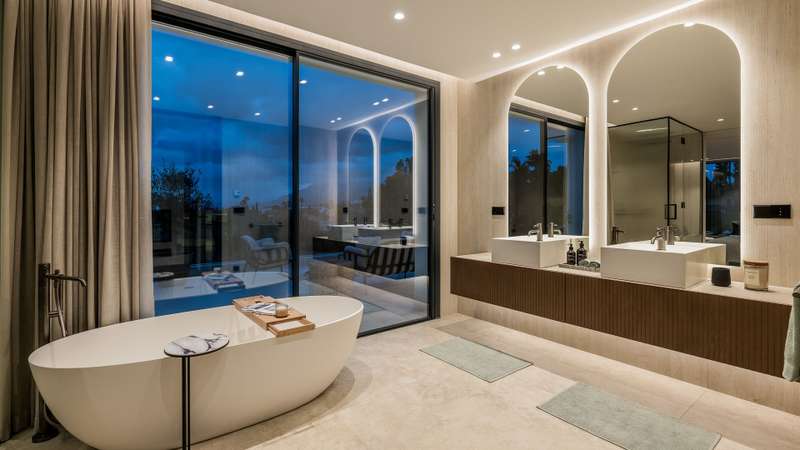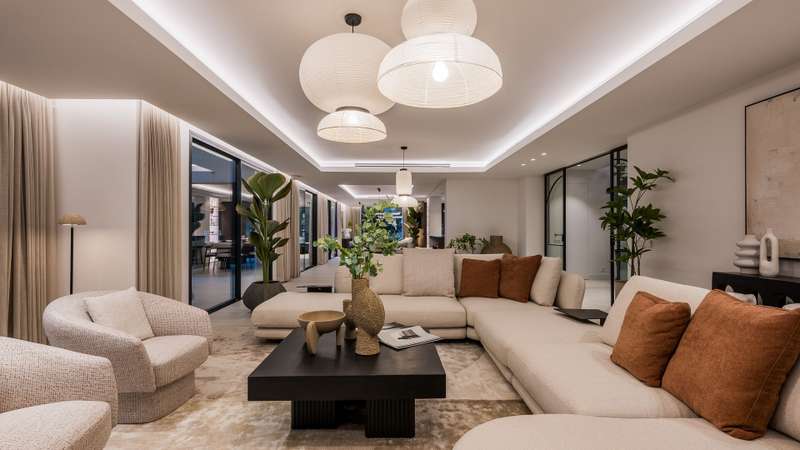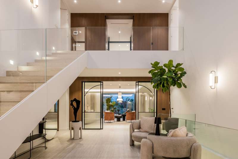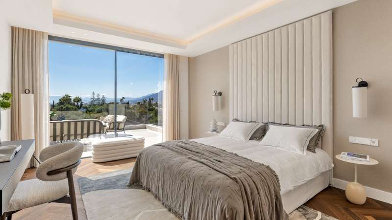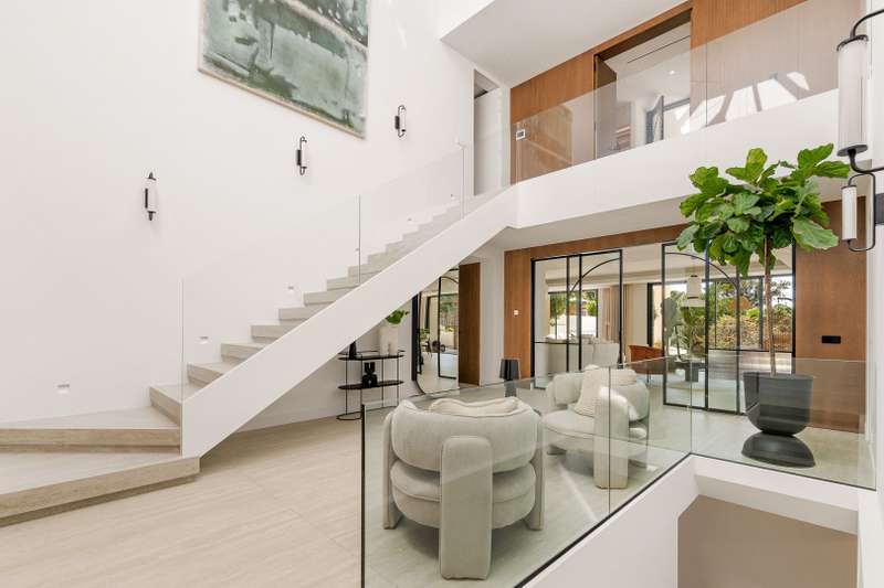 Villa Aire — a beautifully reimagined residence in the heart of El Rosario, where classic Andalusian charm dances with refined modernity. This exceptional home blends the soul of traditional Spanish architecture with the elegance of contemporary design, enhanced by high-end finishes and thoughtful touches throughout. An impressive 8-meter atrium welcomes you with light and volume, leading into an open-concept layout that flows effortlessly across a stylish dining area, designer kitchen, and cosy lounge spaces. Full-height sliding doors open onto a lush, private garden oasis — complete with a heated pool for adults, a separate children’s pool, custom barbecue area, and various alfresco lounges perfect for entertaining or relaxing under the Mediterranean sun. On the main level, you’ll find a tranquil guest suite, a private office for focused work, and a utility room with added convenience. Upstairs, the luxurious master suite offers partial sea views, a spa-inspired bathroom, walk-in