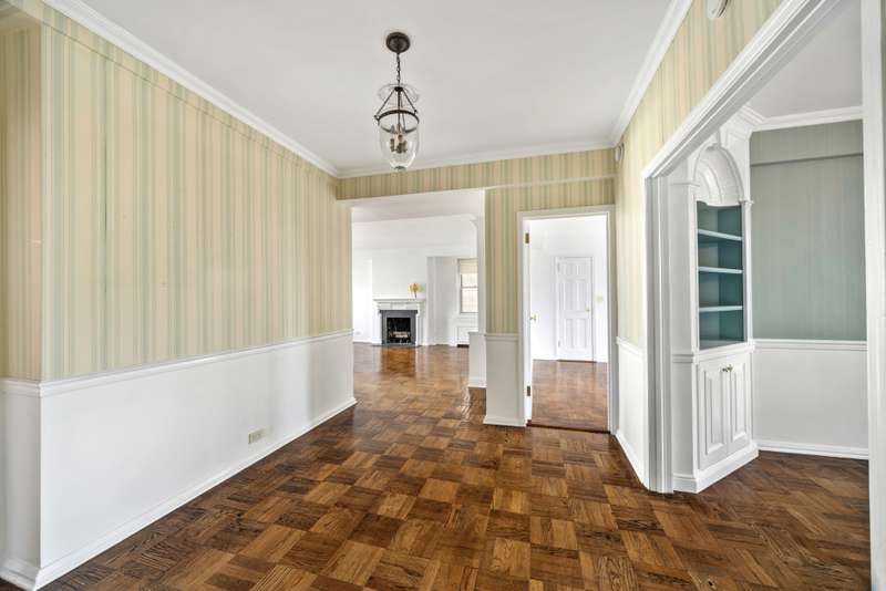 Wood burning fireplace. Terrace. Utilities are included in the maintenance. This oversized, light-filled five room apartment has a classic hub and spoke floorplan with rooms arranged around a large entrance gallery.