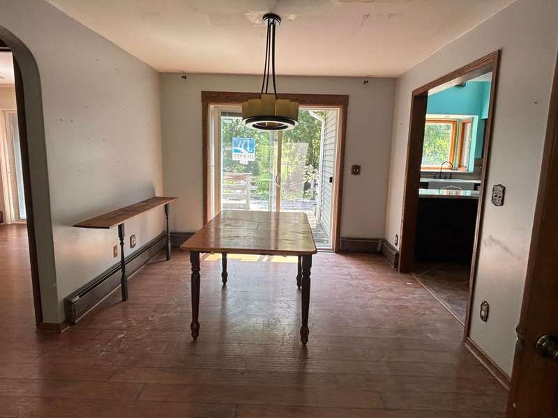 This darling home has been updated and loved throughout the years, including the huge detached garage with loft space and furnace. The fenced in back yard is complete with a large deck, tree house and private bridge over Bean creek to the parks. Inside has a welcoming layout including a large mud room that doubles as laundry, vaulted ceilings in the kitchen for a great vibe, two bedrooms on the main floor with a primary suite upstairs! You even get a soaking tub and private deck up there! This home was undergoing a facelift when tragedy struck in the middle of the night. The third story shower sprung a leak and soaked the house. It's since been dried out but is in needs extensive TLC. Don't miss this great opportunity at some sweat equity in a unique and wonderful home!