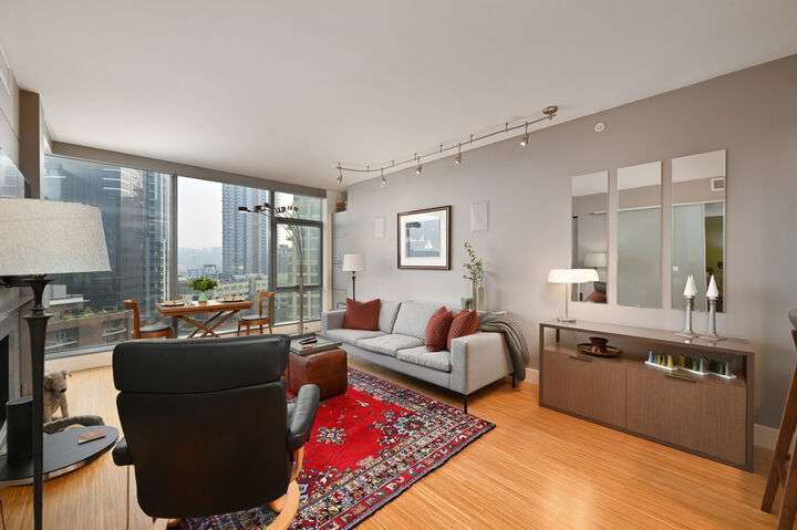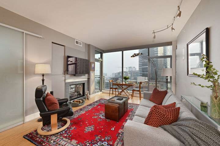 Seaplanes rise in the distance as you sip wine on the balcony. A gathering of friends on the community deck or a quiet dinner at home against the backdrop of city lights & Lake Union sailboats. It’s all possible at Enso Unit 1301, this luxury high rise in the heart of SLU. This coveted 01 corner unit offers a 1-bdrm + den/office layout w a modern kit, spacious bath & thoughtful storage throughout. Includes 1 secure garage pkg, 2 storage units & AC. Enso is a well-managed, luxury high-rise w top-tier amenities; concierge, gym, community deck & lounge, guest suite, EV charging, 2 pet policy, no rental cap & steps to award-winning restaurants, shops, and entertainment—city living at its finest.