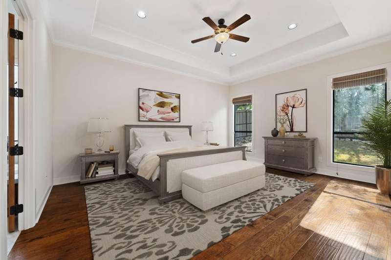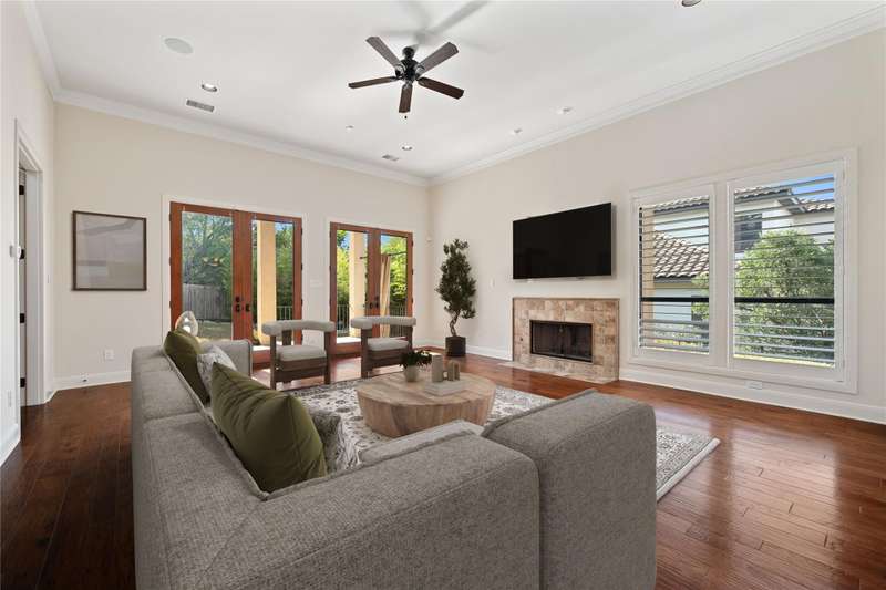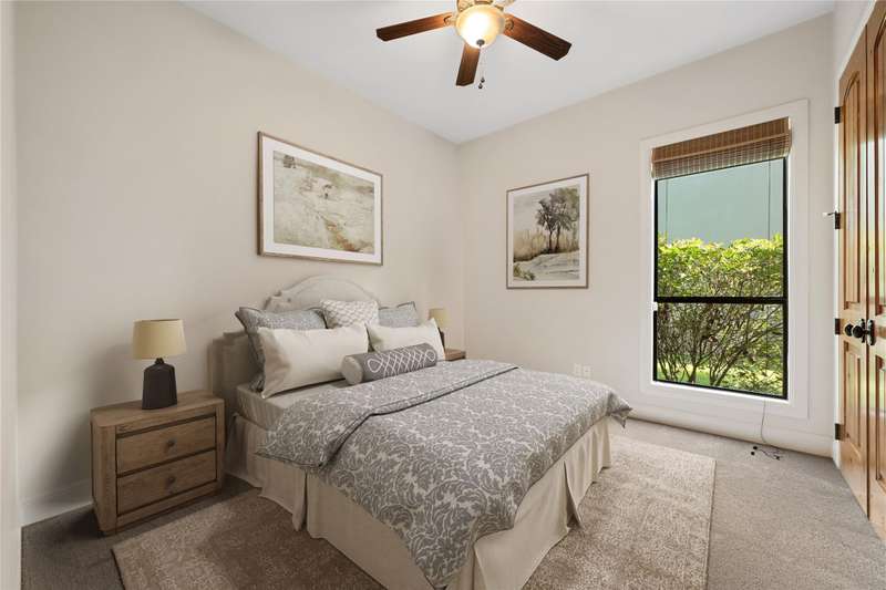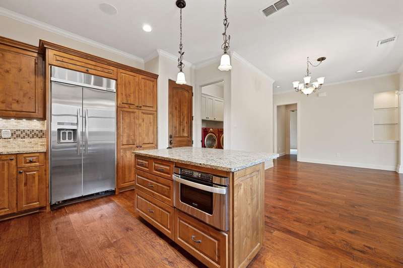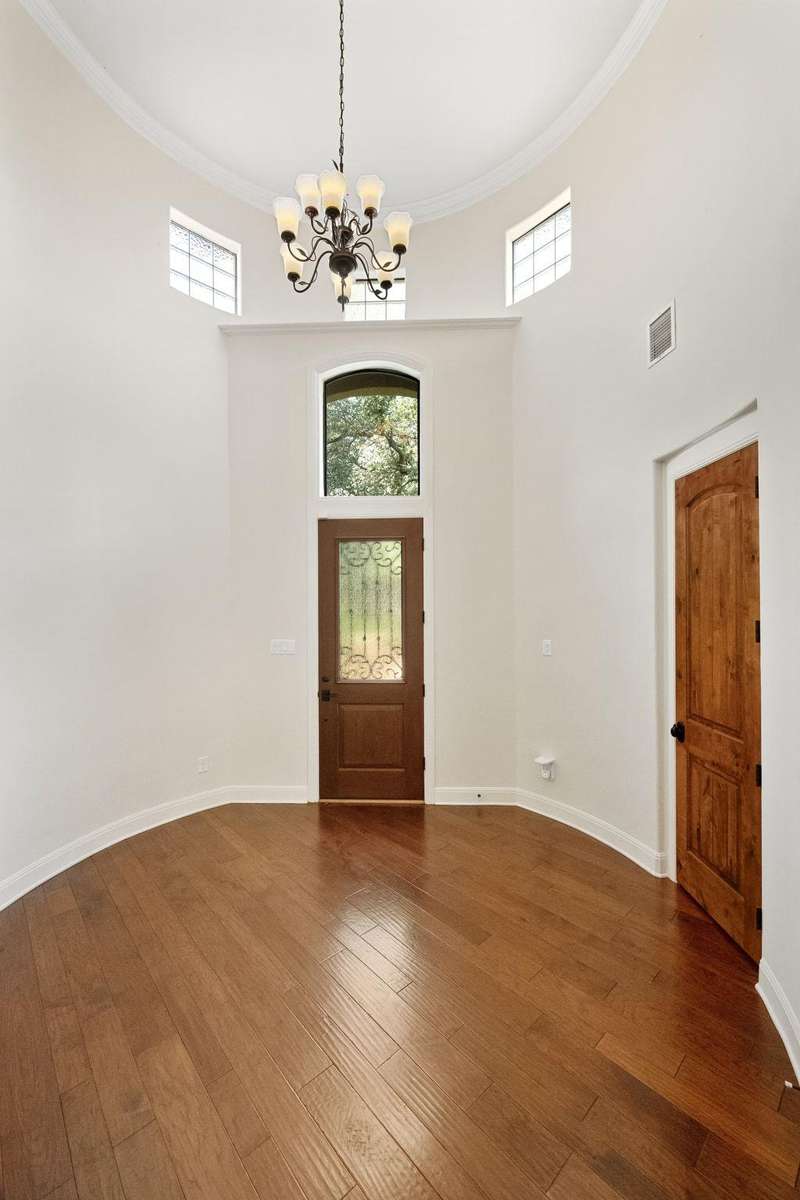Experience the elegance of Spanish-style architecture in this beautifully appointed home in peaceful Cardinal Hills. A gated courtyard entry leads you inside the residence, where you are greeted by a dramatic rotunda foyer with cathedral ceilings, setting the tone for the open-concept floorplan that features 3 bedrooms and 2.5 bathrooms on a single level. Freshly painted interiors showcase warm hardwood floors, abundant natural light from two sets of French doors in the living room, and recently installed neutral-toned carpet in the secondary bedrooms. A cozy fireplace invites you to relax with a view of the lush backyard and covered outdoor living space through ample windows. The chef's kitchen is a true centerpiece, boasting granite countertops, alderwood cabinetry, a high-end Bertazzoni range, a built-in SubZero refrigerator, island storage, and a breakfast bar. The spacious primary suite offers custom alderwood built-ins in the valet entry, accent tray ceilings, an oversized walk-in closet with ample storage, and a spa-like bath with a garden soaking tub, a dual-head walk-in shower, a private water closet, and a double vanity. Additional highlights include an interior laundry room with a conveying cherry-red washer and dryer, an oversized 2-car garage with plentiful storage, a clay tile roof system, a stained concrete driveway, and much more. Conveniently located just minutes from shopping, dining, and entertainment, this home also feeds into highly acclaimed Lake Travis ISD. Seller is an estate, no seller disclosure available. Heirs are motivated, and all offers will be considered Tax and assessed values are estimates for illustration purposes only. All figures should be independently verified. Some images are virtually staged for visualization and may not reflect the actual appearance or condition of the property.