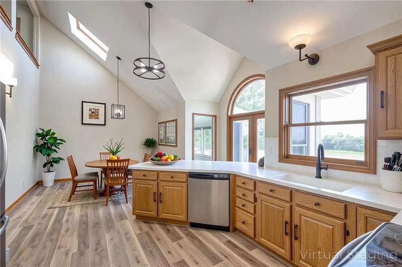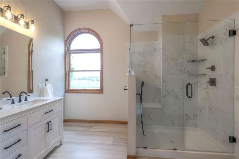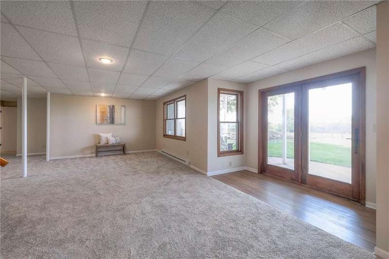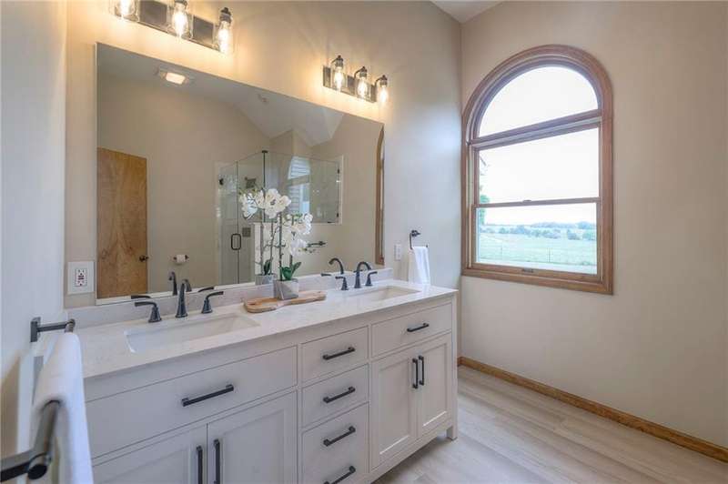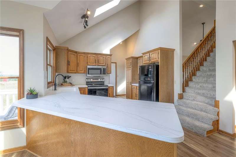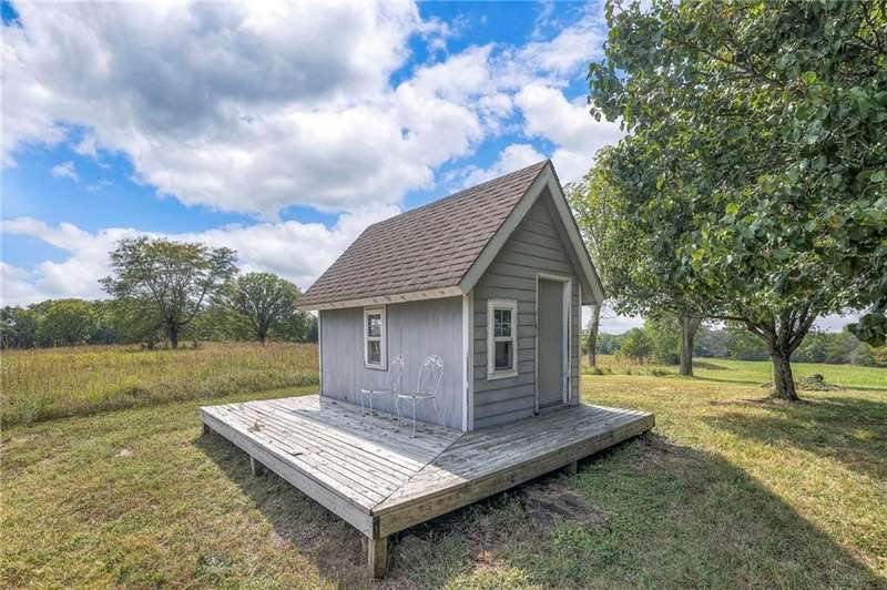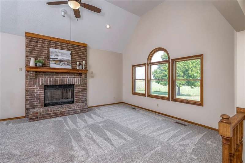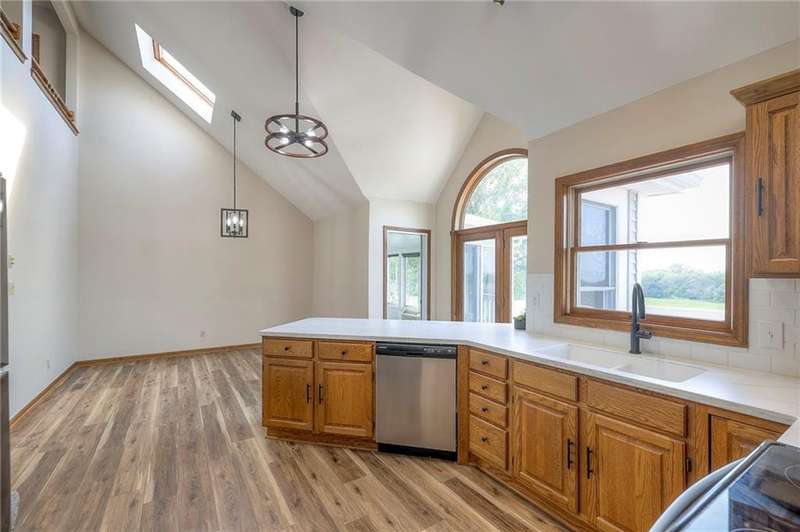 Dreamy and peaceful property situated on 57 acres, located less than 4 miles from Paola schools, shopping, and Miola Lake. A long scenic driveway leads you to this updated 1.5-story home, offering the perfect blend of comfort and country living. Inside, youll find a turn-key residence featuring an updated kitchen with new countertops, stainless steel range and microwave, fresh interior paint, new flooring throughout, and a brand-new roof. The spacious main-level living room boasts vaulted ceilings, a cozy fireplace, and views of the front pond, while a bonus sunroom just off the kitchen provides the ideal spot to enjoy west-facing sunsets. Step outside to the large deck conveniently located off the kitchen perfect for BBQ gatherings with friends and family.The main level also includes a secondary bedroom and the primary suite, complete with an updated en-suite bathroom featuring a large shower and double vanity. The finished walk-out lower level offers additional living space with a bedroom, full bathroom, and large family room that opens to a patio and fenced yard perfect for kids and pets. Outdoor living shines with wide open spaces, a patio, and a sunporch designed to capture year-round sunset views. Come enjoy the views and bring an offer, seller is motivated.For those with horses or cattle, the land offers two picturesque ponds, one nestled in a fully fenced, 20-acre pasture. Outdoorsmen will appreciate the hunting opportunities across the 57 acres, while families will love the peace and privacy. Its a property that blends country living with endless possibilities. Not into farm animals? You can lease out the pasture to another local farmer and still be able to enjoy your peaceful property and those amazing sunset views!