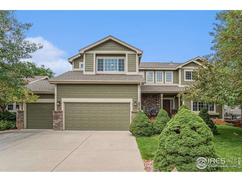 Location, location, location-views, views, views! Backing to the 840-acre Coyote Ridge Natural Area, this one-owner home in sought-after Registry Ridge offers unbeatable access to nature and breathtaking scenery. Panoramic mountain and foothills vistas pour in through numerous west-facing windows, creating a backdrop you'll never tire of. Inside, the heart of the home is a bright, two-story great room with a fireplace and dramatic views. The kitchen features a Corian island, walk-in pantry, and an eat-in nook perfectly positioned to enjoy the scenery. A main-floor office/flex room can also serve as a fifth bedroom. Upstairs, the primary suite is a true retreat with a private west-facing deck, gas fireplace, dual closets, and a jetted tub. Three additional bedrooms (flex could be 5th) complete the second story, one with walk-in closet and one with views of Horsetooth Mountain. The basement offers over 1,500 sq. ft. of storage and future living space, with a finished 3/4 bath already in place. Outdoor living shines here: a full-length Trex deck with gazebo overlooks the fenced yard, complete with raised garden beds, raspberry bushes, and a dog run accessible from the main-floor laundry room. Neighborhood amenities include a pool, tennis/pickleball courts, trails, and two parks. You'll also love the nearby Cathy Fromme Prairie Natural Area and direct access to the Longview Bike Trail connecting Fort Collins and Loveland. This home truly has it all!