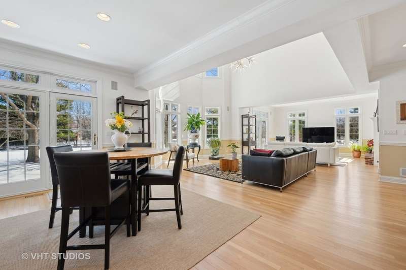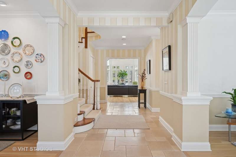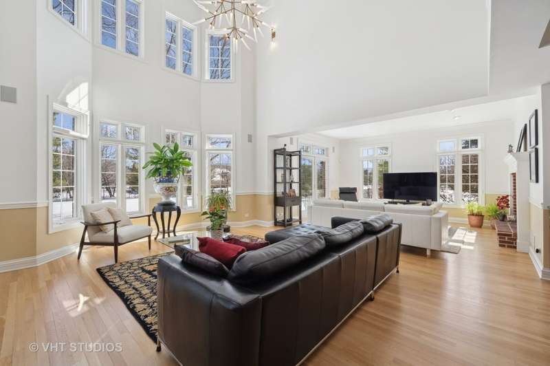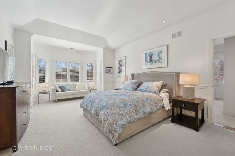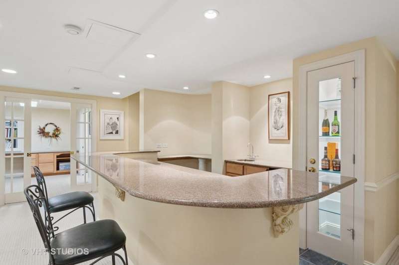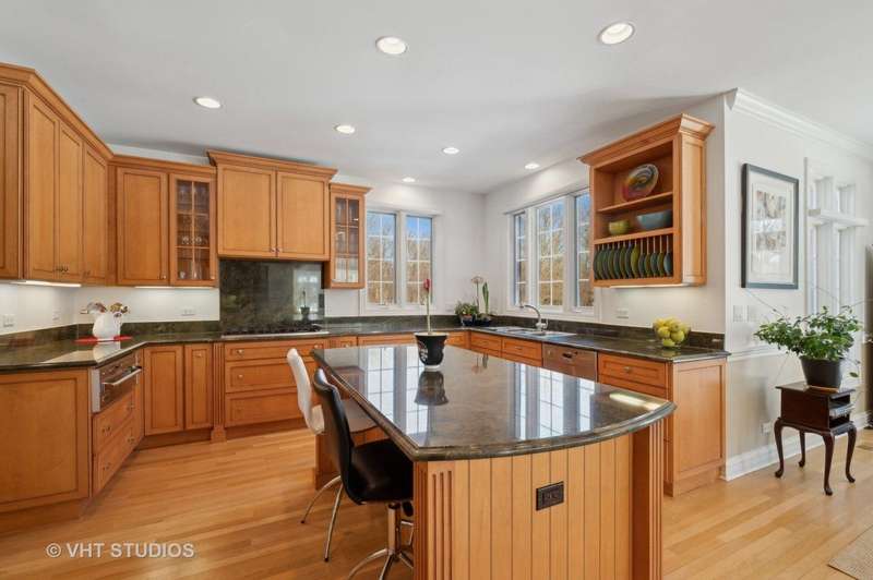 Welcome to 860 Gage Lane, a spacious home offering six bedrooms, six and a half baths, an office, a bar, an exercise room, heated 3.5 car attached garage, and a large yard on 1.4 acres. This bright home is located on a very private and quiet street at the end of a cul-de-sac. As you enter, natural light floods the space through large windows. The first areas you'll notice on the main level are the living room, formal dining room, powder room, and a sunny office with a fireplace and built-ins. The open floor plan features a light-filled, two-story family room with east-facing exposure, connected to the kitchen. The kitchen offers Sub-Zero, Viking, and Gaggenau appliances, an island, a butler's pantry with a Whirlpool wine cooler (2022), wine storage, and a breakfast room. The kitchen overlooks the professionally landscaped yard and patio. A cozy sitting room with a fireplace adjoins the family room and provides access to the large backyard. Past the kitchen, you'll find a spacious laundry room. The private first floor bedroom with an en-suit bathroom and separate access to the patio is perfect for guests or live-in residents who need extra privacy. Upstairs, the primary suite features a sitting area, four closets, and a sun-filled bathroom with separate vanities, a soaking tub, a separate shower, a skylight, and views of the backyard. The second floor also offers three additional bedrooms, two with en-suite bathrooms, and a full hall bathroom. The bedroom adjacent to the primary is ideal as a nursery, seating area, or dressing room. A loft balcony overlooks the family, sitting, and breakfast rooms. The fully finished basement includes another bedroom with ample closet space and a full bathroom. The basement also features a built-out bar with a wine cooler, beverage refrigerator, ice maker, and liquor cabinet. There's a custom office with two desks and filing cabinets, an exercise room, a recreation room with built-ins for TV and media, a play area, and plenty of storage. Additional features include solid hardwood floors (refinished 2022), surround sound speakers throughout (including the patio), ceiling heights ranging from 9 to 20 feet, a new chandelier and sconces in the family room (2022), an underground sprinkler system with a new controller (2023), a new fence with two gates (2022), a new sump pump (2022), hot water heaters (2015), and a Bosch air conditioning unit for the second level (2022). The roof and mechanicals (other than mentioned) are original from 1999. The expansive fenced-in yard offers space for a pool or tennis court. Conveniently located near the Metra and minutes from downtown Lake Forest.