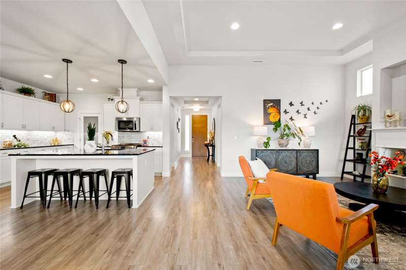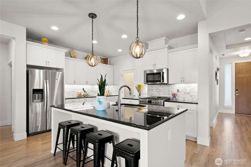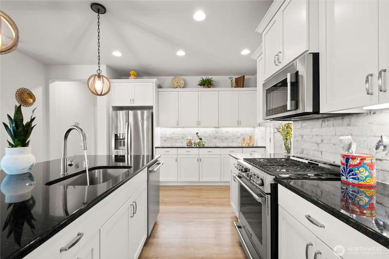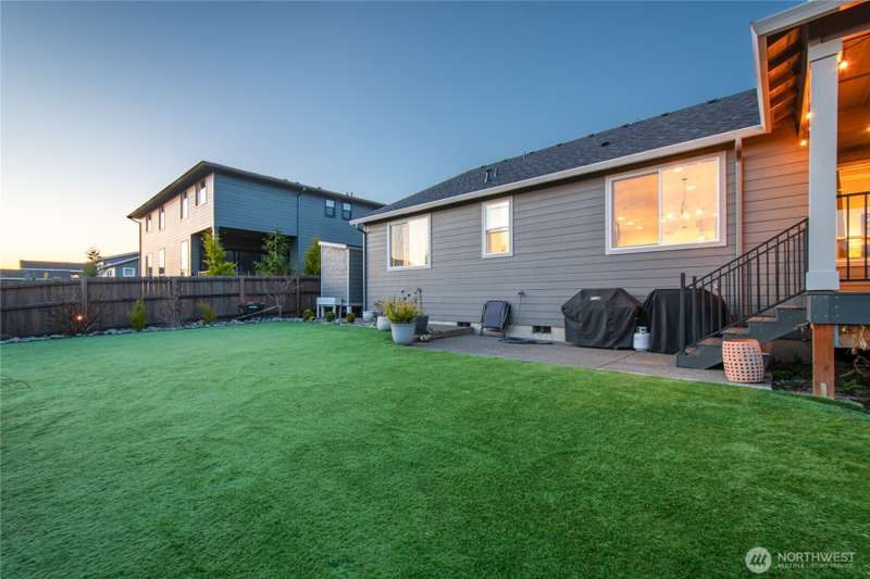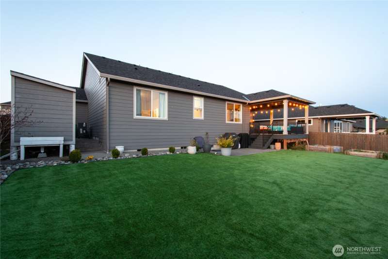 Seller shall contribute towards buyers buy down points. With 3 stunning bedrooms, 2 baths, and 1,819 square feet of refined living space, every detail has been thoughtfully designed for elegance and ease. Custom built-ins, and a gas fireplace that serves as the centerpiece of the open-concept living area. The gourmet kitchen is a chef’s dream—featuring large island, gas stove, eating bar, high-end appliances—all set in a stylish, open layout ideal for entertaining. Enjoy seamless indoor-outdoor living with a covered back deck, complete with deck furniture, overlooking a fully fenced backyard with low-maintenance Astroturf, garden beds, tool shed. 3-car garage, Smart Home. All appliances included. Don't miss the opportunity to make it yours