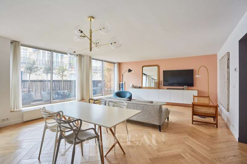 This turnkey apartment on the 5th floor of a luxurious relatively recent building located in the heart of Passy Village has been renovated throughout by a renowned interior decorator, and is as new. Dual-aspect and bathed in sunshine, it offers about 122 sqm of living space including a superb living/reception room opening onto a south-west facing 10 sqm balcony, an equipped kitchen, a dining room, a master suite with a shower room and a dressing room, two further bedrooms enjoying views over gardens, a bathroom and a utility room. The apartment benefits from an excellent floor plan. A cellar and a parking space may be acquired for a further 75000€.