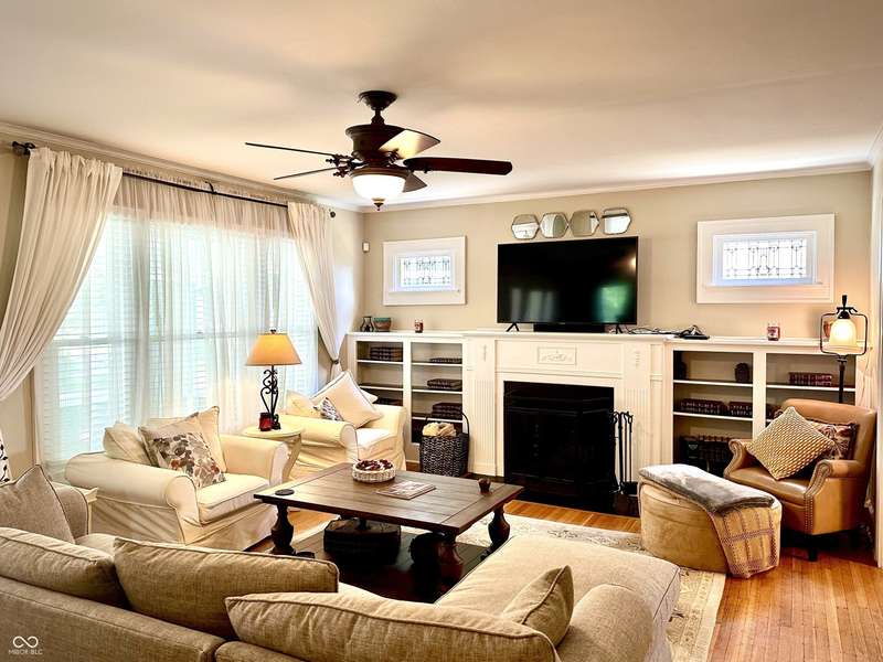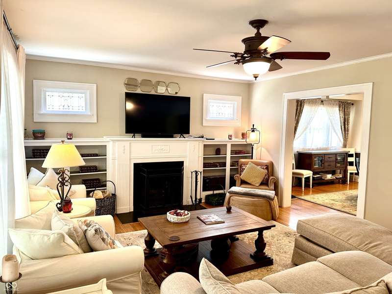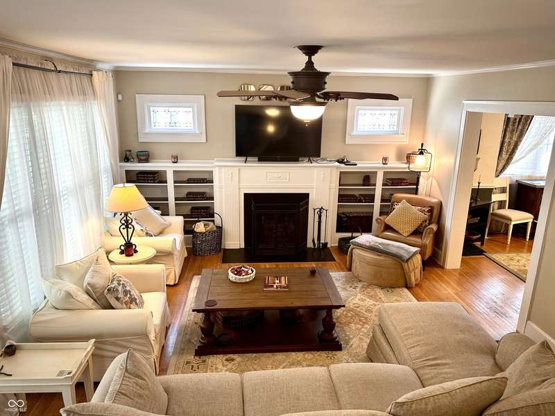 Charming Meridian Kessler home full of character and timeless appeal! This 3BR, 1.5BA gem offers a perfect blend of original detail and thoughtful updates in one of Indy's most sought-after neighborhoods. Step inside to a spacious living room with hardwood floors, a cozy fireplace, and built-in bookshelves. The formal dining room is ideal for entertaining, featuring classic crown molding and rich architectural detail throughout. The kitchen flows nicely into a bright sunroom-perfect for a morning coffee or home office setup. Upstairs, the oversized primary bedroom (21x11) provides generous space and natural light, along with two additional bedrooms and a full bath. The clean, dry basement is freshly painted and ready to be finished for even more living space or storage. Outside, enjoy a fully fenced backyard and a rare two-car detached garage with both a private front driveway and back alley access-a unique and valuable feature in this area. Built in 1914, this home showcases historic charm alongside modern livability. Hardwood floors continue throughout much of the home, and tasteful updates maintain the integrity of the original design. Whether you're relaxing by the fireplace, hosting dinner in the formal dining room, or taking a walk through this vibrant, tree-lined neighborhood, you'll appreciate the comfort, style, and location this home offers. Just minutes from local restaurants, shopping, parks, and everything Midtown has to offer. A must-see in Meridian Kessler!