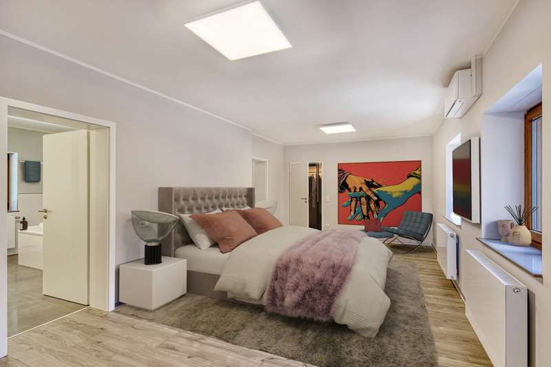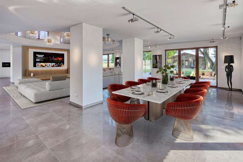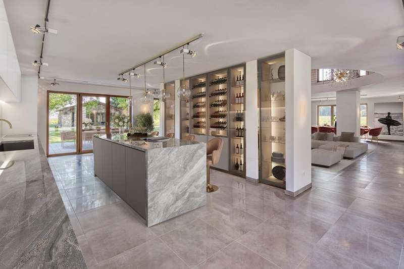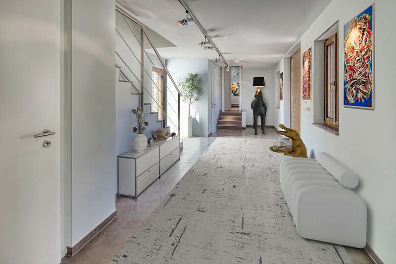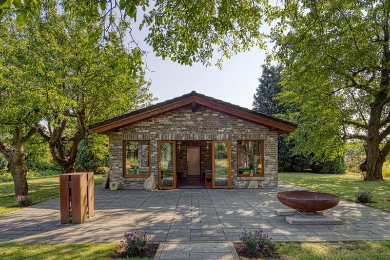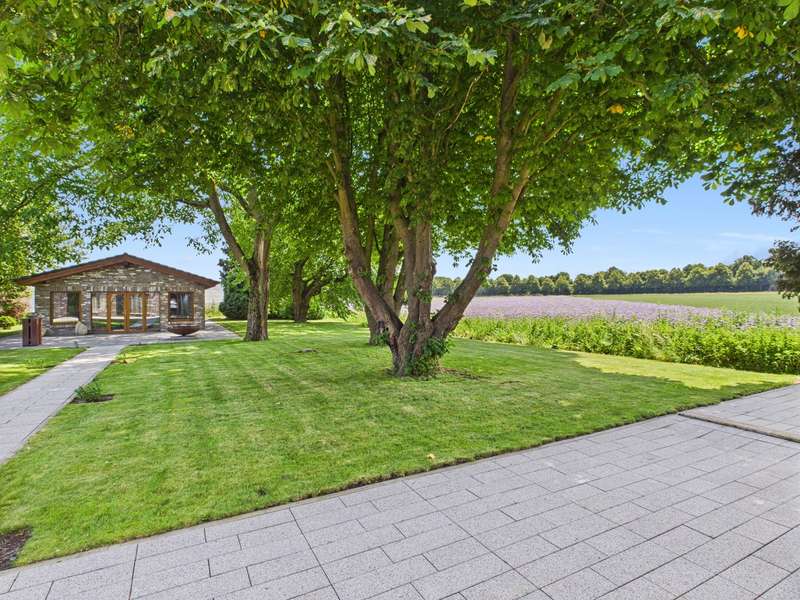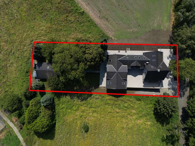 VON POLL IMMOBILIEN presents this luxurious retreat in a secluded location just outside Cologne. Enjoy the sweeping views over fields and meadows. This exclusive property extends over a generous plot of approx. 1,722 m² and offers an impressive living space of approx. 425 m². Originally built in 1936, the main house was extensively renovated and modernized between 2010 and 2024. Thanks to the extensive renovations and extensions, you can expect a unique first-time occupancy after renovation in first-class condition. As soon as you enter the secluded house, you are greeted by an inviting ambience, which is further emphasized by the charming inner courtyard. From the central wing, a four-step staircase leads to the bedroom wing and, at ground level, to the living wing, which enchants with its 24 triple-glazed floor-to-ceiling windows. The luxurious furnishings elegantly combine the charm of a traditional farmhouse with modern accents. The main house comprises a total of eight spacious rooms, including four luxurious bedrooms, all of which are equipped with air conditioning and stylishly designed bathrooms. The upper middle wing is divided into a small coffee kitchen, which adjoins the bright balcony room - ideal for relaxing mornings with a view of the greenery. The lower middle wing houses the entrance area as well as both guest toilets and access to the living area. Practical storage rooms for the cleaning staff offer additional convenience. The living wing with its impressive, open gallery, which is harmoniously integrated into the kitchen, living room and dining room areas, immediately fascinates every visitor. The light-flooded gallery in the upper living area, accessible via a separate staircase in the middle wing, offers an ideal opportunity to be used as a stylish office or an exclusive library in the future. The spacious garden with approx. 600 m² of lawn and a terrace of approx. 180 m² invites you to relax, linger and enjoy the peaceful atmosphere. Another highlight of this property is the separate guest house with two rooms and a usable living area of approx. 63 m². Built in 2010, it offers the highest level of living comfort, including energy-efficient underfloor heating with a heat pump, triple-glazed windows and a high-quality Nolte fitted kitchen. A spacious terrace of approx. 111 m² and a stylishly designed bathroom round off the guest house and create an exclusive retreat for your guests. This unique property is an oasis of peace and elegance - a harmonious retreat for people who are looking for something special. The combination of luxury, old farmhouse charm and an exceptional location makes this property an extraordinary offer. Thanks to the excellent connections to Cologne, Bonn and Düsseldorf, the property is perfect for a family that appreciates privacy, nature and yet ideal accessibility. Experience this impressive property during a personal viewing and be enchanted by its incomparable charm. Make an appointment today and discover your new home.