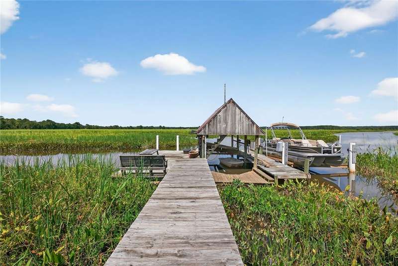 Step into a storybook retreat and your own private oasis!This charming 2-bedroom, 1-bath waterfront cabin sits on 7.9 serene acres and offers the perfect blend of rustic charm and modern comfort. Inside, you'll find a cozy fireplace and a luxurious shower with built-in sauna for ultimate relaxation.Enjoy your mornings by the private pond, which naturally refreshes with river water twice a day, or spend time in the greenhouse cultivating your garden. The property also features a 3-car detached garage, barn, and deep water access with two boat lift perfect for boating enthusiasts.Whether you're seeking a peaceful weekend escape or a full-time residence surrounded by nature, this property delivers the privacy, beauty, and lifestyle you've been dreaming of.