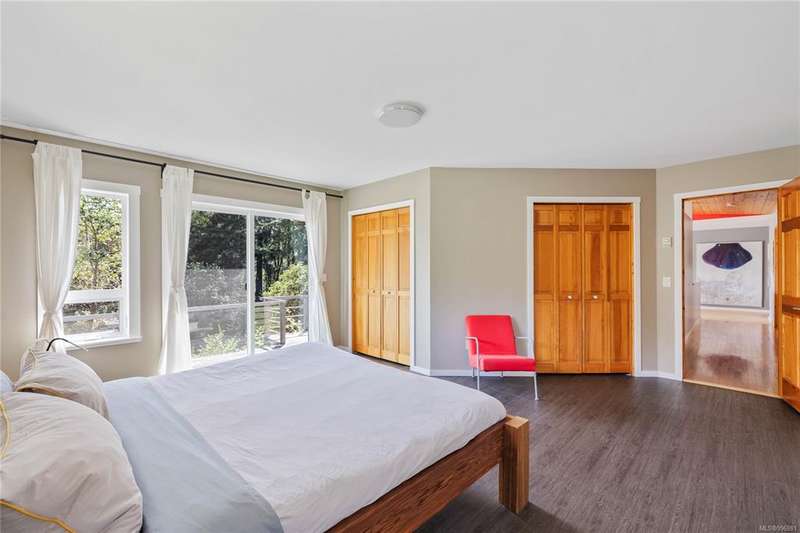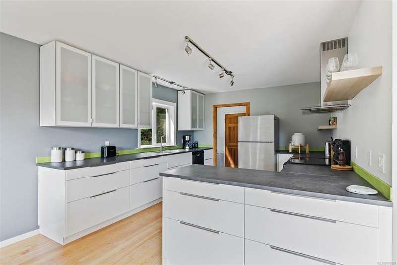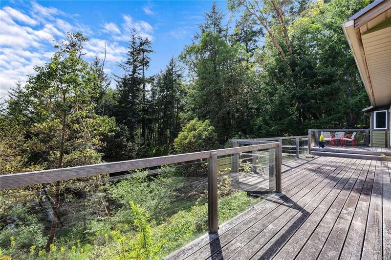 Discover the perfect blend of privacy, style, and natural beauty in this stunning west coast home, set on over five peaceful, south-facing acres at the end of a quiet lane. Thoughtfully updated and artfully integrated into its surroundings, this one-level residence offers modern comfort with a relaxed, coastal vibe. Inside, vaulted pine ceilings and expansive windows flood the home with light, enhancing its warm, airy feel. The sleek, contemporary kitchen features generous cabinetry and clean lines, ideal for everyday living and effortless entertaining. Step outside to an expansive, sun-drenched deck designed for outdoor living, surrounded by lush, natural landscape. A detached double garage includes a versatile studio/flex space—perfect for a home office or inspiring art studio. Located just five minutes from Ganges, this centrally situated property is a rare opportunity to embrace Salt Spring Island’s contemporary lifestyle in a setting of pure tranquility.