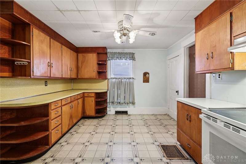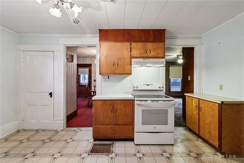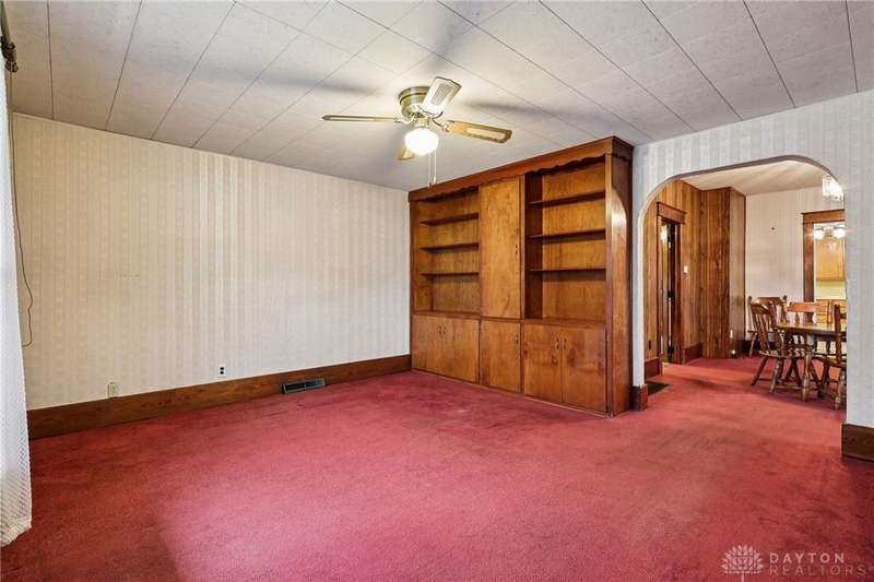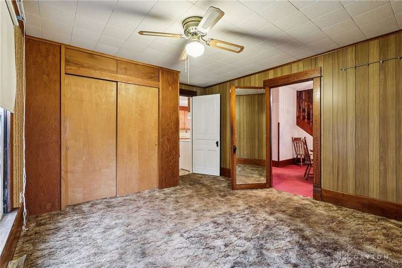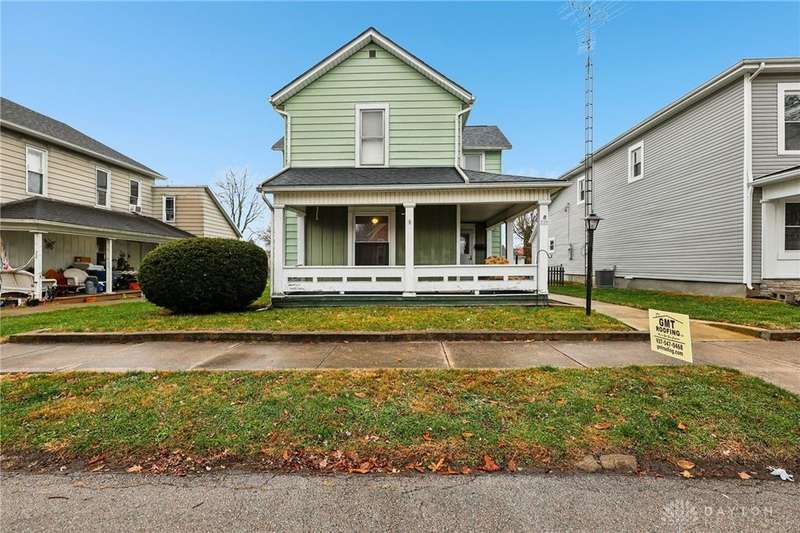 Some homes carry an old soul. Soft echoes of past decades, the warmth of the woodwork & the way the light falls. This 4 bed/1 bath home has that comforting energy that makes you want to stay awhile. There are thoughtful updates where it counts, including a BRAND NEW ROOF, vinyl replacement windows on the main level, while leaving plenty of room to personalize, reimagine, and build equity.From the moment you step onto the deep wraparound porch, you can feel it. Inside, the layout unfolds with that classic flow: a large front living room w/ tall windows, an arched doorway that gives you a little swoon moment, & a formal dining room anchored by the home's original staircase?a character piece all on its own. Imagine holiday dinners, long conversations, & everyday footsteps drifting up the steps. And yes? hardwood floors are waiting under the carpet to shine again. The kitchen is surprisingly generous?truly the heart of the home?w/ plenty of cabinetry, space to redesign to your taste, & a bonus rear-entry laundry/mudroom. It's the perfect drop-zone for muddy boots, grocery hauls, pet routines, or a future pantry wall. One of the unexpected perks? A full bathroom on the first floor, tucked right where you need it, next to a main-floor bedroom! Whether you're looking for single-level living, a guest suite, or a future office, this setup gives you options. Upstairs, three more bright bedrooms stretch out w/ natural light & classic trims. Out back, the fenced yard is perfect for pets/play, & the detached 1-car garage offers storage or workshop potential. The partial unfinished basement is straightforward & functional?ideal for tools, totes, or tinkering. Room to personalize, reimagine, & build equity. Whether you're dreaming of a renovation, a slow-and-steady refresh, or simply a place w/ character that you can make your own, this home is ready for its next keeper!