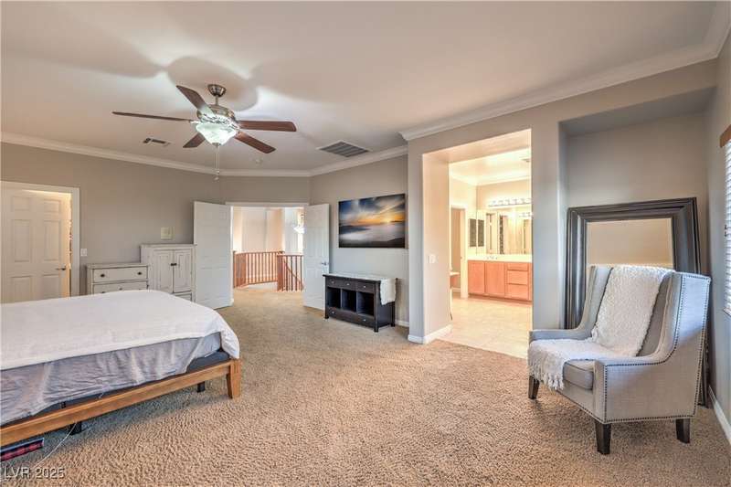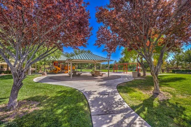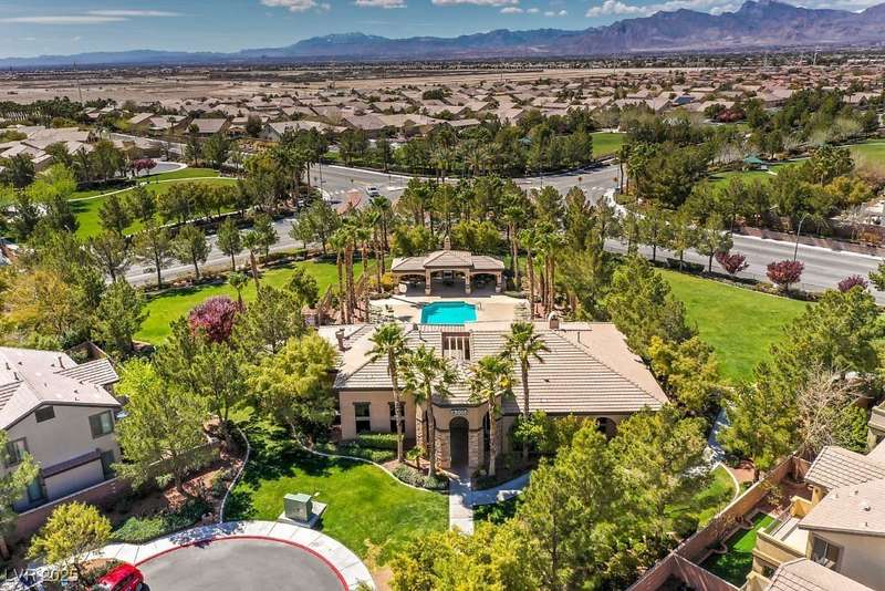 $60K IN PAID OFF SOLAR**STUNNING, IMMACULATE 6 BR 4.5 BATH W/ POOL & SPA ON A CUL-DE-SAC CORNER LOT BACKING LUSH GREEN PARK IN DESIRABLE WATERFALL COMMUNITY NEAR ALIANTE & VALLEY VISTA!! Only 1 neighbor offering complete privacy, HUGE Loft, Spiral Staircase, 9 FT Ceilings up & down, 3 Way Fireplace, LARGE Secondary BR's w/ WI Closets, Jack-n-Jill Bath Up, HUGE Laundry Up w/ Cabinets & Countertop, Exterior Jellyfish Holiday Lighting, 3 Car Garage, Separate Family Room & Living/Dining Room. KITCHEN: Mission Style Maple Cabinets, Granite Countertops w/ Bullnose Edge, Lg WI Pantry, Island & Open to Family Rm. PRIMARY SUITE: Double Doors, 2 W/I Closets, Separate Shower & Tub, Double Sinks, Separate Commode. YARD: Gorgeous Pool & Spa w/ Waterfall, Coy Pond w/Waterfall, Full Covered Patio, Mature Landscaping & BBQ Stub Out. COMMUNITY: Gated, Pool, Spa, Clubhouse, Exercise Room, 4 Parks include: Playgrounds, Splash Pad & Rock Wall. Close to Nellis & Creech AFB, 215, Shopping & Great Schools!