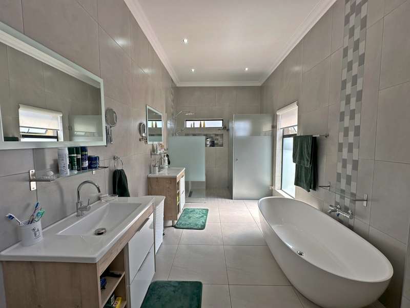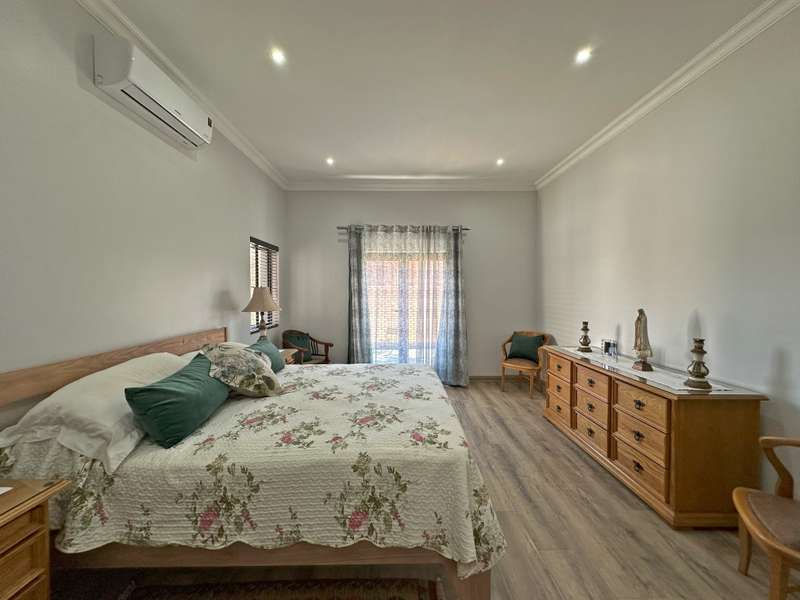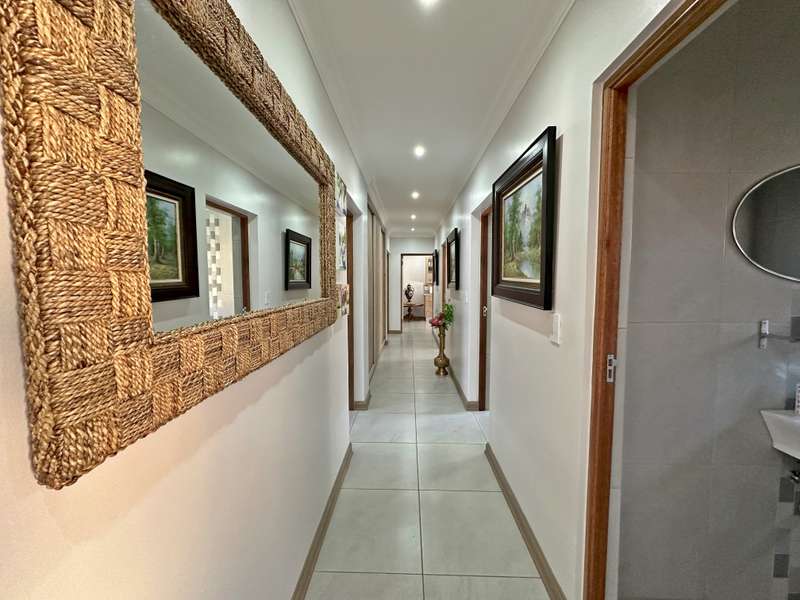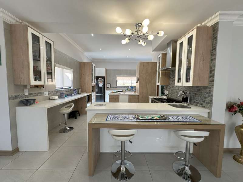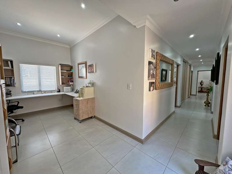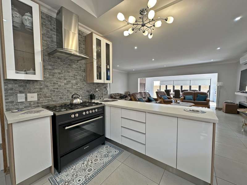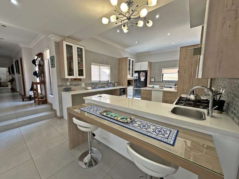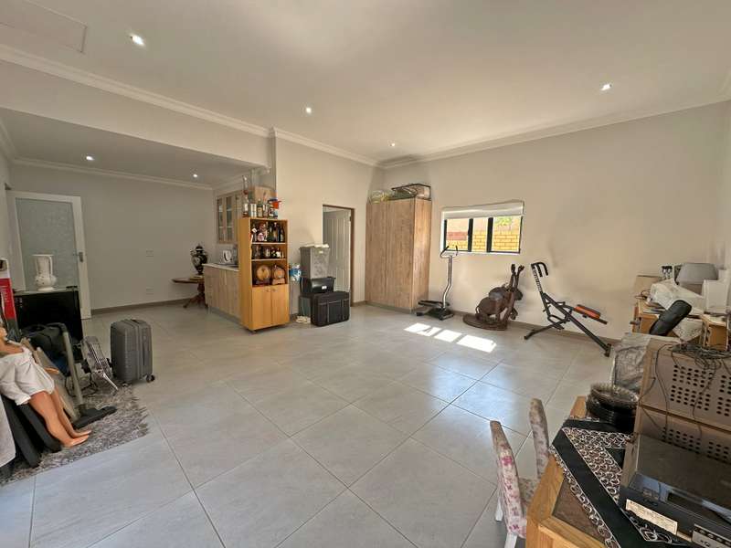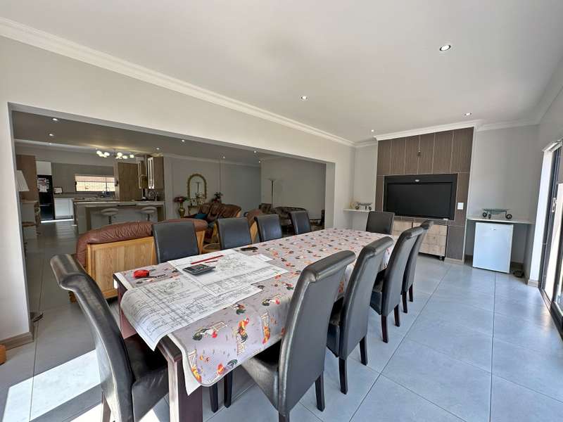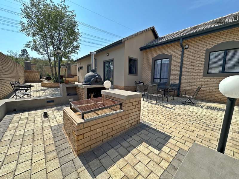 Welcome to this magnificent home nestled within the prestigious Rietvlei Heights Country Estate, where luxury and comfort blend seamlessly. Immaculately maintained and boasting top-tier modern finishes, this residence offers an unparalleled lifestyle. Grand Entrance & Parking: As you approach, you’re greeted by an expansive driveway, perfect for guest parking, with a convenient side gate that can accommodate extra vehicles or trailers. The home also features two double garages, providing ample space for up to four cars. Ground Floor Elegance: Step inside to discover open-plan living areas, filled with natural light and designed for effortless entertaining. The spacious lounge flows into a chic enclosed braai area, where stacking doors invite you to enjoy the private backyard. The heart of the home is the chef’s kitchen, featuring two elegant islands—one with a breakfast nook and the other offering additional prep space. A gas hob with an electric oven, and a generous walk-in pantry, complete this dream kitchen. The adjacent scullery, discreetly tucked away, accommodates up to four appliances, ensuring convenience without compromise. Outdoor living is a breeze with ample space for alfresco dining, complete with a charming pizza oven, perfect for hosting family and friends. Down the hall, study nook, linen cupboards, two family bedrooms share a stylish bathroom, while the opulent main bedroom offers a tranquil retreat with direct access to the backyard, a walk-in closet with a center island, and an en-suite bathroom for the ultimate in relaxation. Private Flatlet & Upper-Level Entertainment: An additional flatlet on the ground floor offers privacy and versatility with a kitchenette, cozy lounge, en-suite bathroom, and access to its own outdoor patio—ideal for guests or extended family. Venture to the upper level via the back stairway, where a vast entertainment area or potential second flatlet awaits. This space, equipped with a kitchenette, braai area, and en-suite bathroom, can be transformed into a guest suite or a lively entertainment hub, allowing for endless possibilities. The property also includes an outdoor storage room and a conveniently located exterior toilet. This residence epitomizes modern luxury in a secure and serene environment, where every detail has been thoughtfully designed for both elegance and practicality.