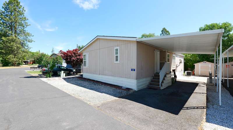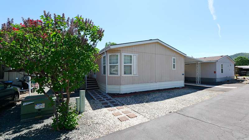 Well-maintained 3-bedroom, 2-bathroom home in a desirable 55+ community! This 1,296-sq ft home features a spacious split open floor plan, perfect for comfortable living and entertaining. Enjoy relaxing on the covered front porch or tending to your garden area. The home includes a utility shed for extra storage and is clean, bright, and move-in ready. Conveniently and close to all city services including market, post office, and restaurants, you'll love the ease of living here. Affordable space rent makes this a great opportunity to enjoy a peaceful, friendly neighborhood without breaking the bank. Don't miss your chance to own this charming home in a great location!