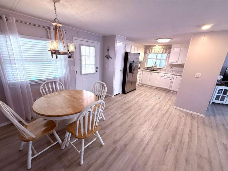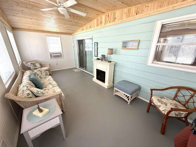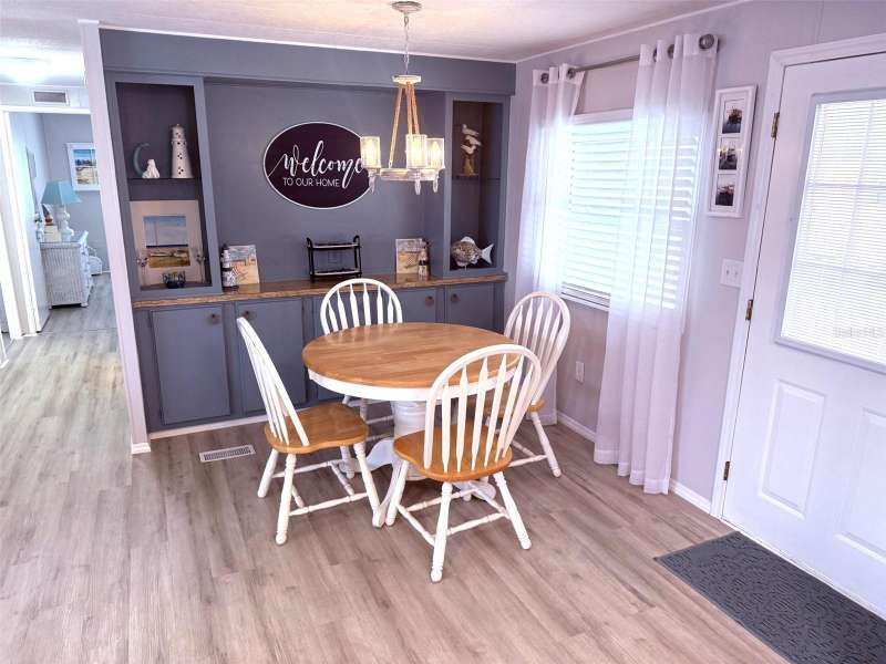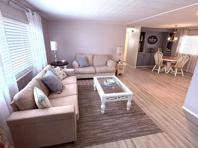 Welcome to this cozy, immaculately maintained 2-bedroom, 2-bathroom manufactured home located in the highly sought-after, pet-friendly, land-owned community of Harbor Isles. This beachy retreat comes fully furnished with coastal turnkey décor and is move-in ready from day one. Step inside to find luxury vinyl flooring over brand-new subfloors, fresh interior paint, and stylish new lighting throughout. The bright and cheerful kitchen is a delight, featuring new laminate countertops, stainless steel appliances, a huge new kitchen sink, and plenty of space to whip up your favorite meals. Relax in the brand-new double-insulated Florida room, adorned with charming pine bead board ceilings that add a breezy, coastal flair. Both bathrooms have been beautifully updated, while modern upgrades continue throughout the home with updated windows, a metal roof (with new carport roof added in 2017), a 2020 A/C system with all new ductwork, a 2022 hot water heater, and a 2022 electrical panel. Nestled in the welcoming waterfront community of Harbor Isles, residents enjoy a vibrant lifestyle with a full calendar of social activities, a heated pool and spa, clubhouse, fitness center, tennis and pickleball courts, shuffleboard, bocce, horseshoes, and a marina with boat slips and a kayak launch leading to the Myakka River and Gulf of Mexico. Whether you're looking for a full-time residence or a winter getaway, this charming home offers everything you need to live the Florida dream. Call today to schedule your private tour!