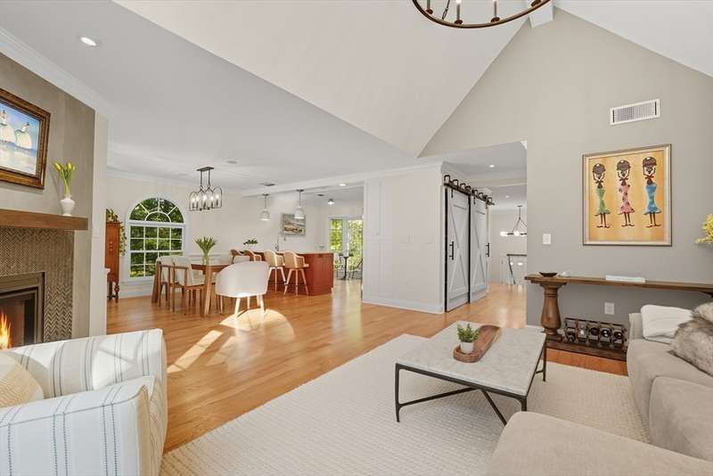 End-unit perfection at Windpath, offering the perfect blend of convenience, comfort, and luxury. Bordering the Springfield Country Club Golf Course, this light-filled 2BR, 2.5BA condo offers golf course views and elevated, open-concept living. Thoughtful & tasteful updates include custom barn doors, curated lighting, decorative tile, and a refreshed gas fireplace with a modern mantle. A chef s kitchen anchors the main level with stainless appliances and a stylish peninsula for casual gatherings. Soaring ceilings, hardwood floors and an abundance of natural light define the space. New sliders, fresh paint, and refinished floors make it move-in ready. Roof replaced in 2024; assessment to be paid by seller. Just minutes to local dining, shops, and nature trails enjoy the lifestyle with zero compromise.