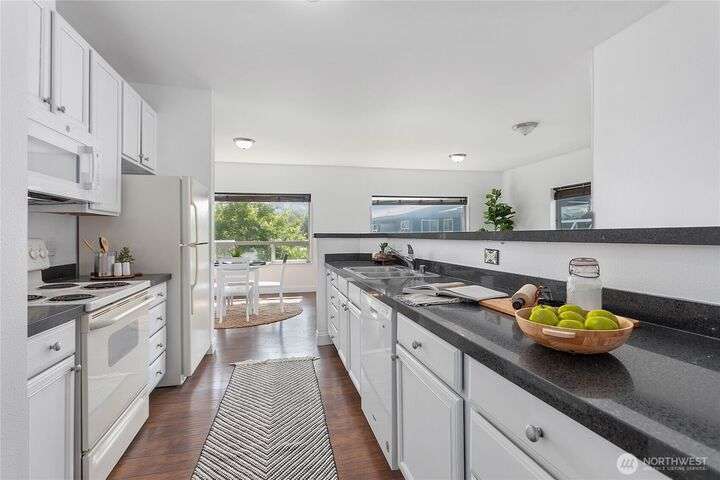 Imagine waking up in your bright, top-floor corner condo with courtyard views and sunshine streaming in. Freshly painted and thoughtfully laid out, this home makes space for the way you live. The spacious primary bedroom has fresh new carpet, bedroom 2 lives like a primary with its own ensuite, and bedroom 3 could be a perfect office, studio, or guest room. Step outside to enjoy nearby Cordata Park, trails, dining, shopping, and quick I-5 access. Everyday essentials like Costco, Trader Joe’s, WCC, and Bellis Fair are just minutes away. With HOA covering exterior maintenance, water, sewer, garbage, earthquake insurance, and snow removal, this home offers the perfect blend of low-maintenance living and Bellingham convenience.
