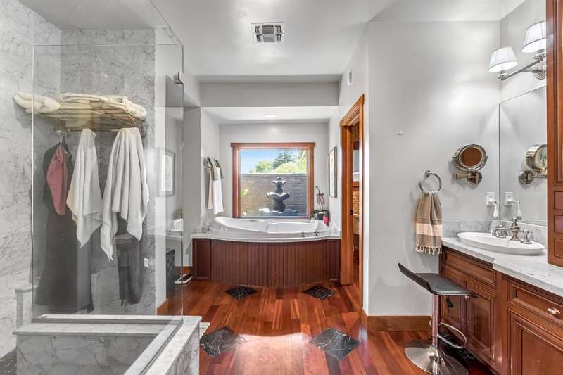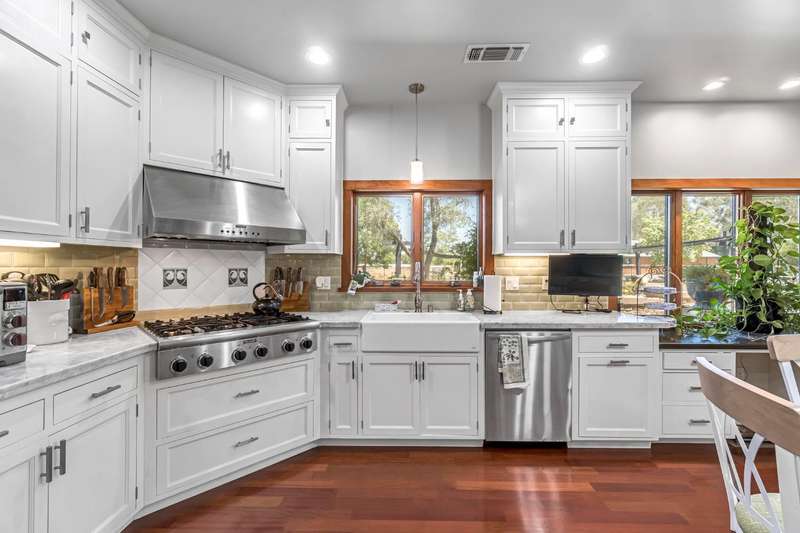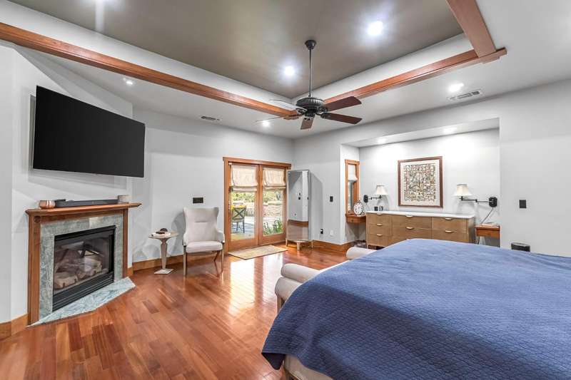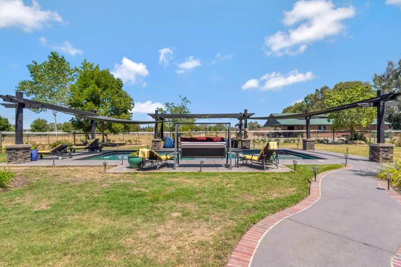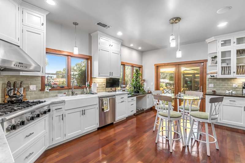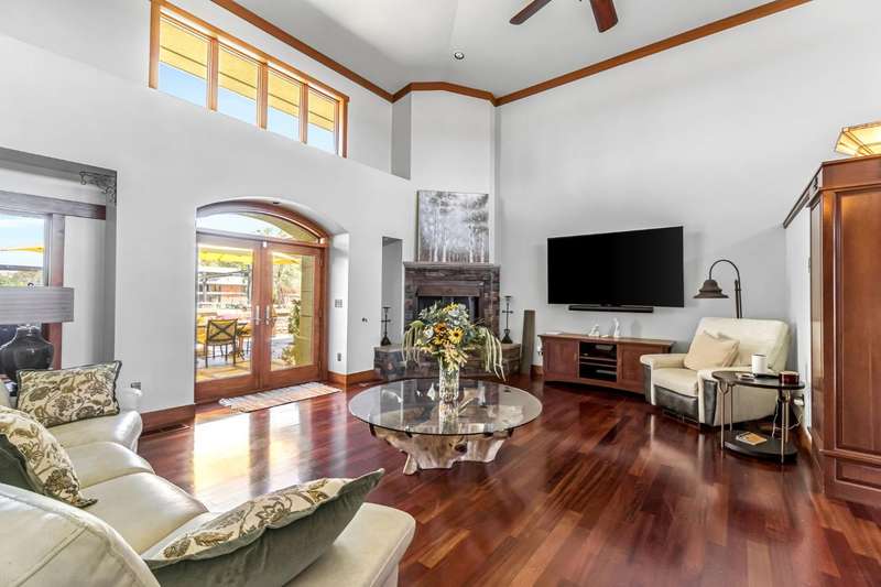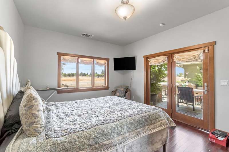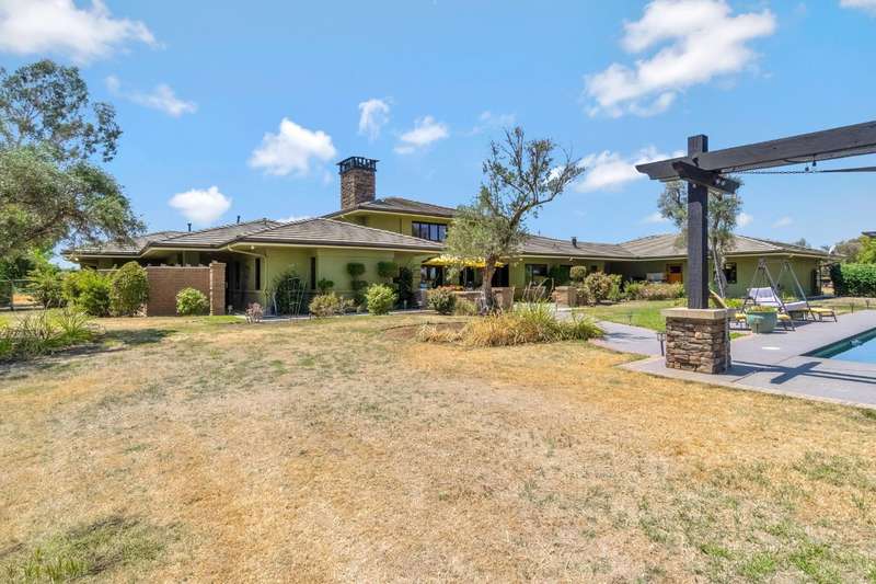 Equestrian paradise in Sierra View Ranchos! This custom craftsman home sits on 4.24 acres with a spacious equestrian facility featuring four climate-controlled horse stalls complete with fans for optimal comfort, a well-appointed tack room/office, and expansive grazing areas perfect for horses to roam freely. Luxurious interior features Brazilian cherry hardwood floors, high-end Thermador appliances, and a grand great room with soaring ceilings, stone fireplace, and plenty of natural light. Primary suite boasts a fireplace, luxurious walk-in closet, and ensuite with soaker tub, double sinks, and walk-in shower. Recent updates include solar power (2025), fresh exterior and interior paint, and a reliable water supply with three wells and two 2500-gallon holding tanks. Enjoy outdoor living on the sprawling patio, mature landscaping, and oversized in-ground pool that's been recently drained, scrubbed, and refilled with fresh water, ensuring a clean and safe swimming experience. Additional features include a library/den with built-in bookshelves, formal dining room, spacious bedrooms, and plenty of storage throughout. A true gem for horse enthusiasts and those seeking luxury and freedom, this estate offers the perfect blend of equestrian lifestyle and luxurious living, with endless possibilities for outdoor recreation and entertainment! Don't miss the VIRTUAL MEDIA that showcases the property WALK-THROUGH/*Ask your realtor about the 55' X 70' metal shop*Not included in sale price