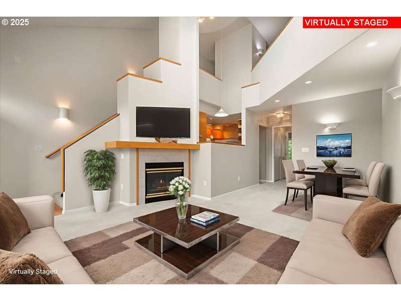 This unique and exceptional 2 story condo offers the perfect blend of privacy, functionality & modern living within a gated community! Designed for main-level living, the spacious primary bedroom features a large walk-in closet and a sliding door that opens to the private back deck, creating a peaceful retreat. The open concept living room and dining area boast a cozy gas fireplace ideal for relaxing and entertaining. Upper level includes a lofted space that overlooks the living room, offering additional versatility along with a second bedroom and bathroom that is perfect for guests! Adding to the home's practicality, the condo includes a detached garage with pull-down stairs leading to a large attic storage area, maximizing space for seasonal items or extra belongings. New Roof and Skylights June 2025, Newer Hardi Plank Siding. Located in a prime area that is minutes from Vancouver Mall, restaurants, public transportation, freeways, PDX and the vibrant Downtown Waterfront, ensuring easy access! A rare find with a thoughtful layout, this condo is truly a must see!